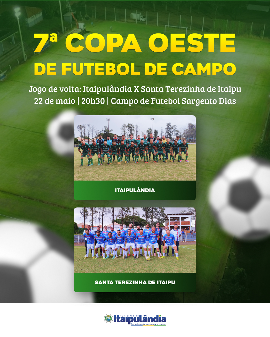 Hoje é dia de Itaipulândia enfrentar Santa Terezinha de Itaipu no jogo de volta da 7ª Copa Oeste de Futebol de Campo.