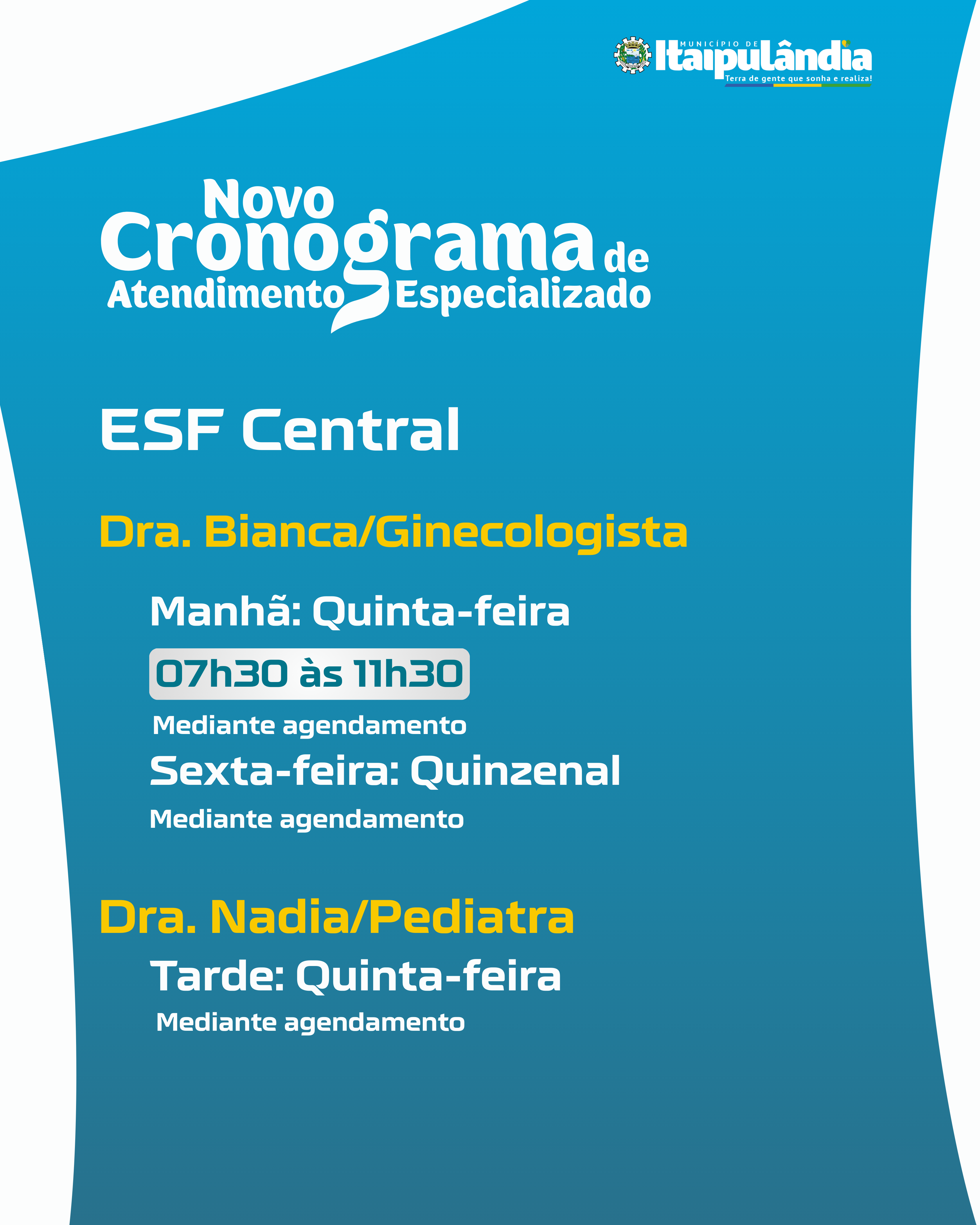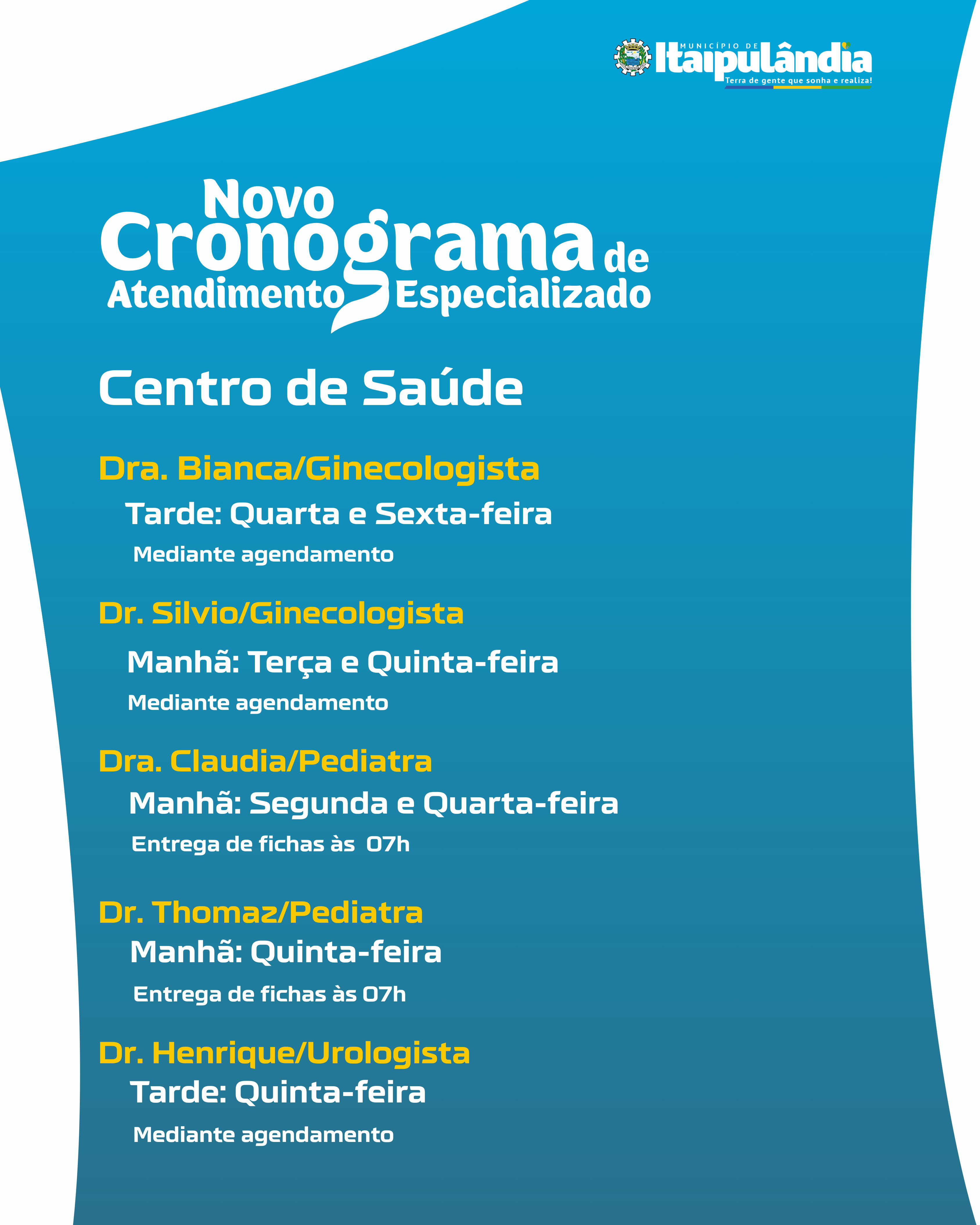 Organize sua agenda e cuide da sua saúde com quem entende do assunto! 💙 Confira os dias e horários disponíveis para cada especialidade e agende sua consulta.