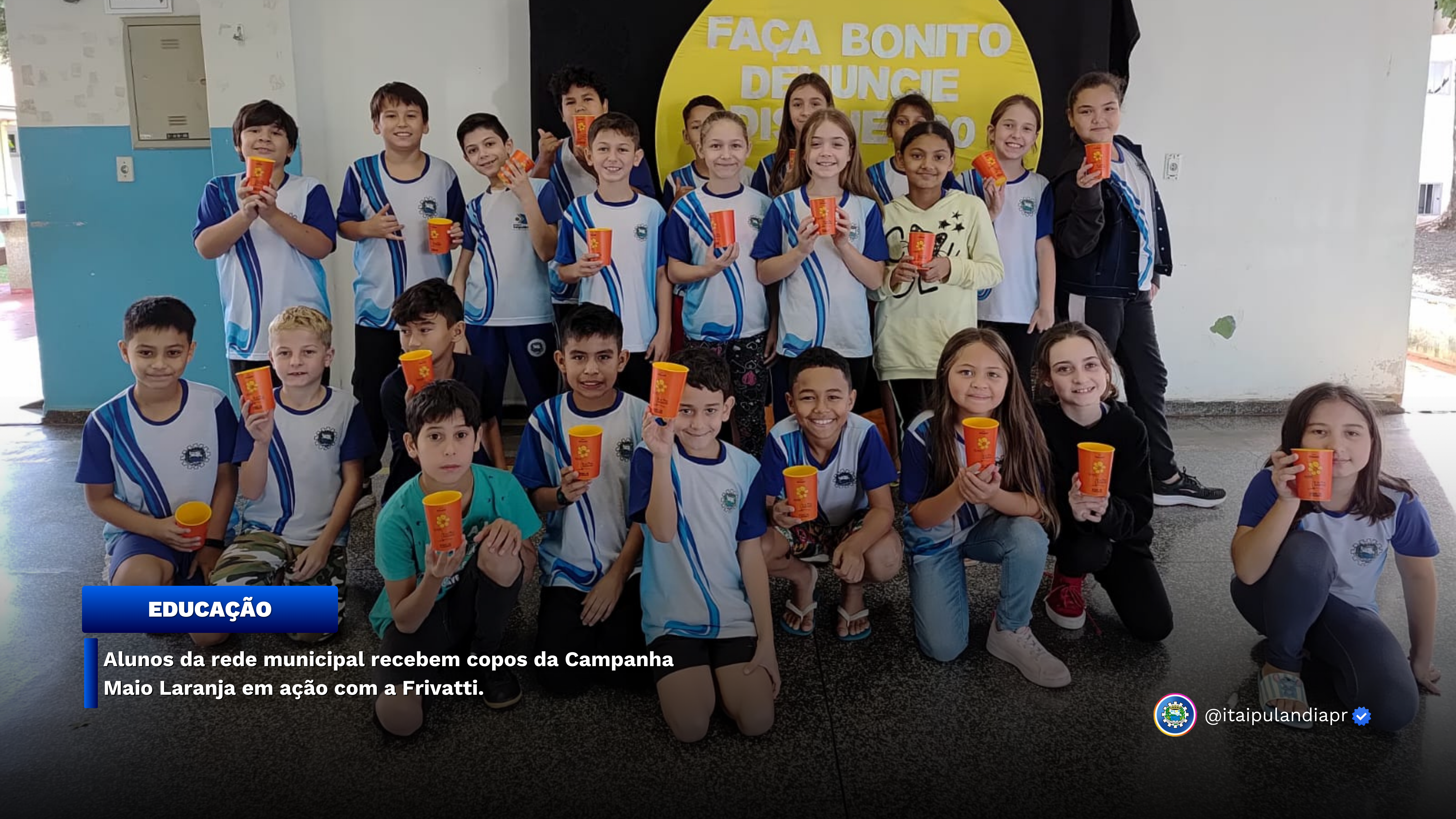 Na última sexta-feira (16), as escolas municipais de Itaipulândia realizaram a entrega de copos personalizados como parte das ações da Campanha Maio Laranja, que visa conscientizar a população sobre a prevenção ao abuso e à exploração sexual de crianças e adolescentes.