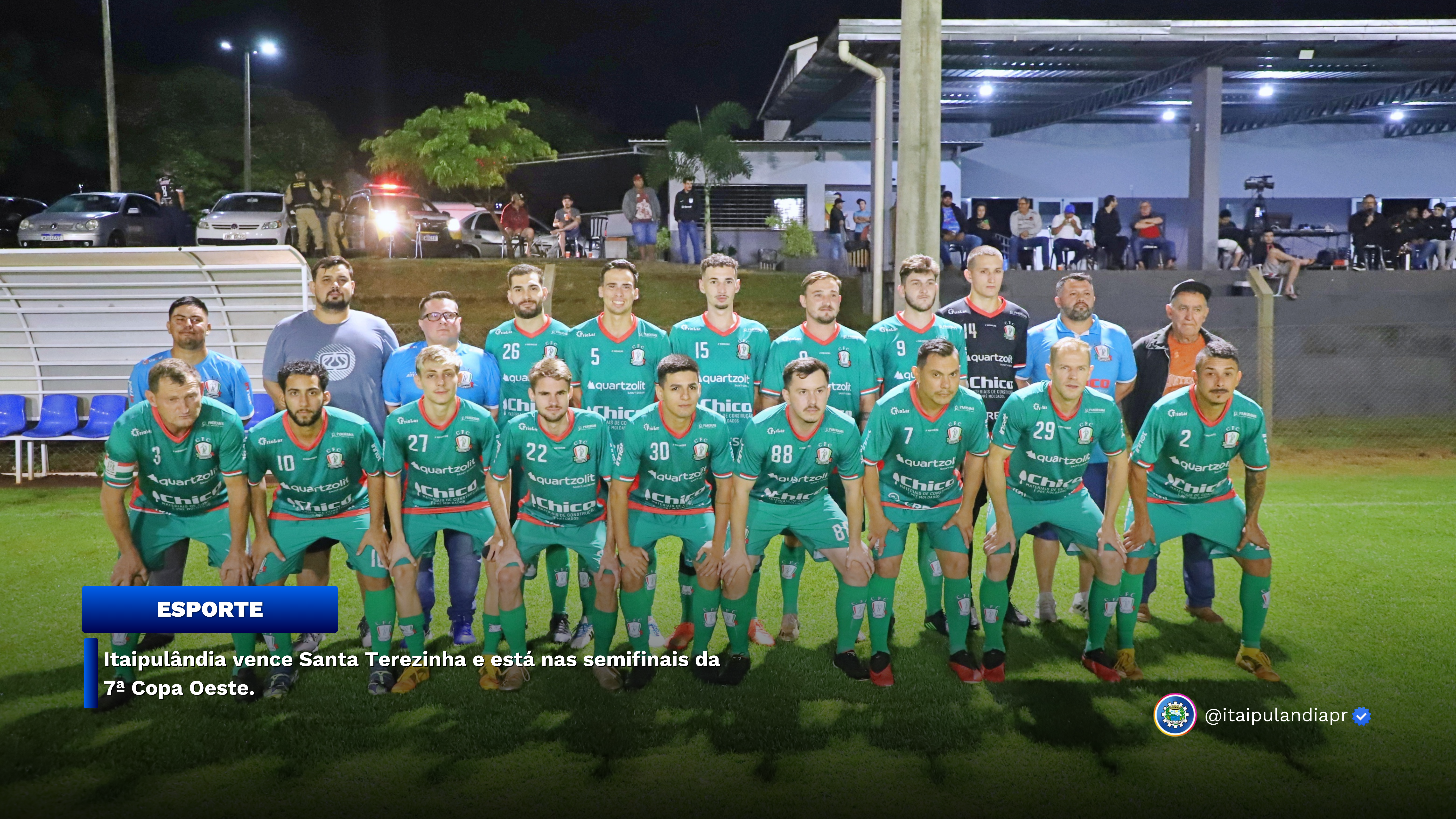 Após ter vencido o primeiro jogo das quartas de final da 7ª Copa Oeste pelo placar de 3x0 sobre de Santa Terezinha de Itaipu, na casa do adversário, na noite de ontem, quinta-feira (22), a equipe de Itaipulândia venceu mais uma vez. Desta vez com um placar mais apertado: 4x3. Os gols da equipe itaipulandiense foram assinalados por Pech (duas vezes), Mensch e Shock.