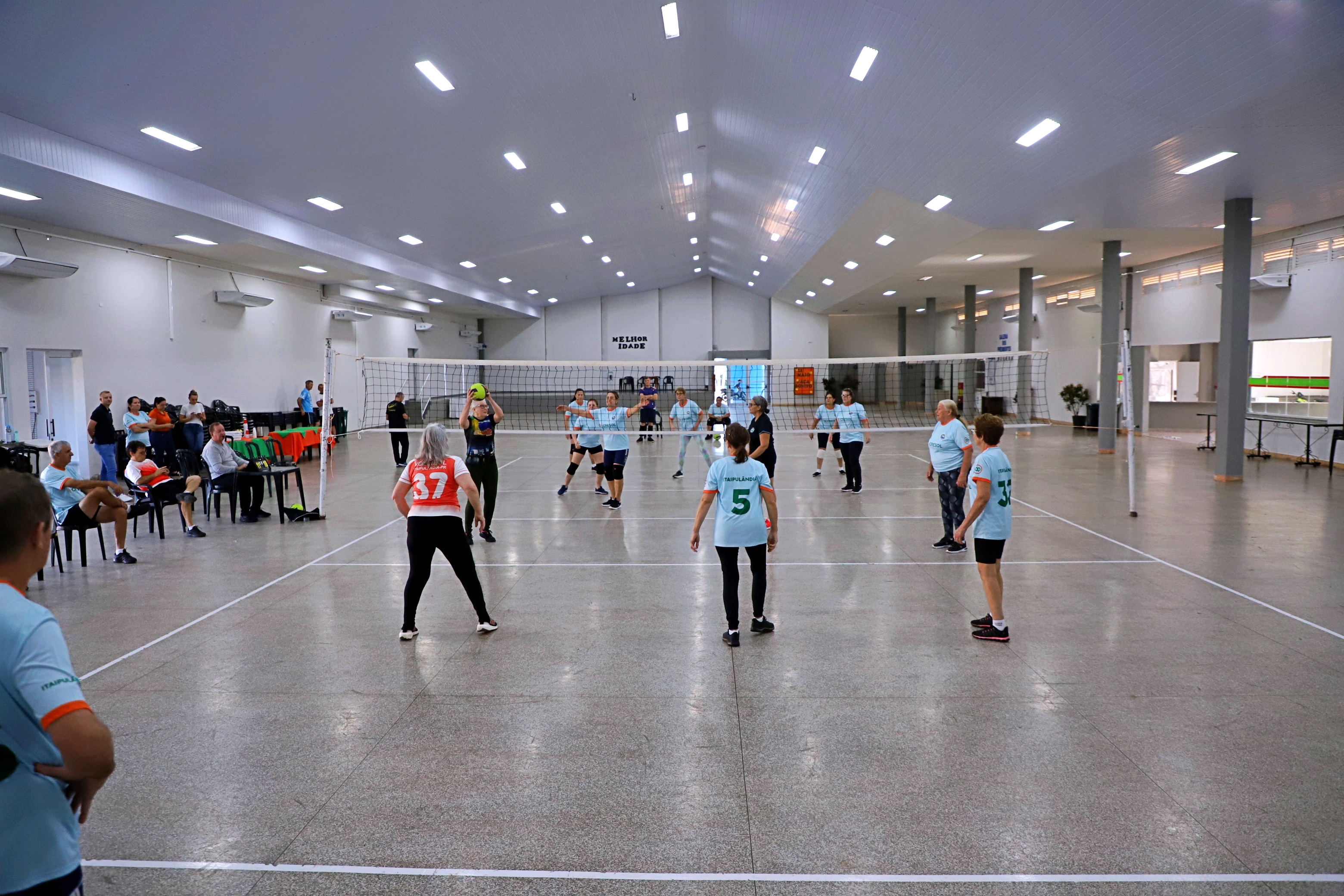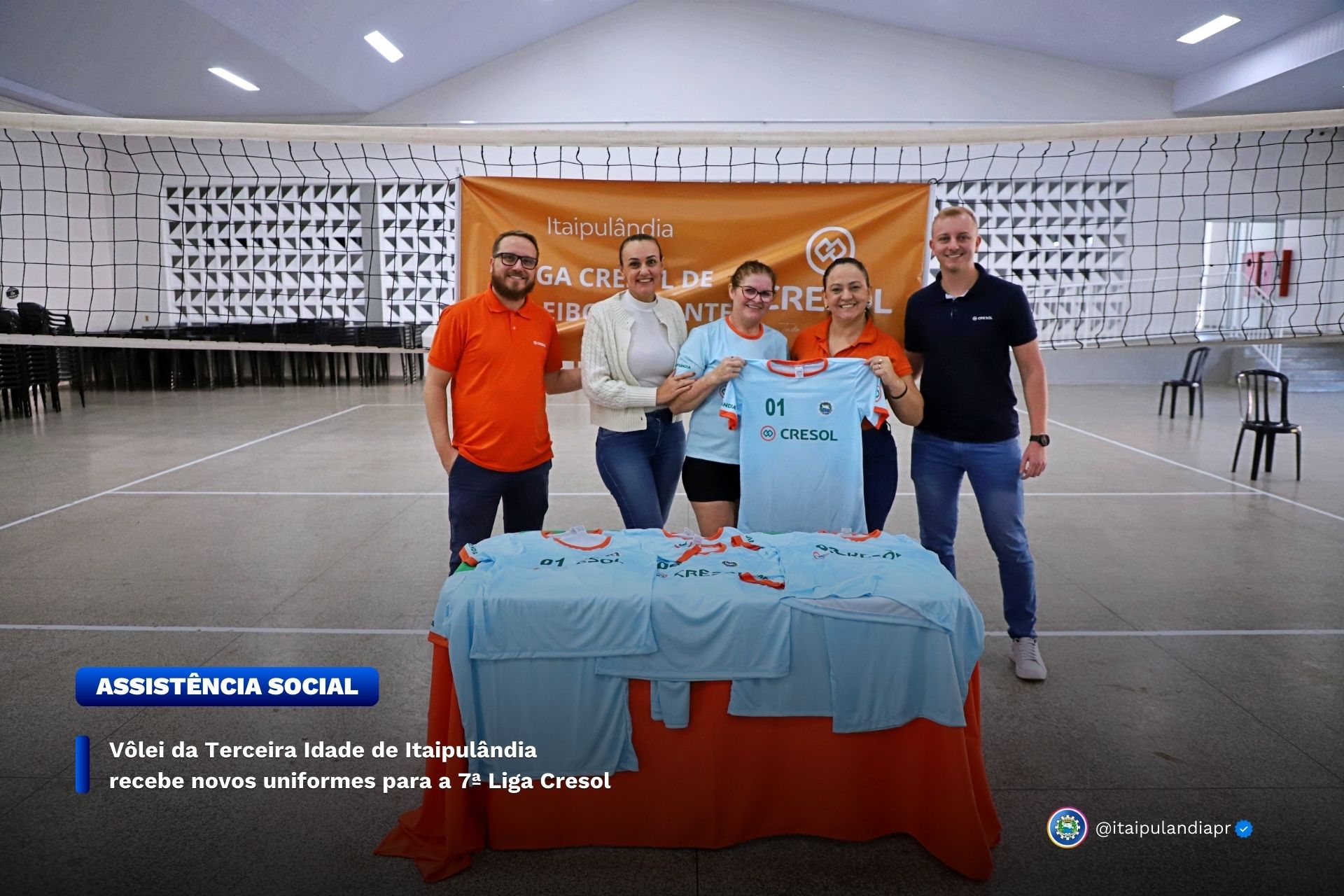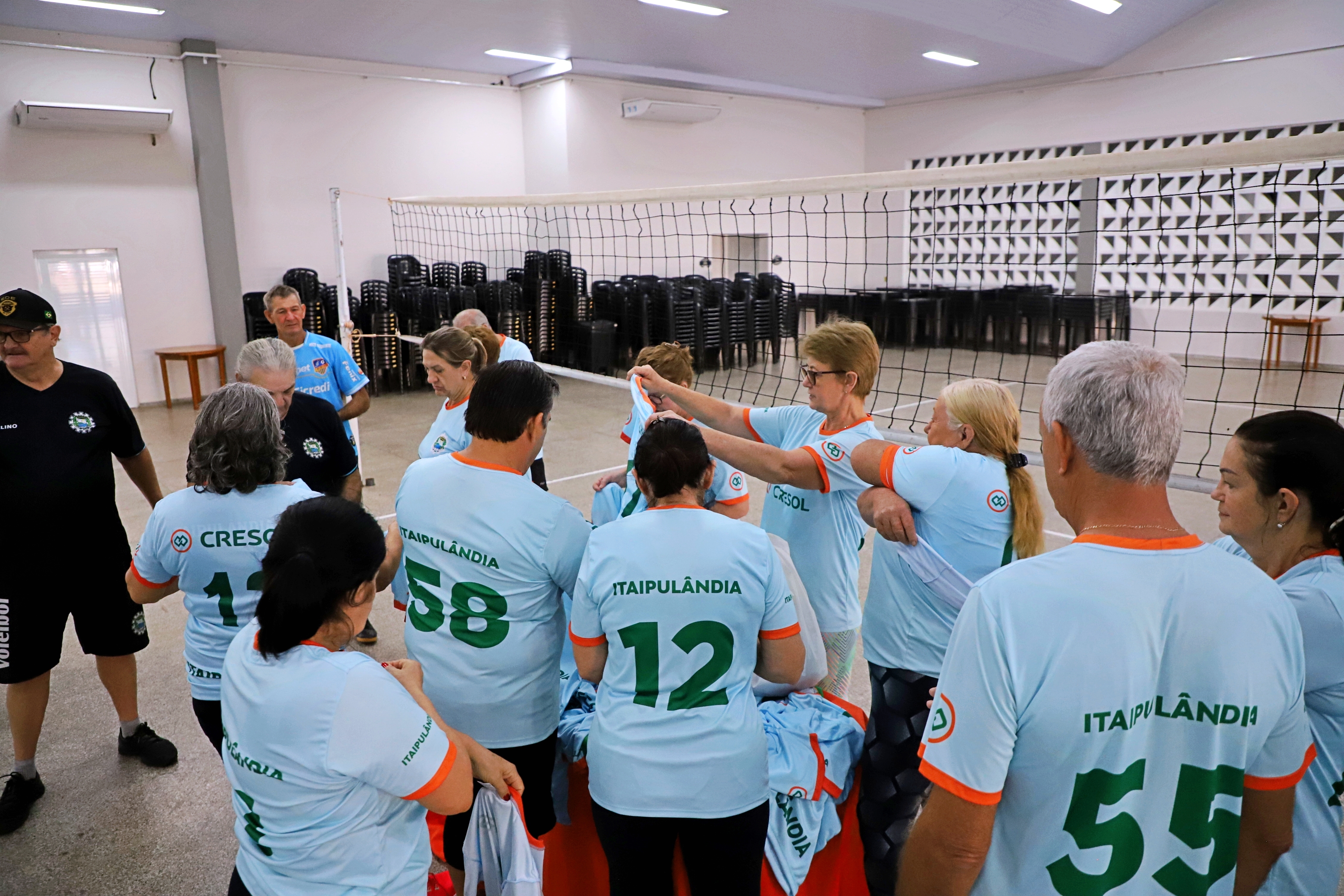Na manhã desta sexta-feira (23), o grupo de vôlei da Terceira Idade de Itaipulândia se reuniu no Centro de Eventos Benjamin Sabino Rigo para receber oficialmente os uniformes que serão usados na 7ª Liga Cresol 2025. A competição regional de Voleibol Adaptado, também conhecido como Vôlei Gigante, contará com equipes masculinas e femininas da melhor idade.