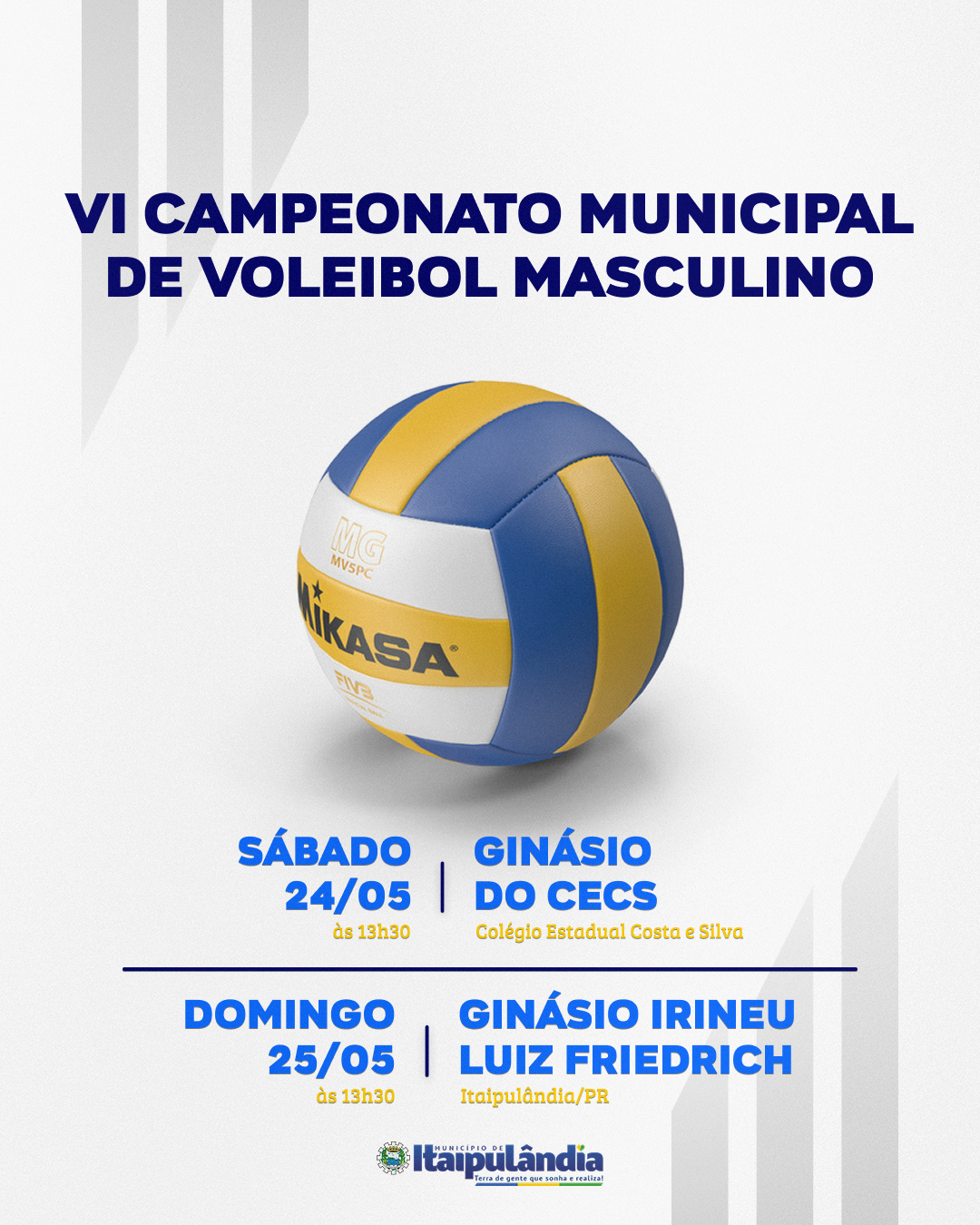 Neste final de semana tem o VI Campeonato Municipal de Voleibol Masculino. Prestigie!