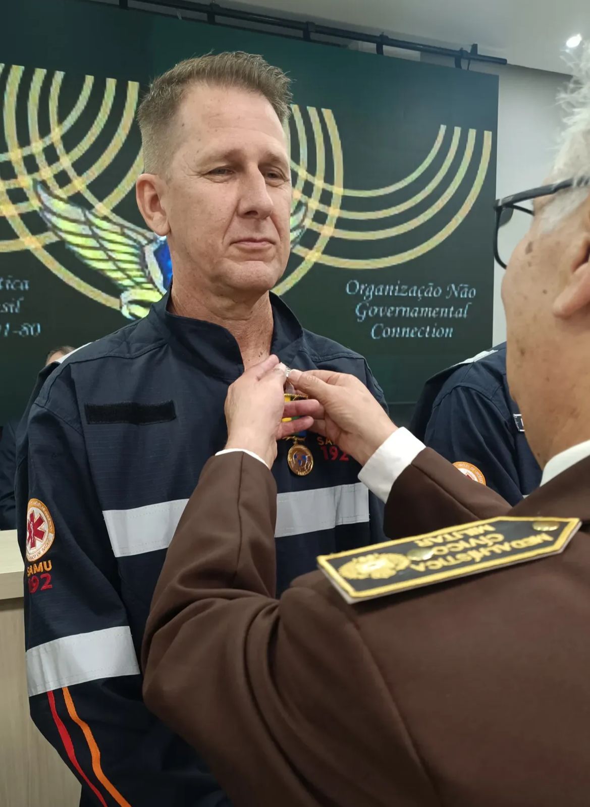 Na noite de sábado (24), foi realizada cerimônia de condecoração da Ordem do Mérito de Serviços Humanitários pela Academia de Medalhística Cívico Militar do Brasil na cidade de Marechal Cândido Rondon que agraciou profissionais que se dedicam em serviços considerados essenciais na sociedade. Profissionais da equipe do SAMU de Itaipulândia receberam a condecoração através de indicação do Sargento Chagas, integrante da Academia de Medalhística Cívico Militar do brasil.