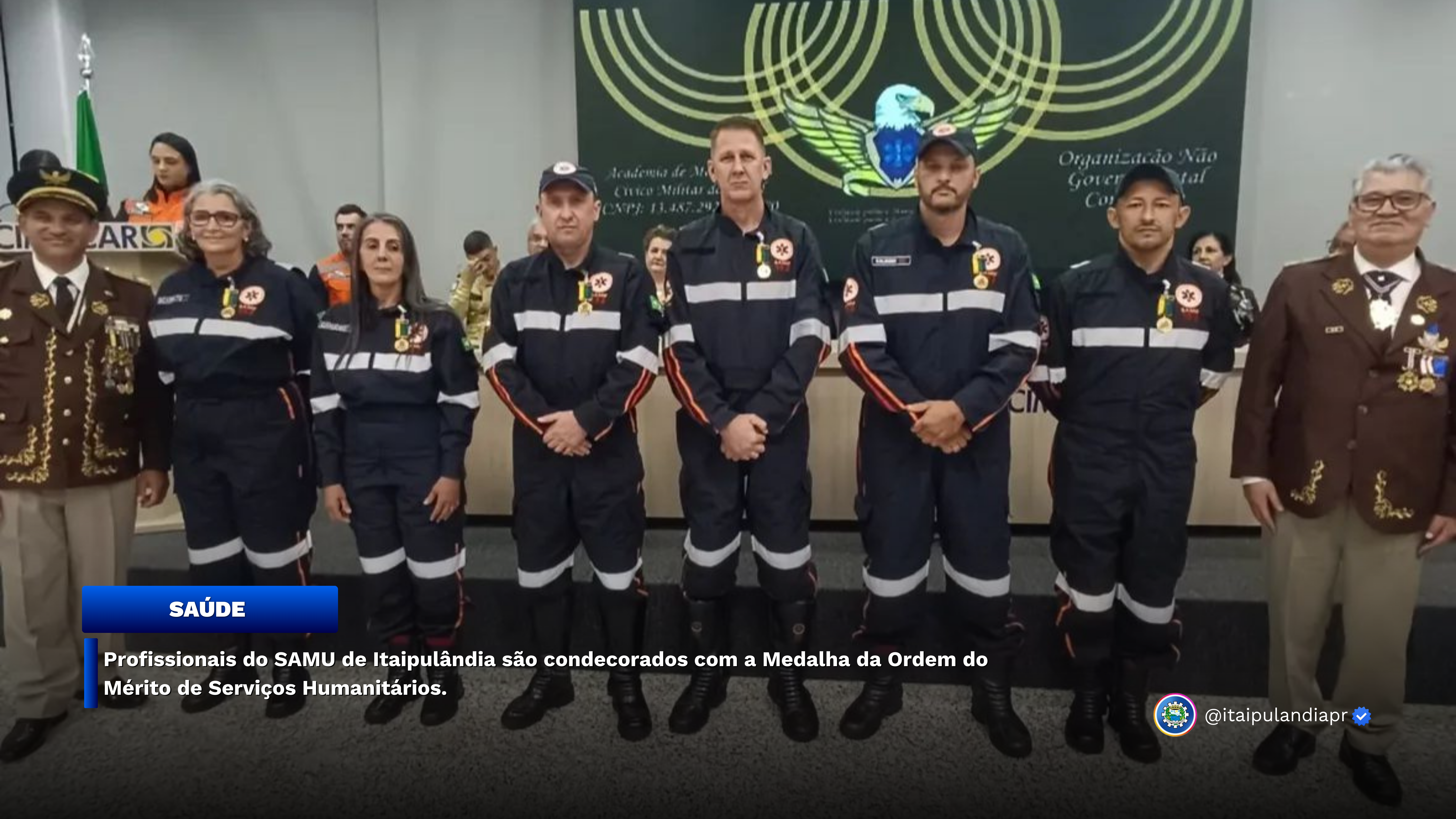 Receberam a Medalha da Ordem do Mérito de Serviços Extraordinários, os seguintes membros do SAMU Bravo 31 de Itaipulândia: Ediocezar Osvaldo Fleck, Elveni Bernadete Scarpato, Luísa Mario Cardoso, Neuri Kollemberg, Roberto César Kalinski e Sedemir Roque Carvalho.