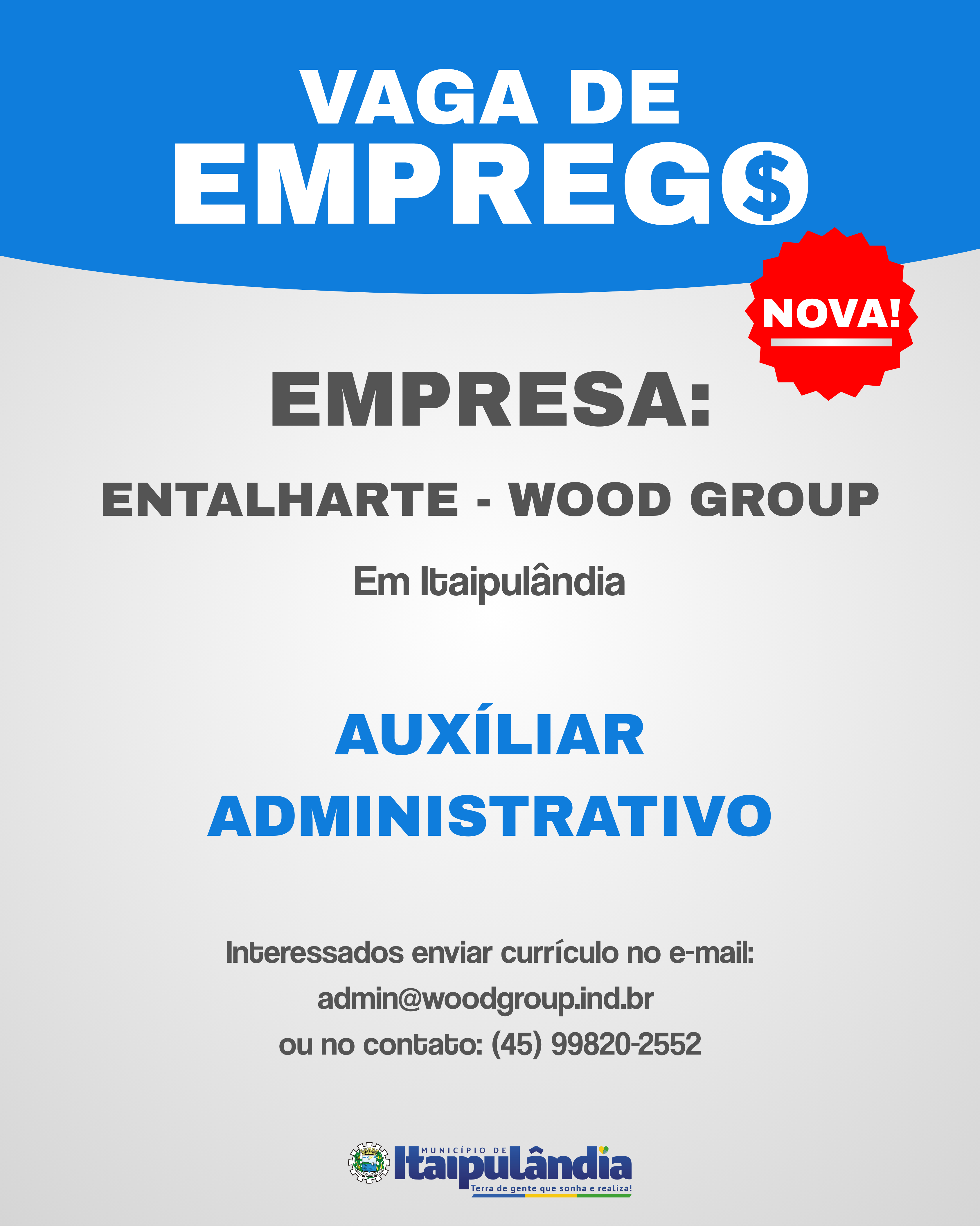 A empresa Entalharte Wood Group está com vaga aberta para Auxíliar Administrativo.