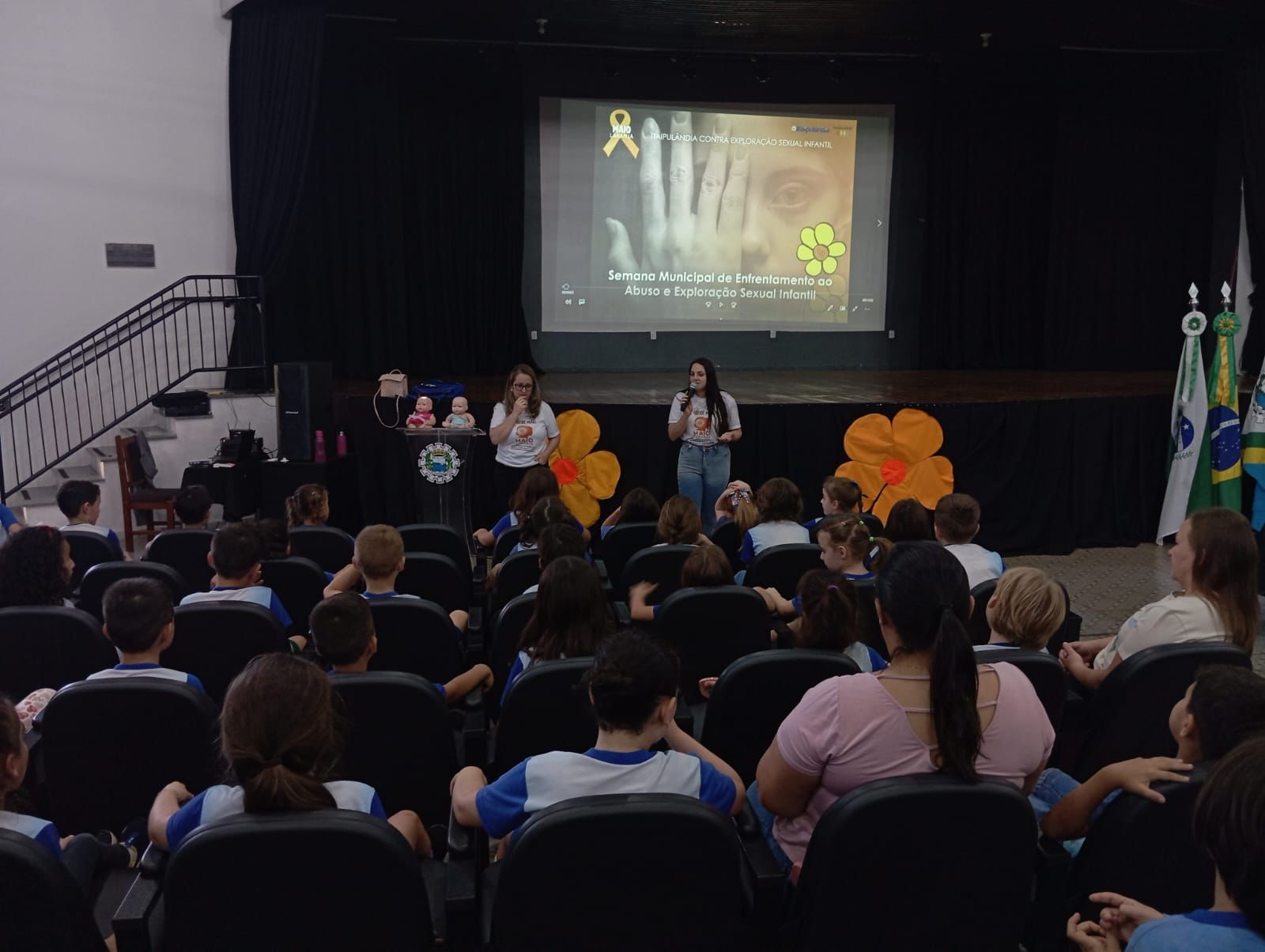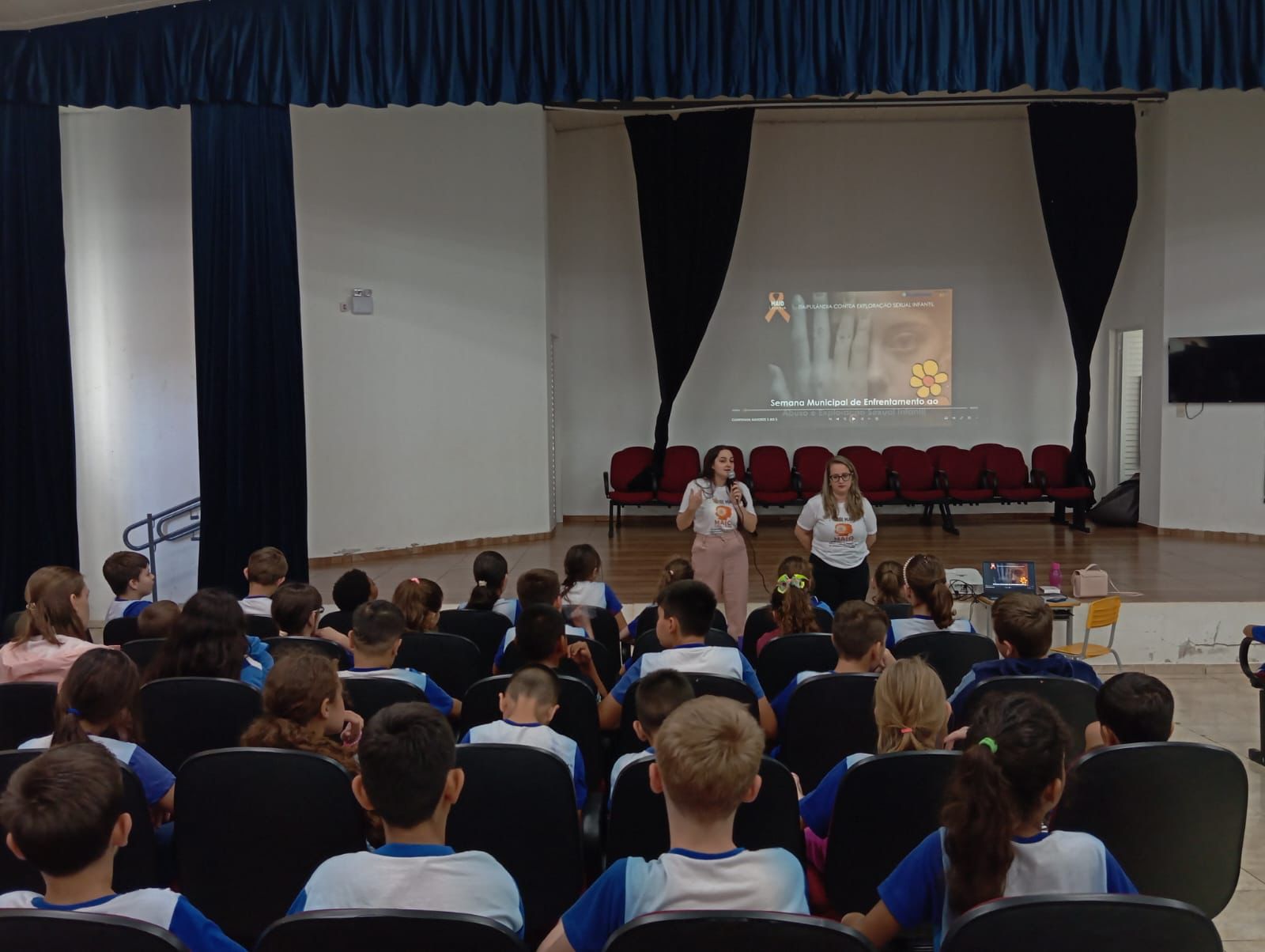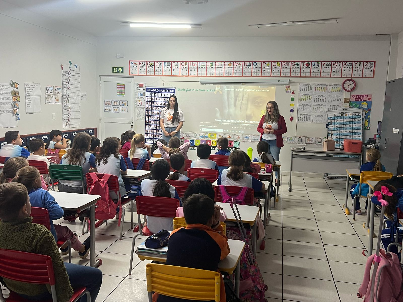 A programação nas unidades integrou palestras e encontros realizados pelas psicólogas Gabriela de Souza, Suelen Cristina Becker e Pollyana de Oliveira Duarte promovendo a Conscientização Contra o Abuso e a Exploração Sexual Infantil. Para os alunos da educação infantil e dos anos iniciais, as ações foram adaptadas de forma lúdica, com histórias, músicas e jogos que abordam o respeito ao corpo e o direito à proteção.