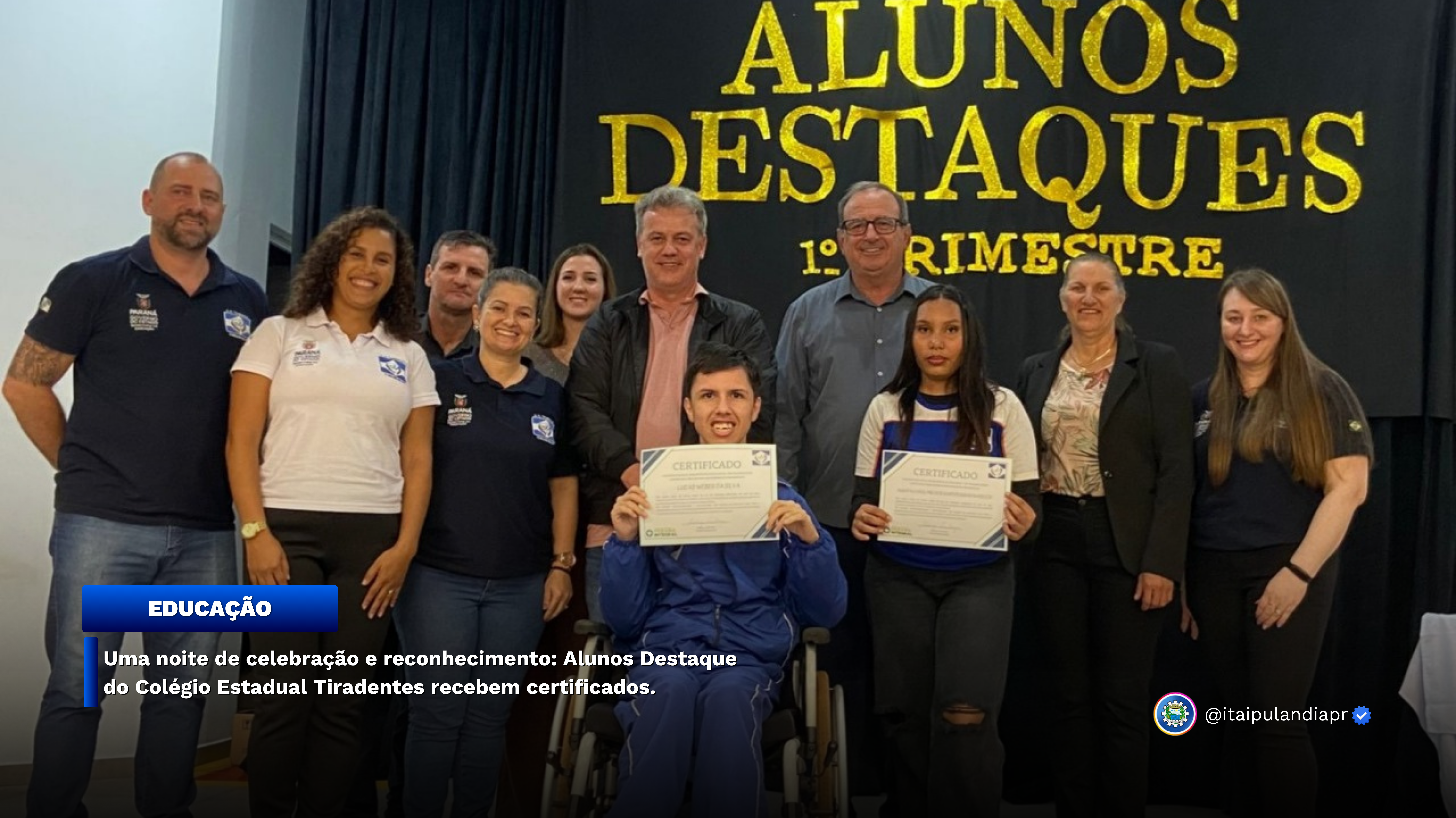 Na última semana, o Colégio Estadual Tiradentes de São José do Itavó realizou a cerimônia de entrega dos certificados aos alunos destaque do 1º trimestre. Mais do que boas notas, esses alunos demonstraram responsabilidade, disciplina, dedicação e superação no dia a dia escolar.