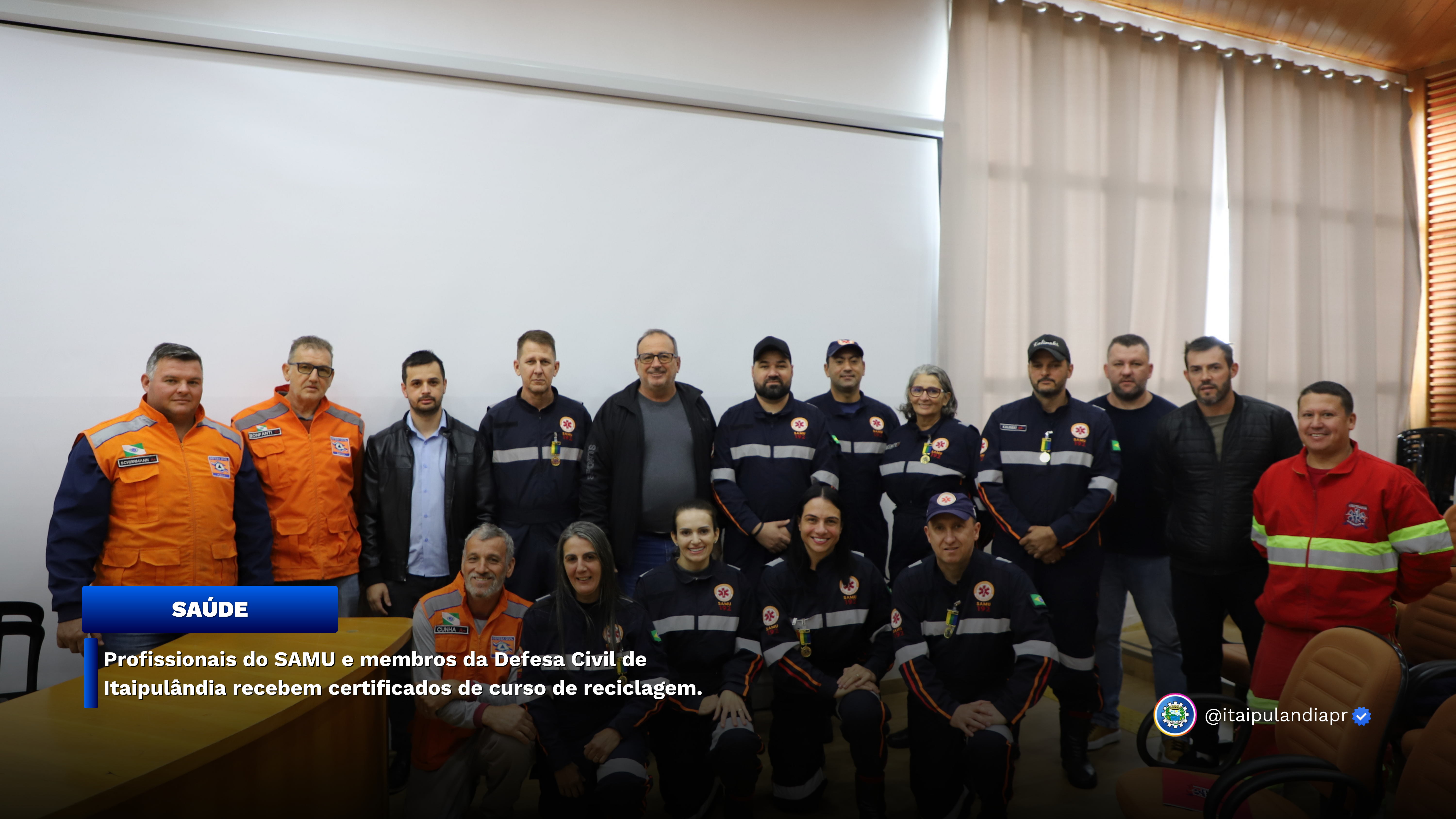 Profissionais do SAMU e membros da Defesa Civil de Itaipulândia recebem certificados de curso de reciclagem