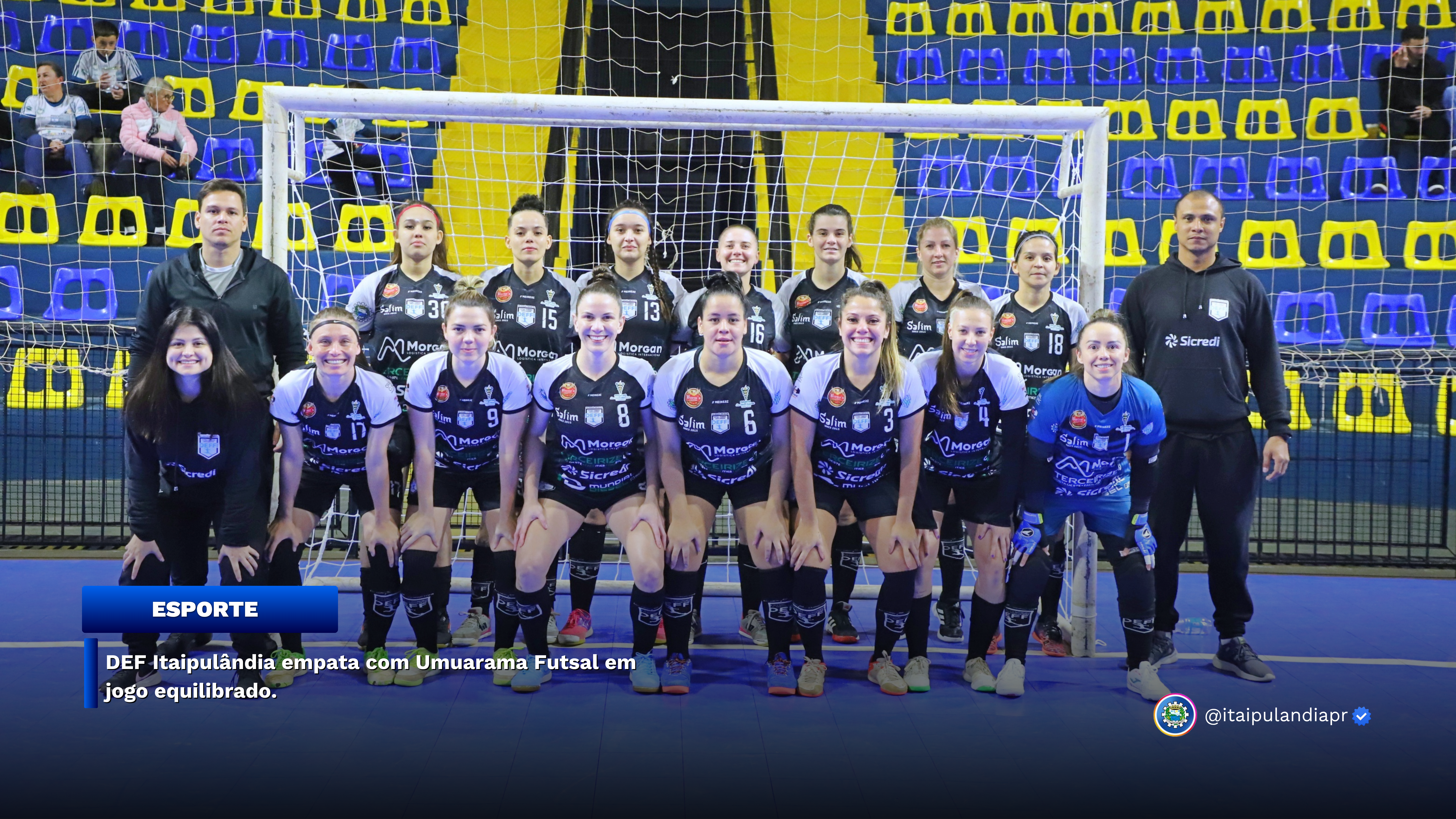 Neste último sábado, a equipe da DEF Itaipulândia Futsal recebeu em casa o time de Umuarama Futsal, em uma partida bastante equilibrada. O jogo terminou empatado em 1 a 1, com gols marcados por Yasmin, representando Itaipulândia, e Camila, pela equipe de Umuarama.