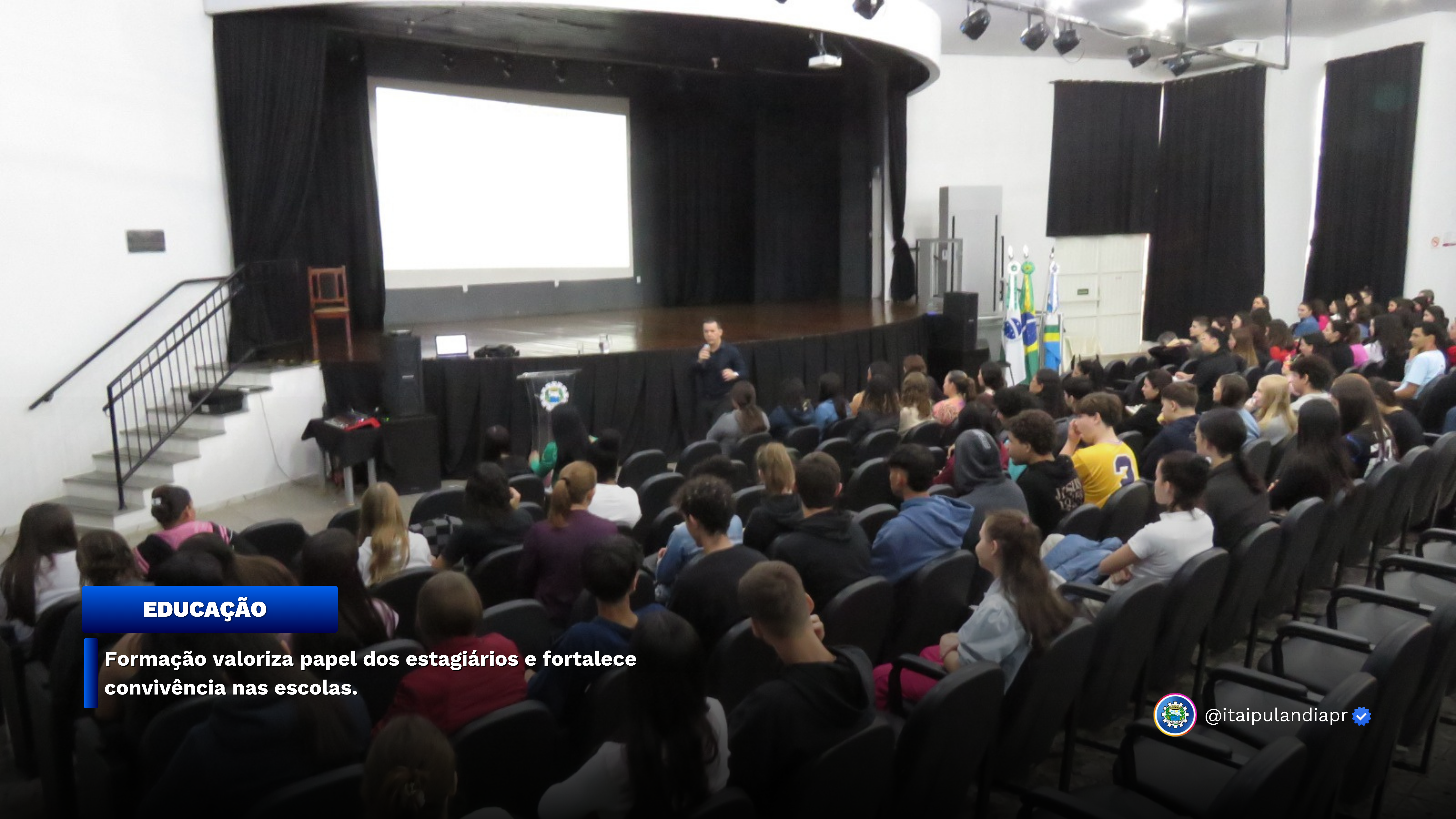 Recentemente, a Secretaria Municipal de Educação de Itaipulândia promoveu uma formação com o tema: “A Arte da Convivência”, voltado aos estagiários que atuam nas instituições de ensino da rede municipal. A ação contou com a participação de aproximadamente 140 estagiários e teve como objetivo fortalecer as relações interpessoais e o papel dos estagiários no ambiente escolar.