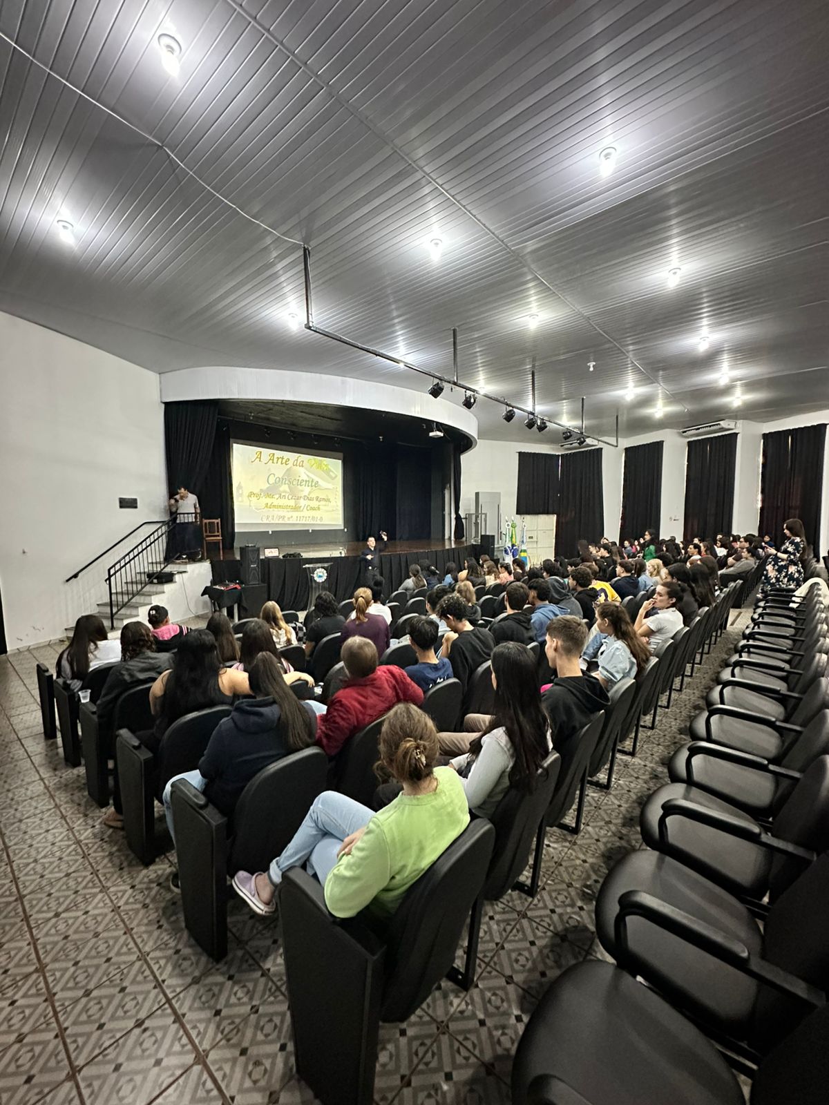 O encontro foi conduzido pelo palestrante Ari Cézar Dias Ramos, que abordou temas como empatia, respeito, comunicação e a importância do olhar humanizado nas relações escolares. A palestra também trouxe reflexões sobre o papel transformador do estagiário na formação cidadã dos alunos, destacando a relevância da postura profissional e da escuta ativa no cotidiano educacional.