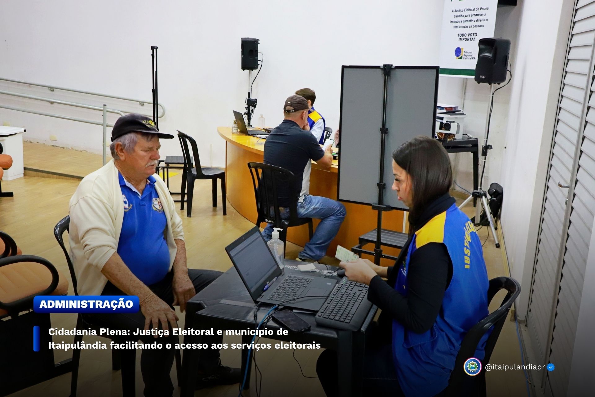 Nesta terça-feira (03) e amanhã, quarta-feira (04), estão sendo disponibilizados serviços eleitorais aos munícipes itaipulandienses, como emissão e transferência do título de eleitor, revisão do cadastro eleitoral, emissão de certidões, atualização de multas eleitorais, entre outros serviços.