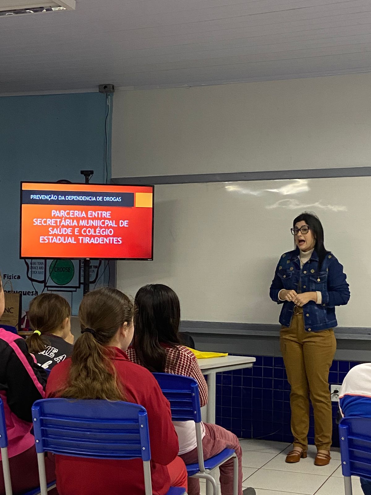 Em alusão ao Junho Branco, mês dedicado à conscientização e combate às drogas, a enfermeira Luciane Galdino Trentim iniciou um importante projeto educativo com os alunos do Colégio Estadual Tiradentes. A ação conta com cinco encontros, cada um abordando aspectos essenciais sobre o tema.