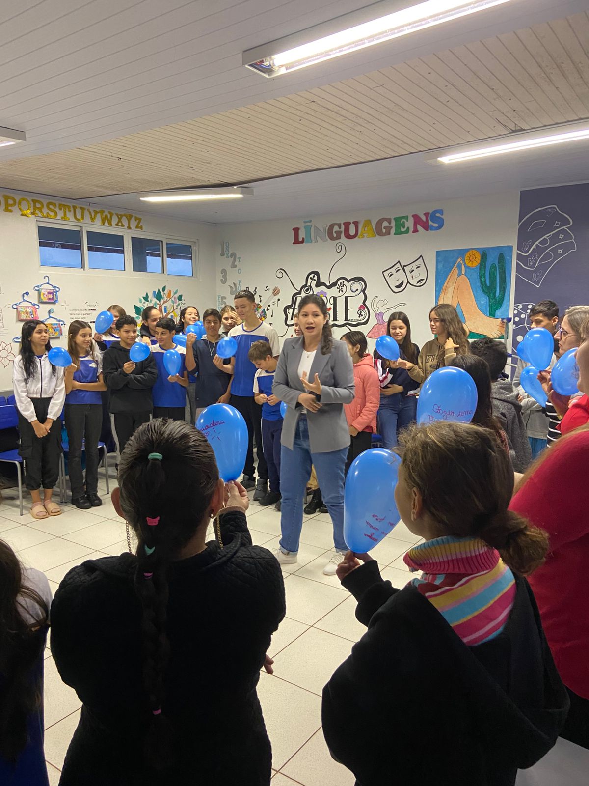 Durante a atividade chamada “Balão das Decisões”, cada aluno escreveu um sonho em um balão, que simbolizava seu futuro. Conforme situações de risco relacionadas ao uso de drogas eram narradas, alguns balões eram estourados, representando como escolhas ruins podem destruir planos e metas de vida. Ao final, os alunos receberam um bombom com uma mensagem especial de incentivo e conscientização.