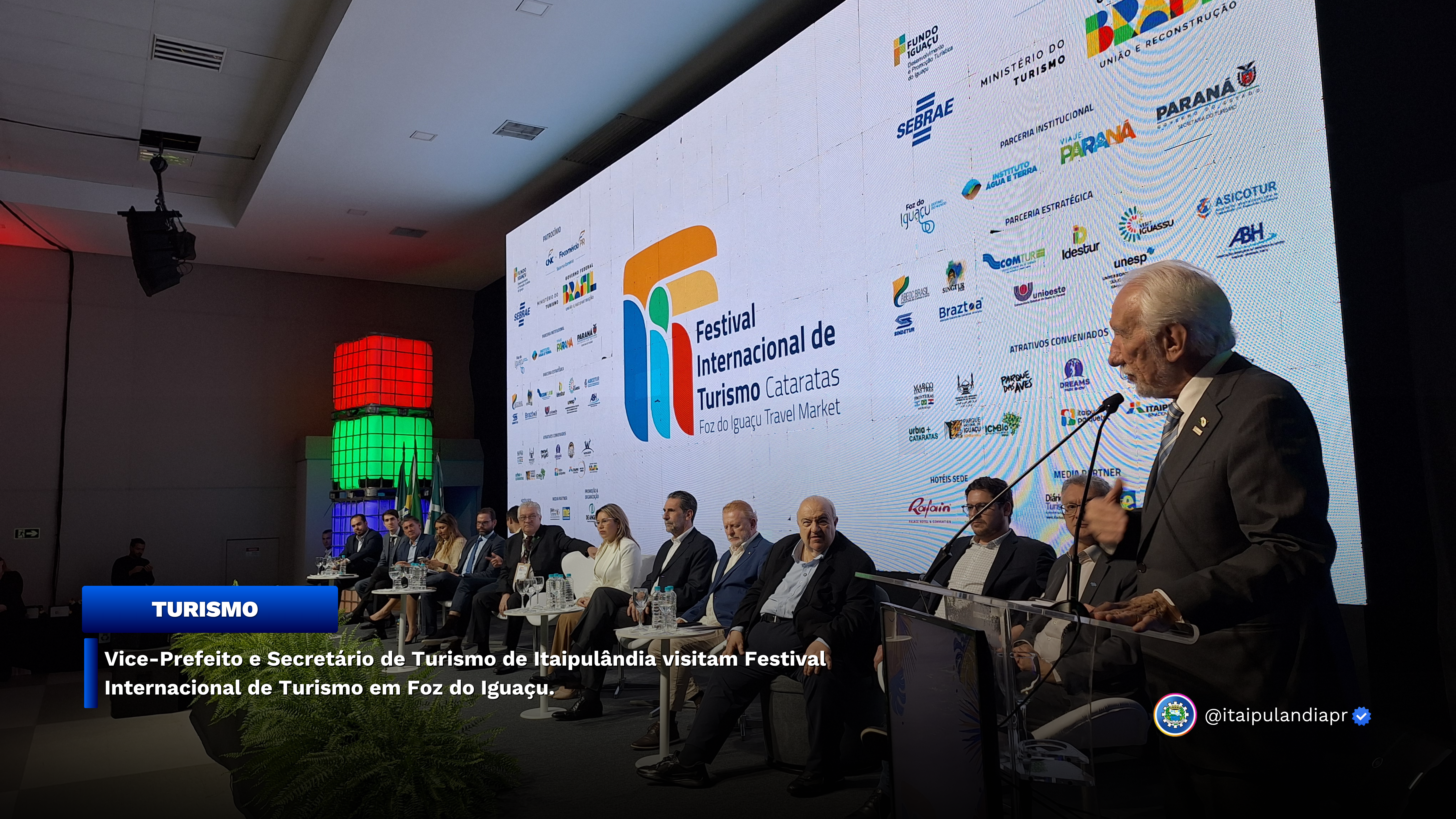 Na quinta-feira (05), o vice-Prefeito Adolfo Preis, juntamente com o Secretário de Turismo e Lazer Leonardo Barcellos da Silva e o Diretor de Turismo Anderson Homem, estiveram em visita ao Festival Internacional de Turismo que está acontecendo em Foz do Iguaçu, que teve a cerimônia de abertura na quarta-feira (04) e se estenderá até o final da tarde desta sexta-feira (06).