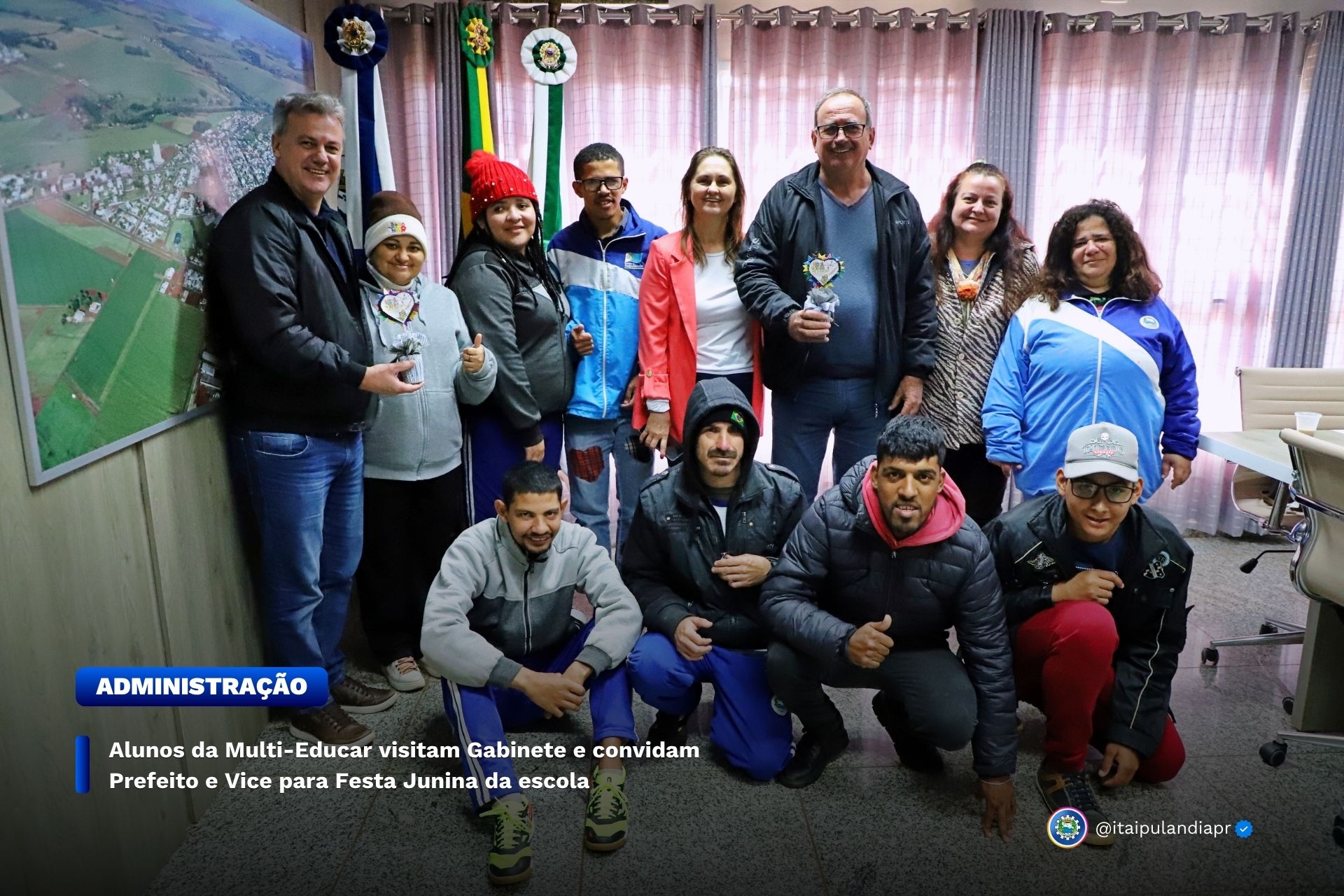Alunos da Multi-Educar visitam Gabinete e convidam Prefeito e Vice para Festa Junina da escola