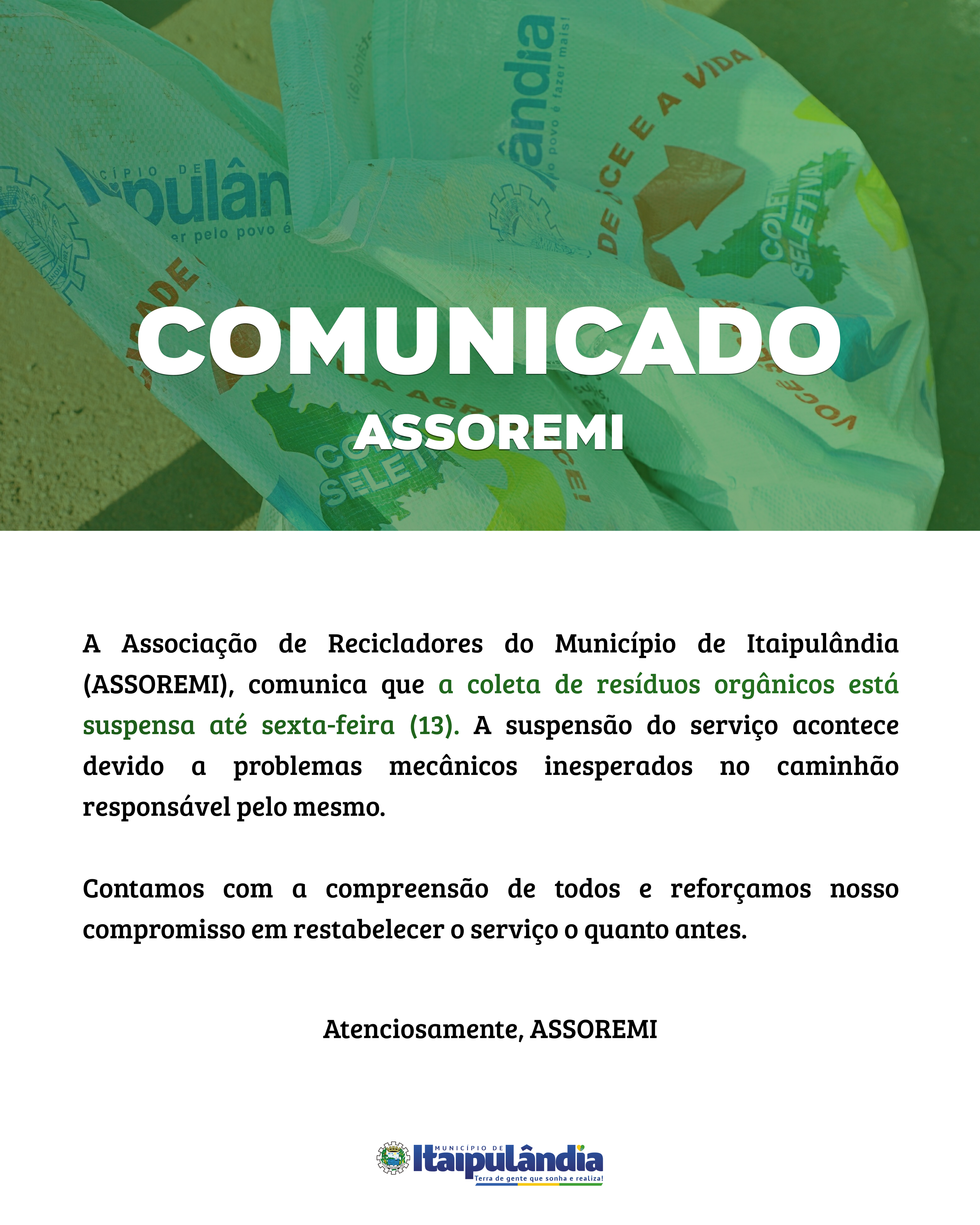 Confira o comunicado da ASSOREMI válido até sexta-feira 13/06 (sexta-feira).