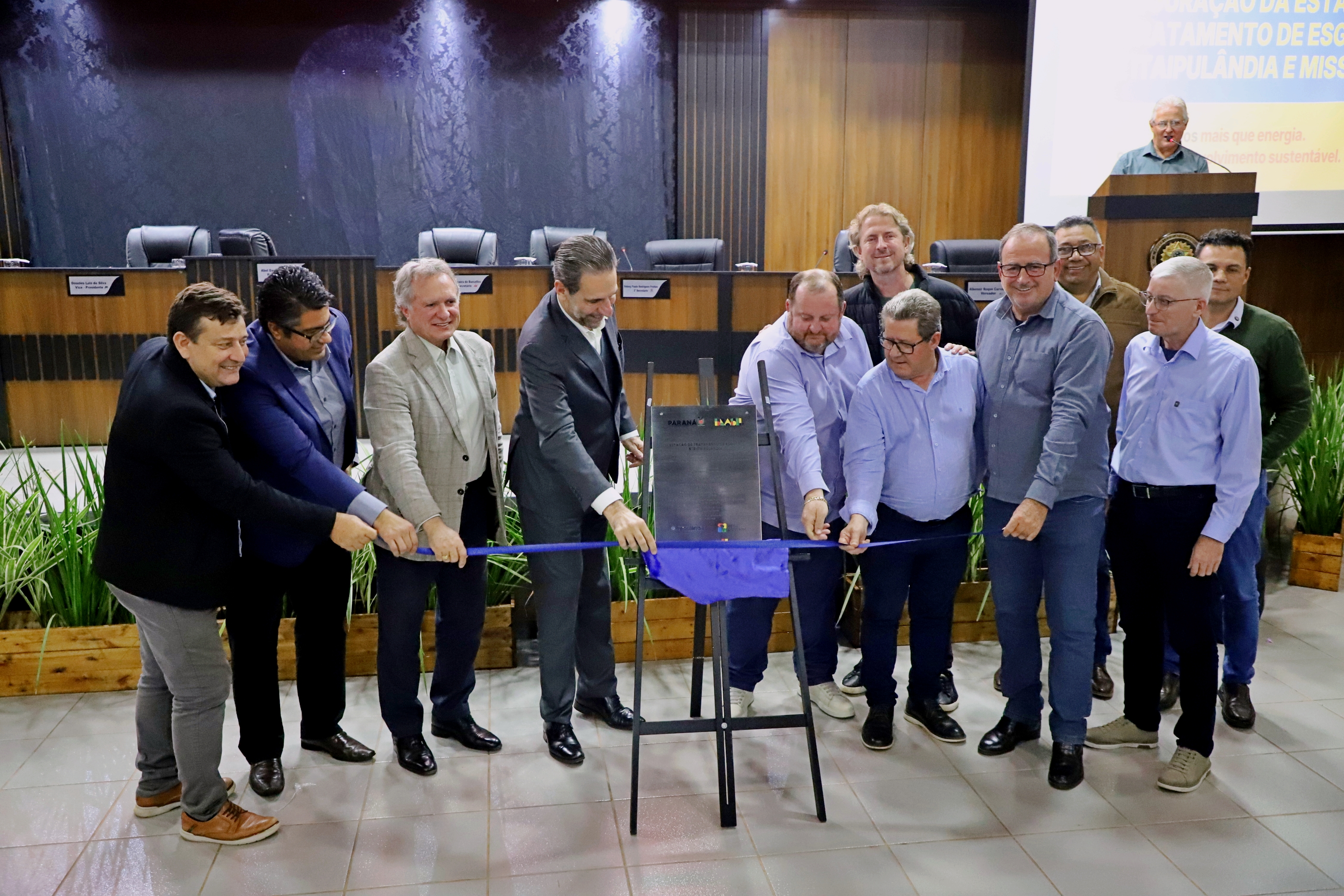 A Itaipu Binacional, o Itaipu Parquetec e a Sanepar (Companhia de Saneamento do Paraná) inauguraram, nesta quarta-feira (11), uma Estação de Tratamento de Esgoto (ETE) em Itaipulândia. Durante a cerimônia, também foram assinadas as ordens de serviço para o início da instalação de saneamento em Ramilândia e Serranópolis do Iguaçu. As obras, que irão beneficiar a população de seis municípios (Medianeira, Itaipulândia, Santa Helena, Missal, Ramilândia e Serranópolis do Iguaçu) fazem parte de um convênio para a implantação de tecnologias inovadoras de saneamento básico, inéditas no Brasil, e que podem servir de modelo para municípios pequenos.