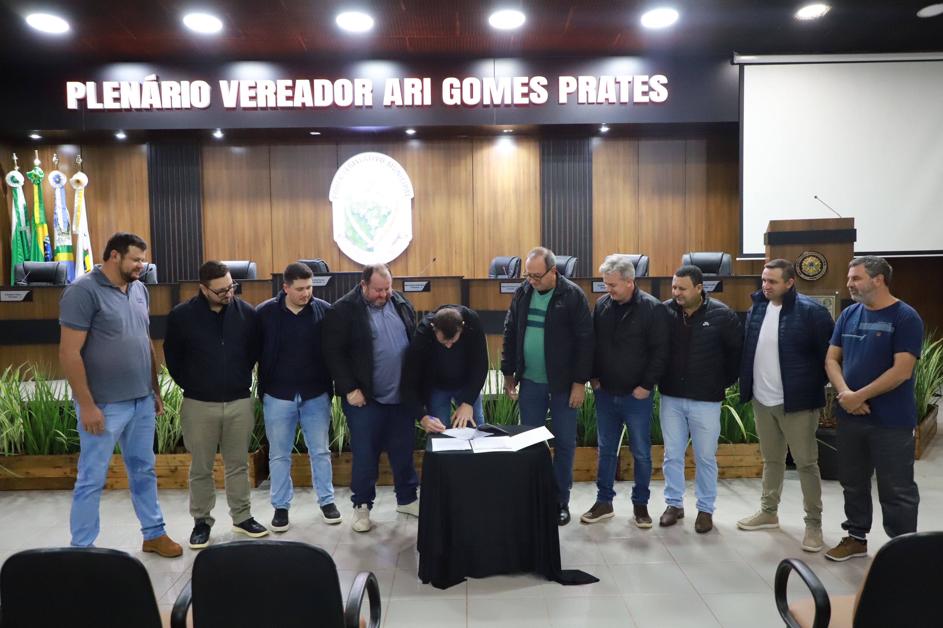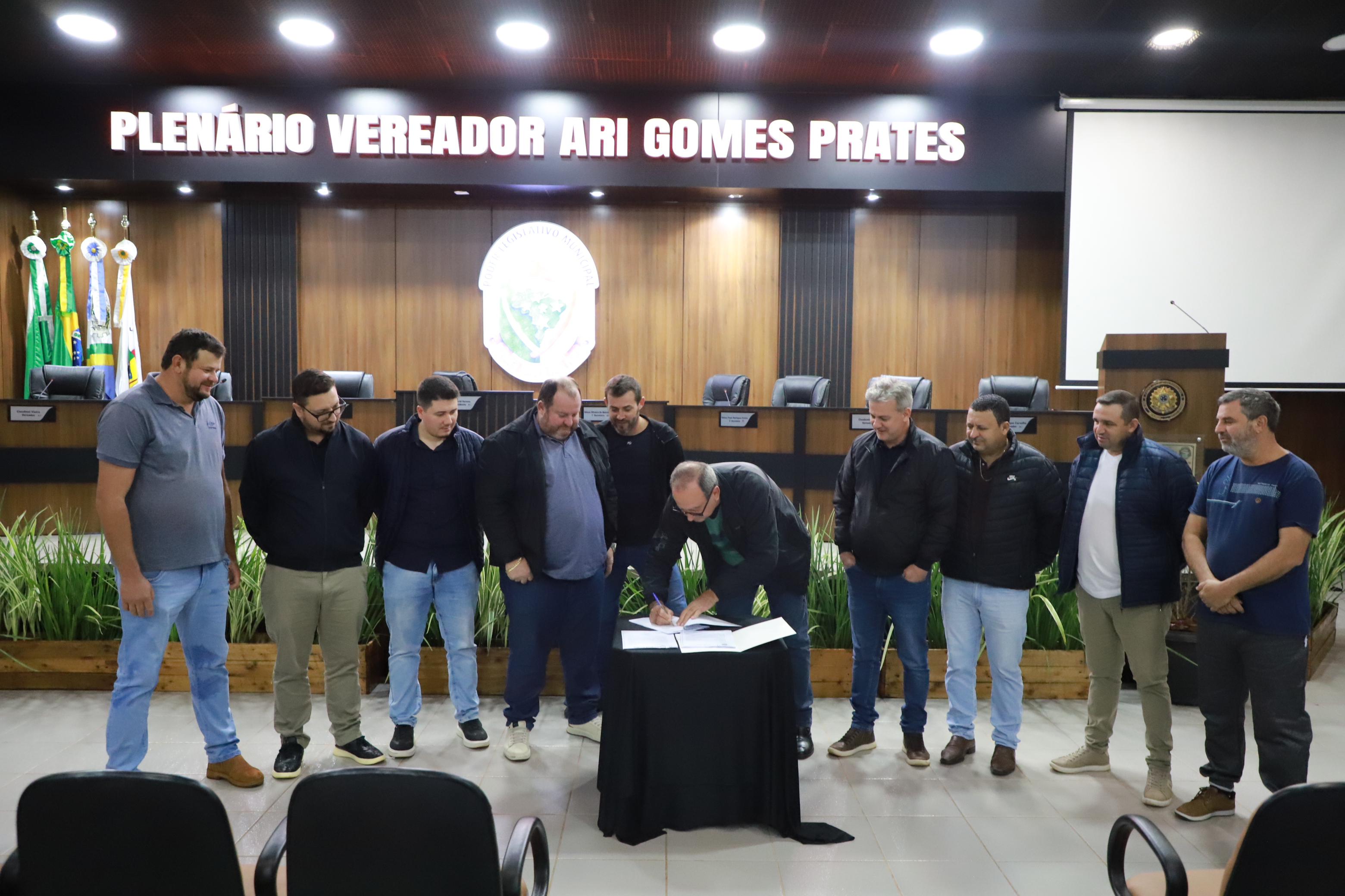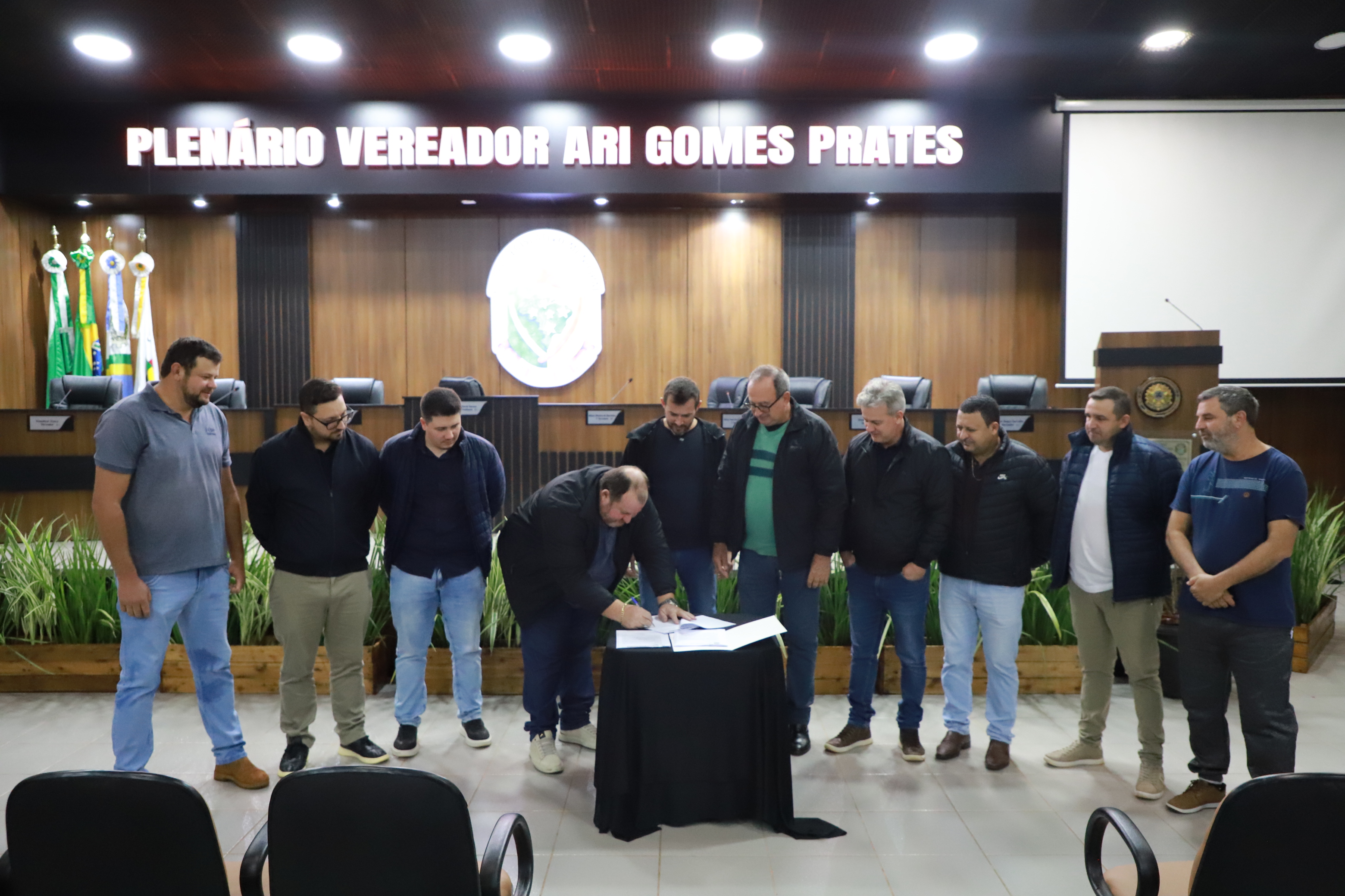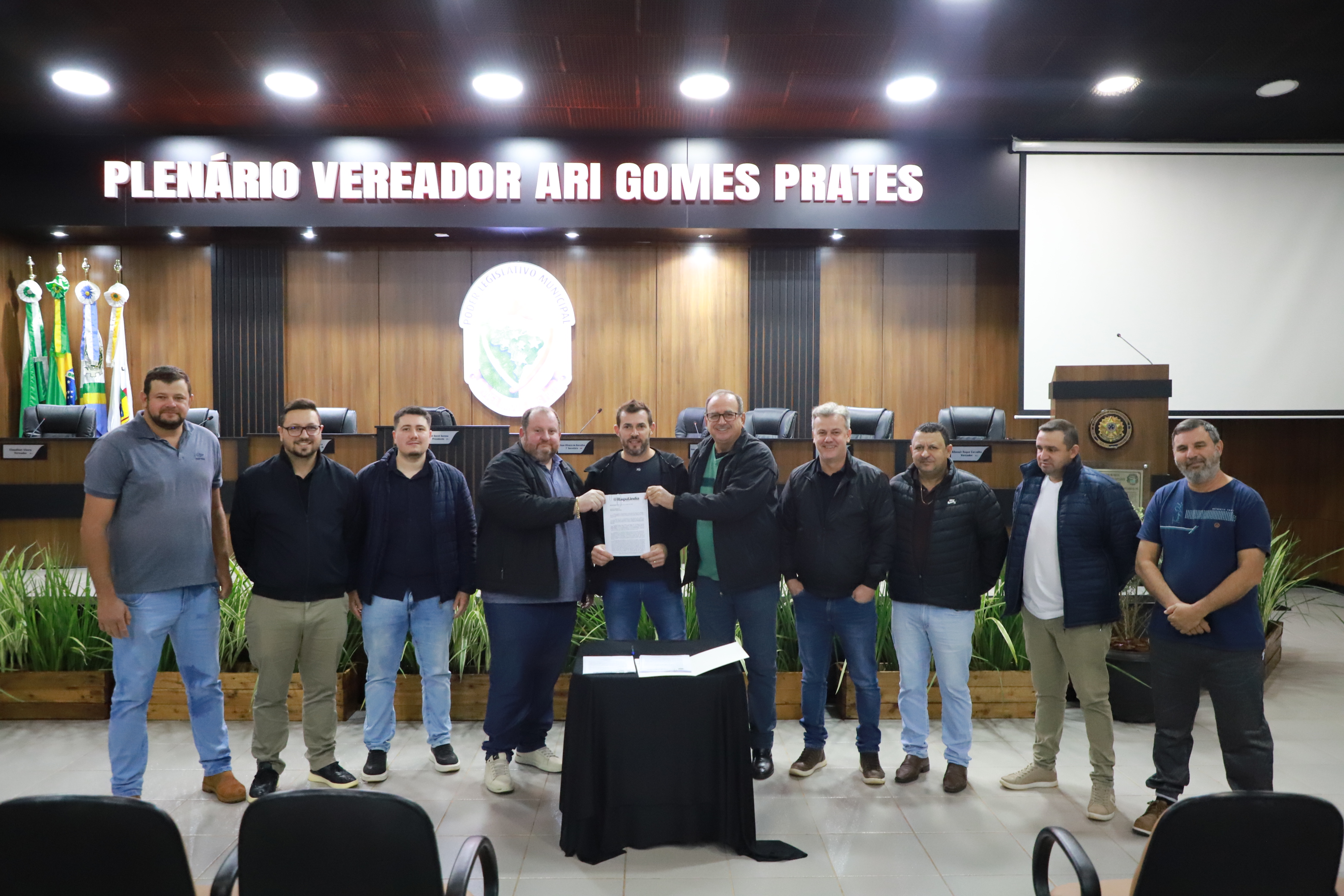 O Prefeito Lindolfo Rui, juntamente com o Vice-Prefeito Adolfo Preis e o Secretário de Agricultura Rodrigo Rogério Pavinatto, foram recebidos pelo Presidente Abel David Serena e demais vereadores e efetuaram o protocolo do Projeto de Lei.
