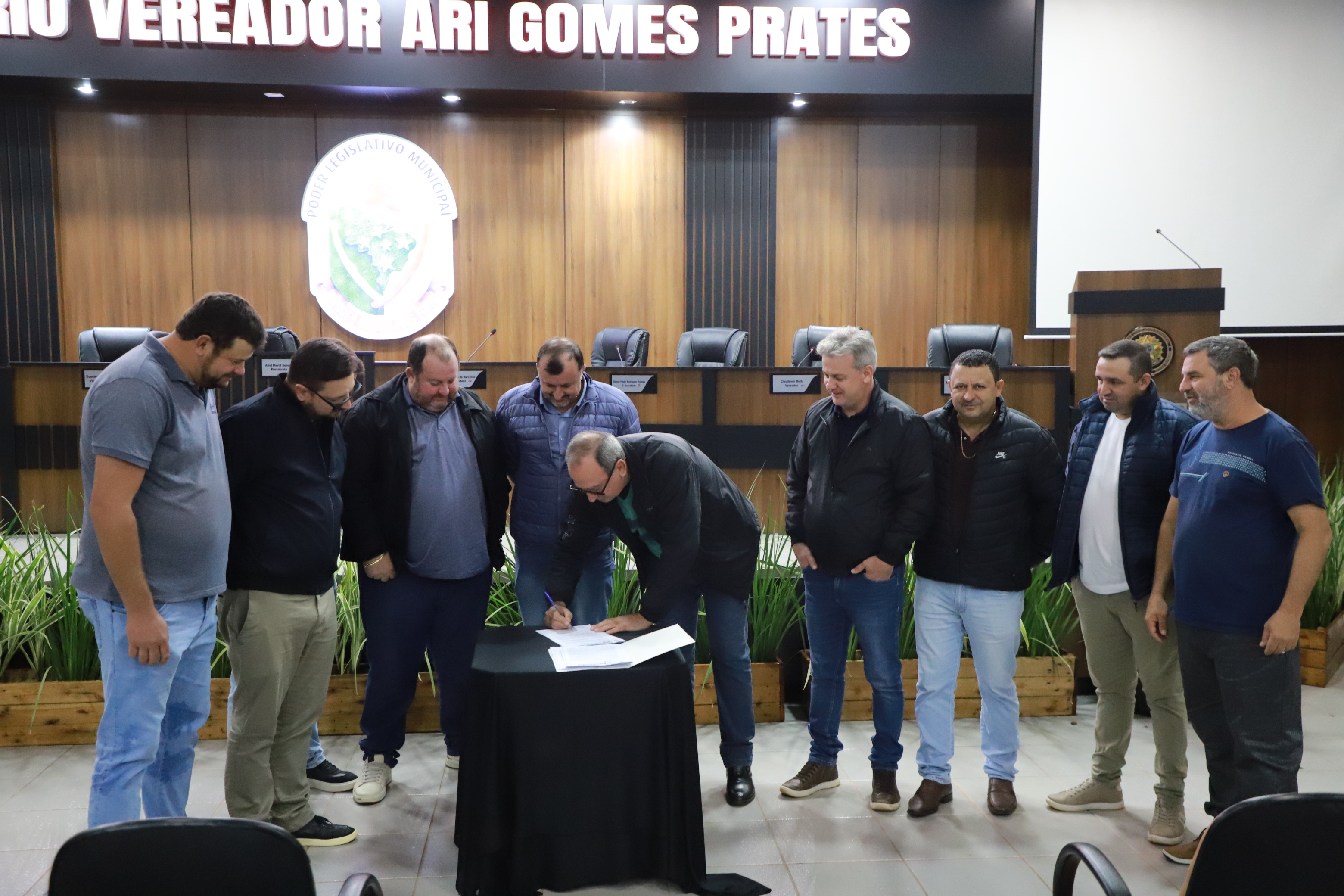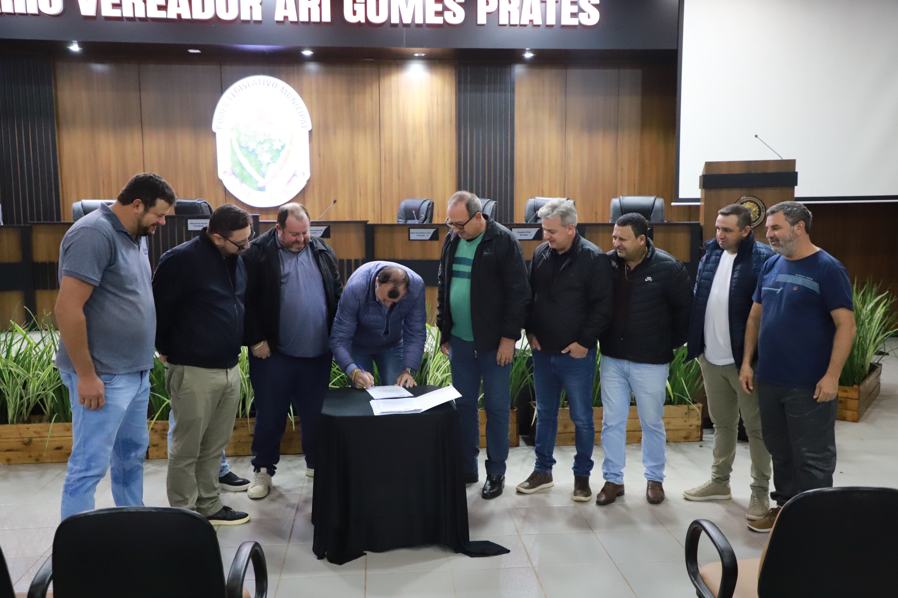 Buscando viabilizar os recursos para a execução das obras propostas, o Prefeito Lindolfo Rui, acompanhado do Vice-Prefeito Adolfo Preis e do Secretário de Obras Vilson Nei Serena, protocolou o Projeto de Lei 035/2025 solicitando abertura de crédito adicional até o limite de R$1.025.000,00 (um milhão e vinte e cinco mil reais). O Presidente do legislativo Abel David Serena e demais vereadores receberam o Projeto na quinta-feira (12).
