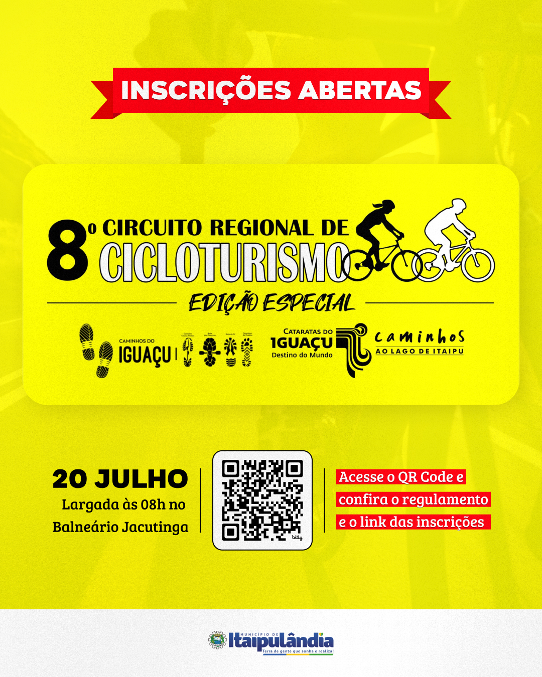Fazendo parte da programação de eventos regionais, no dia 20 de julho será realizada a 11ª Etapa do 8º Circuito Regional de Cicloturismo, em uma parceria entre o município de Itaipulândia, por meio da Secretaria de Turismo e Lazer, e a Adetur Cataratas e Caminhos. As inscrições para o evento estão abertas e poderão ser feitas no link disponível no site da ADETUR.