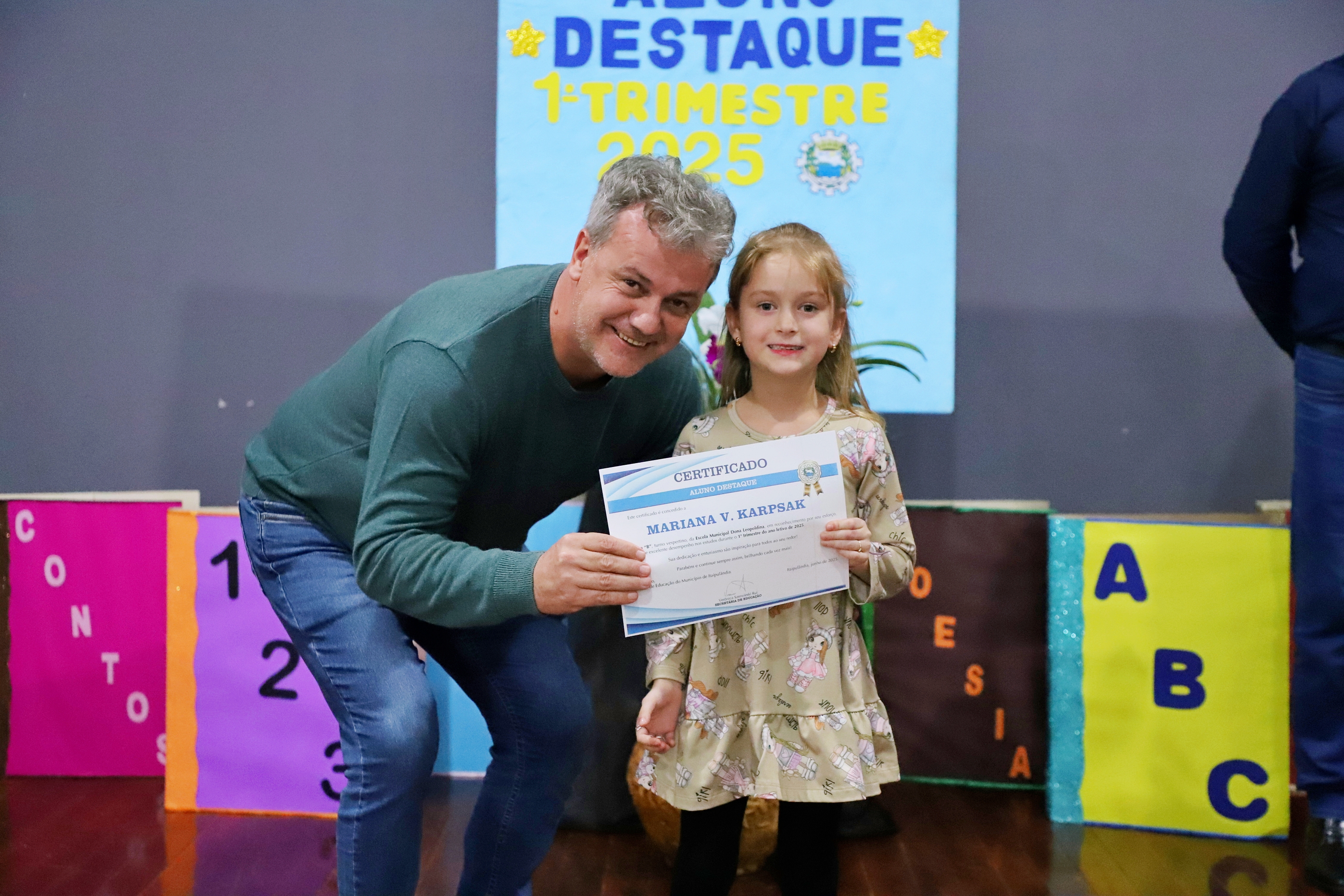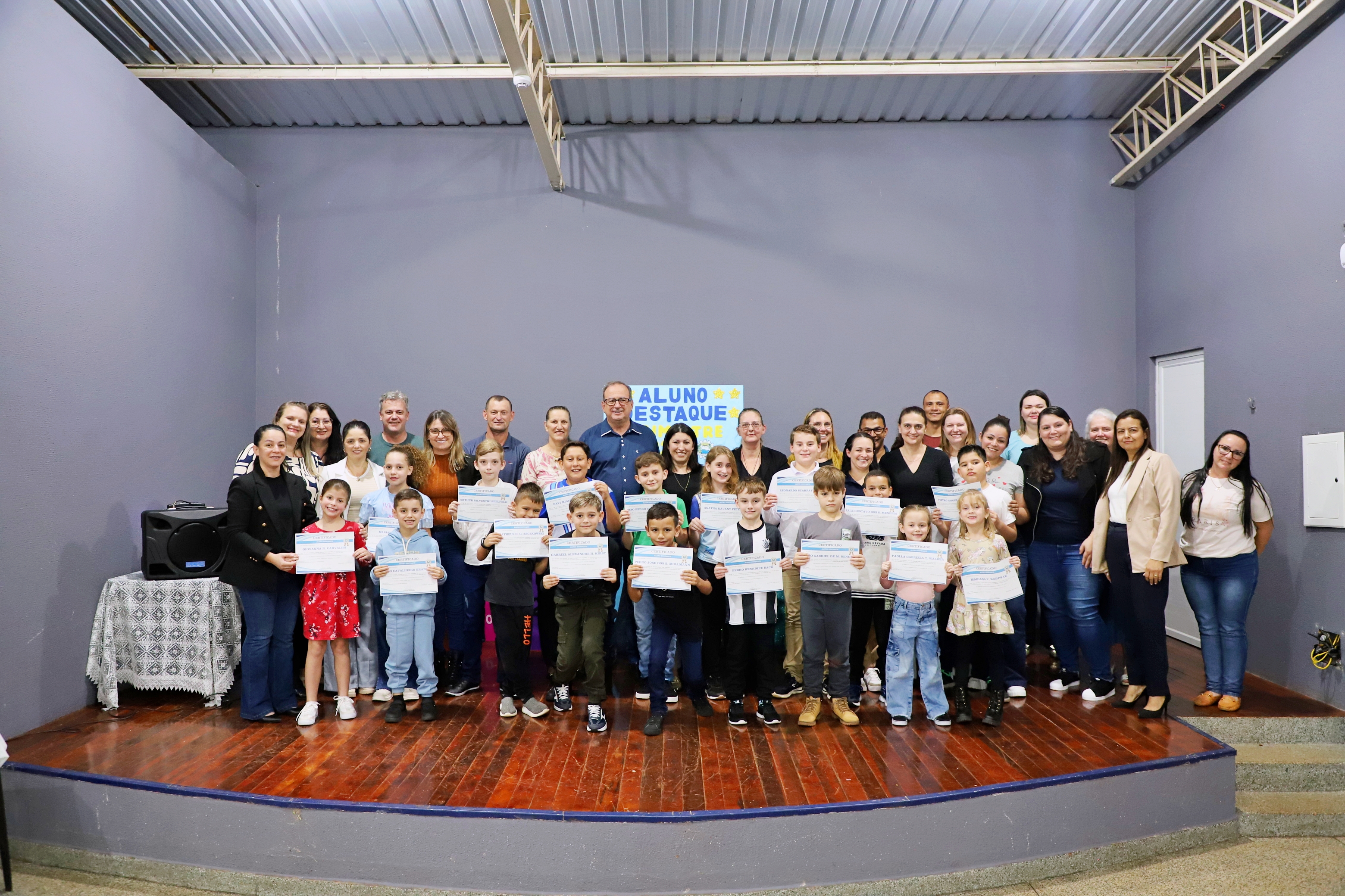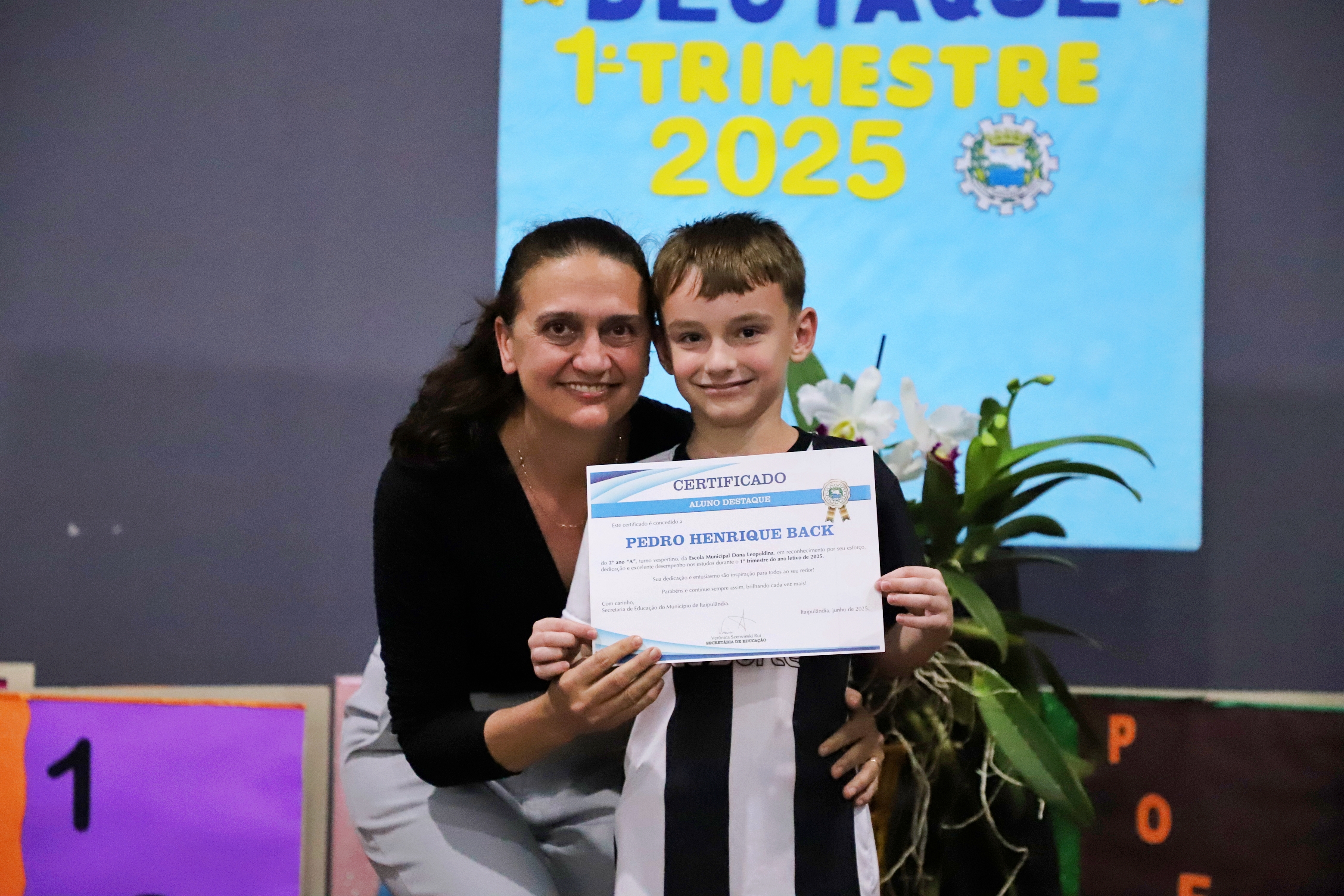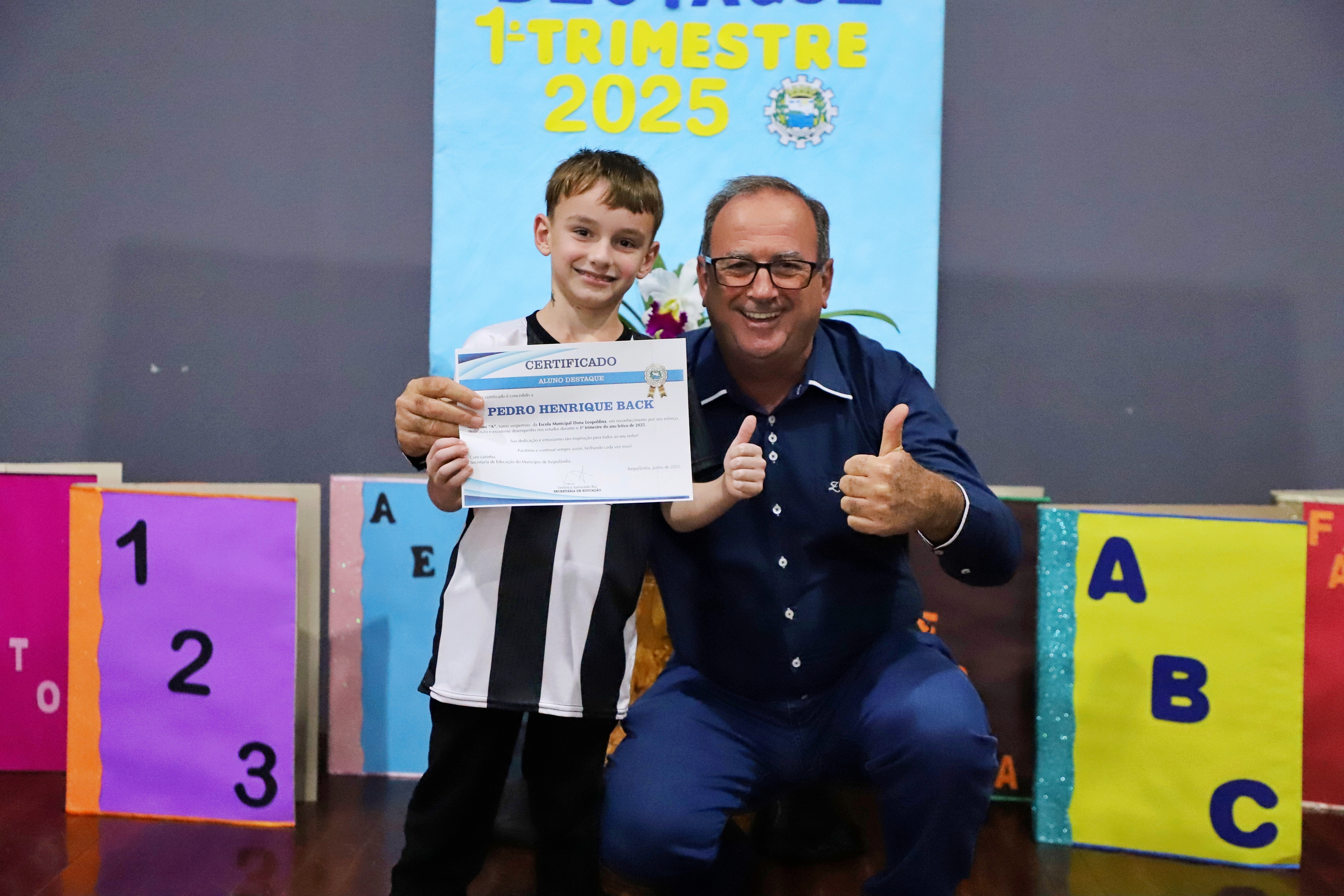 A Escola Municipal Dona Leopoldina realizou nesta semana uma cerimônia especial para homenagear 20 alunos que se destacaram no 1º trimestre letivo de 2025, com médias acima de 8,0 nas avaliações do Projeto Mais IDEB nos Municípios Lindeiros ao Lago de Itaipu, nas avaliações de Língua Portuguesa e Matemática aplicadas pela SMED e no Compromisso Nacional Criança Alfabetizada (CNCA). O evento também prestou reconhecimento aos professores da turma com melhor desempenho da escola, reforçando a valorização do trabalho pedagógico coletivo.