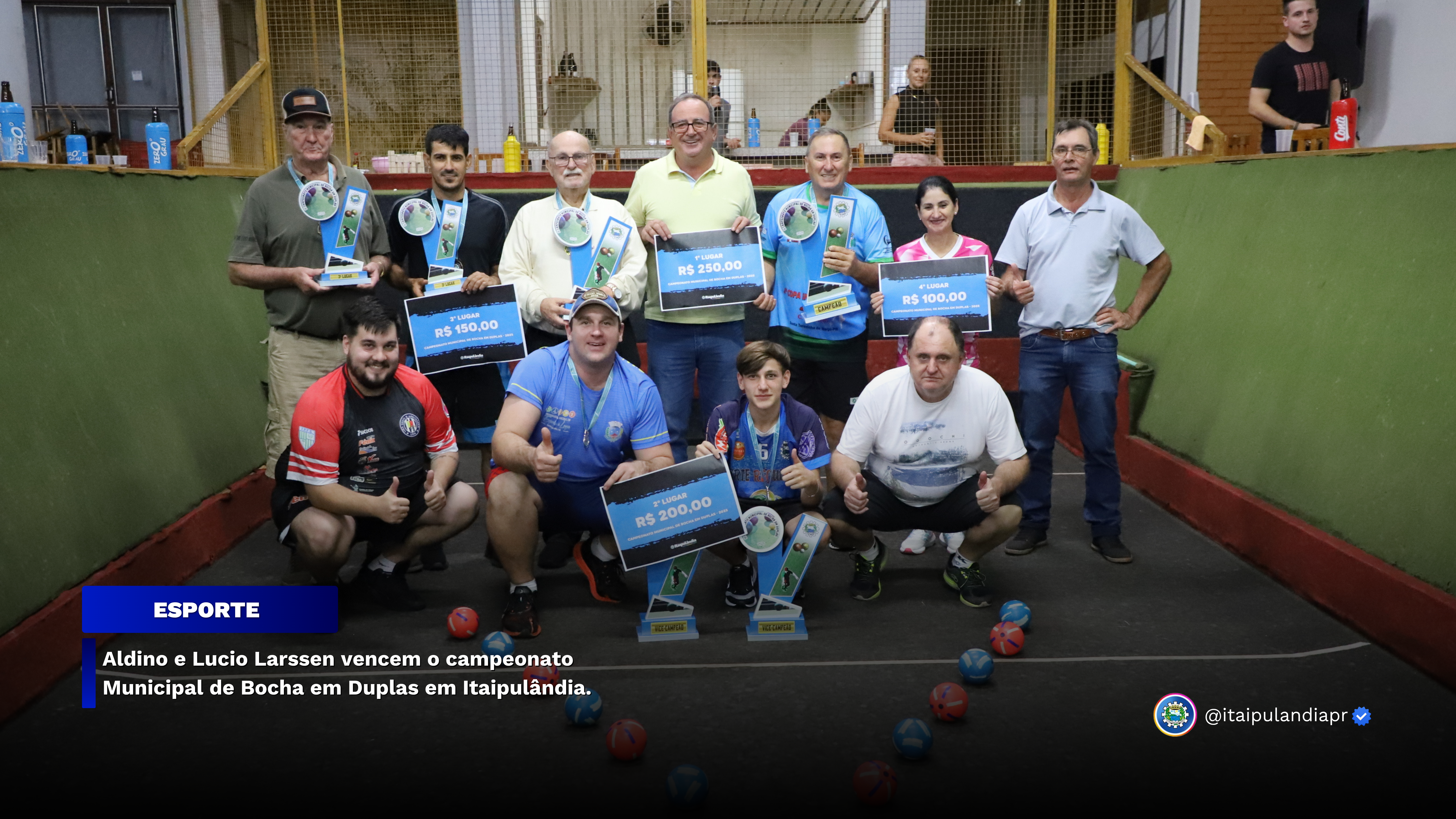 Aldino e Lucio Larssen vencem o campeonato Municipal de Bocha em Duplas em Itaipulândia