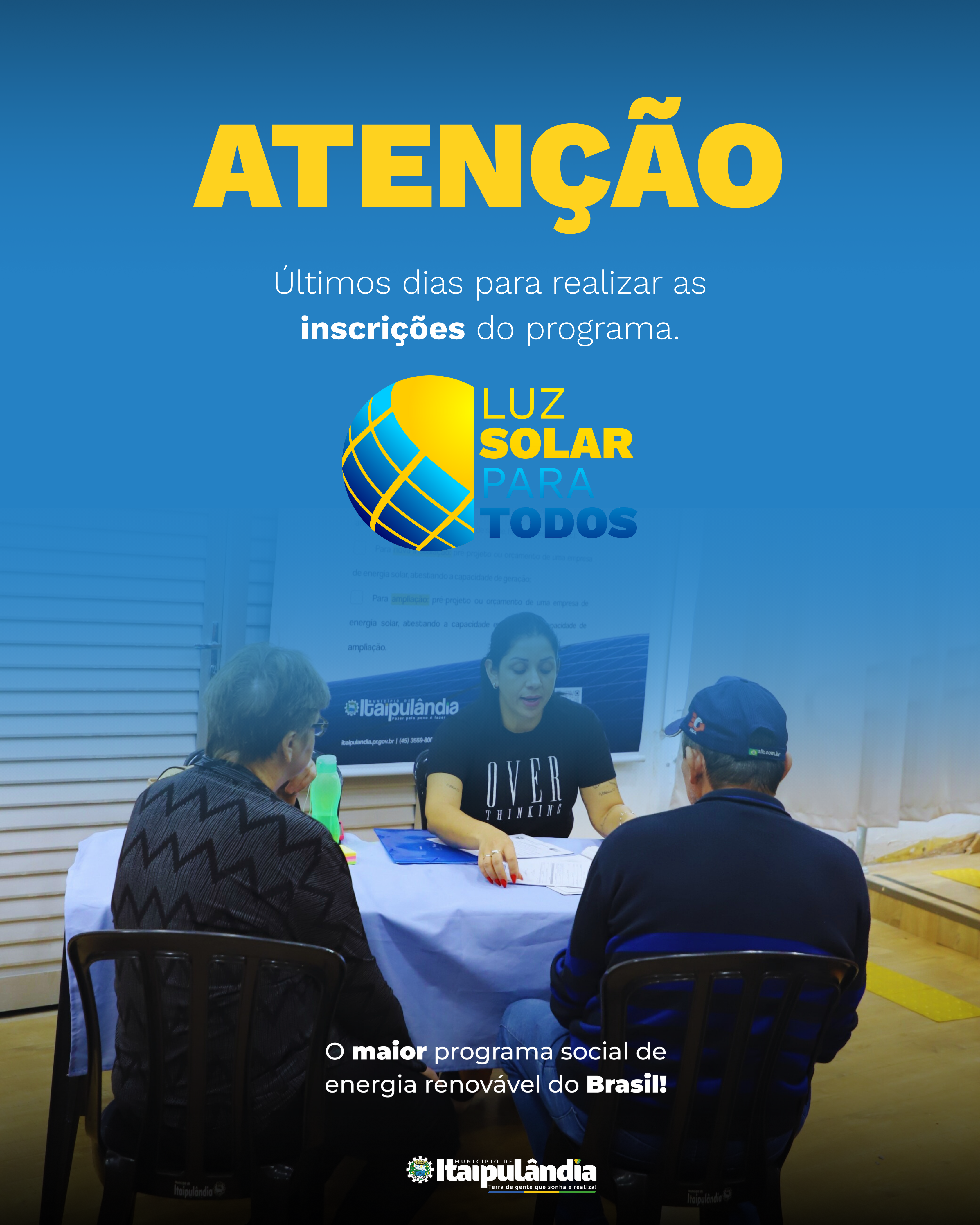 Em torno de 400 moradores de Itaipulândia já garantiram sua participação no Programa Luz Solar Para Todos. As inscrições vão até o dia 27 de junho e esta é a chance de investir em energia limpa e economizar na conta de luz!