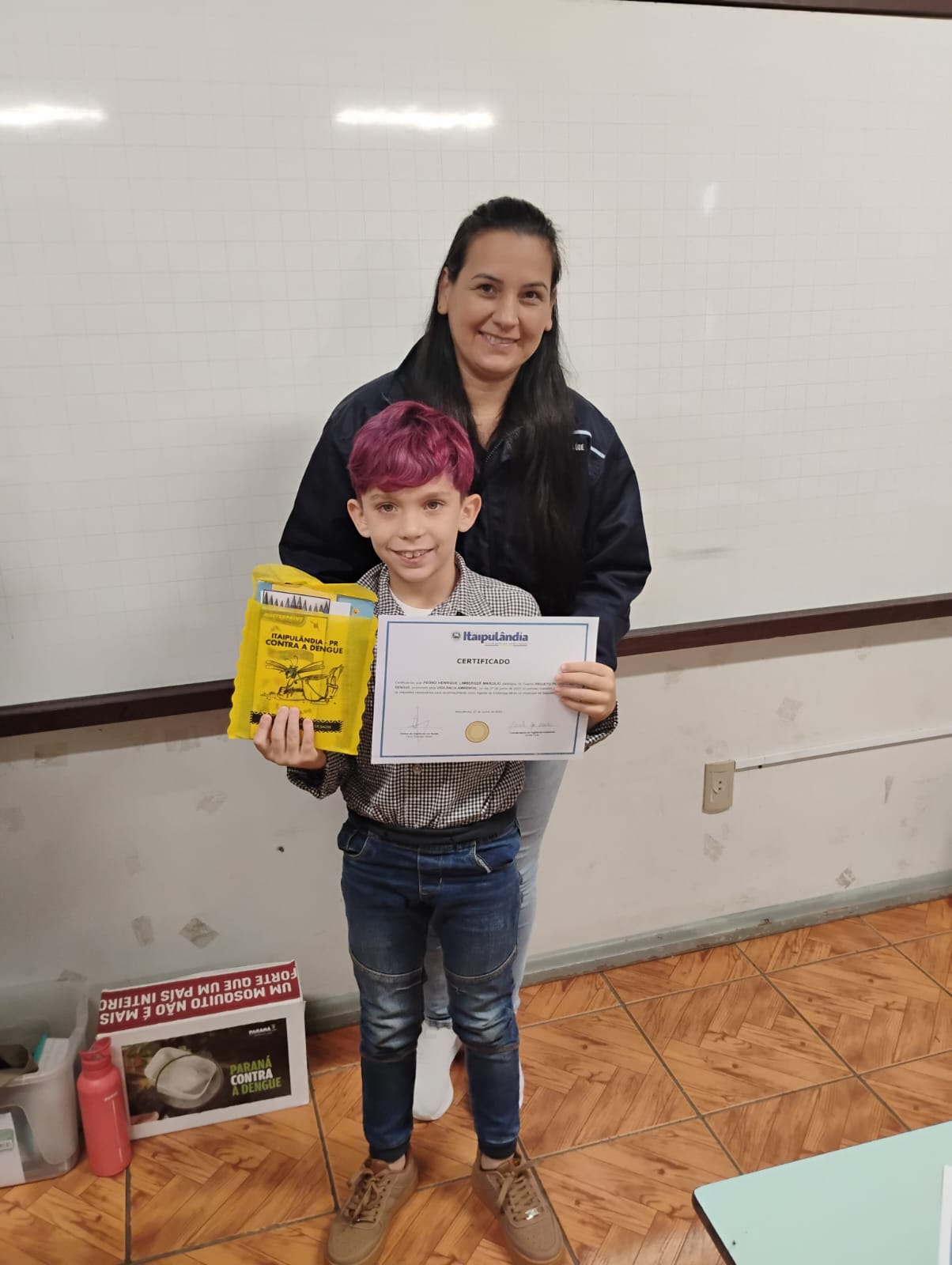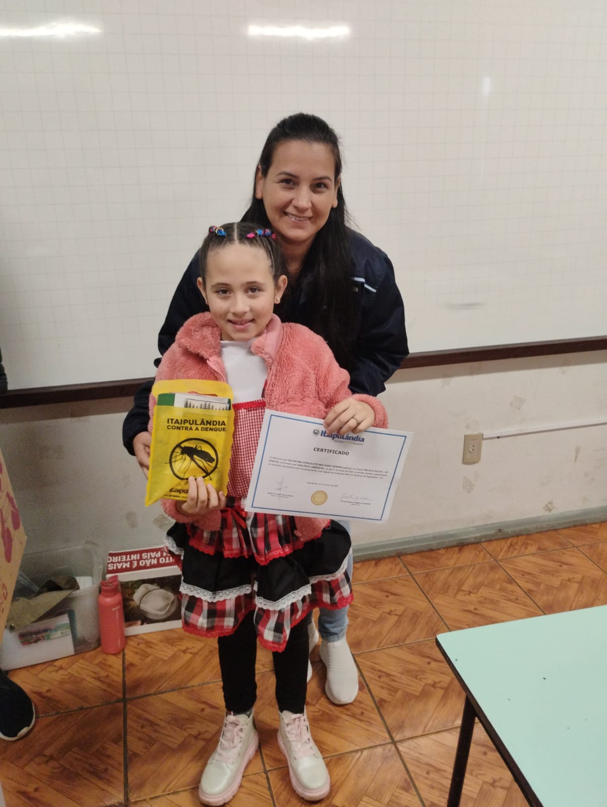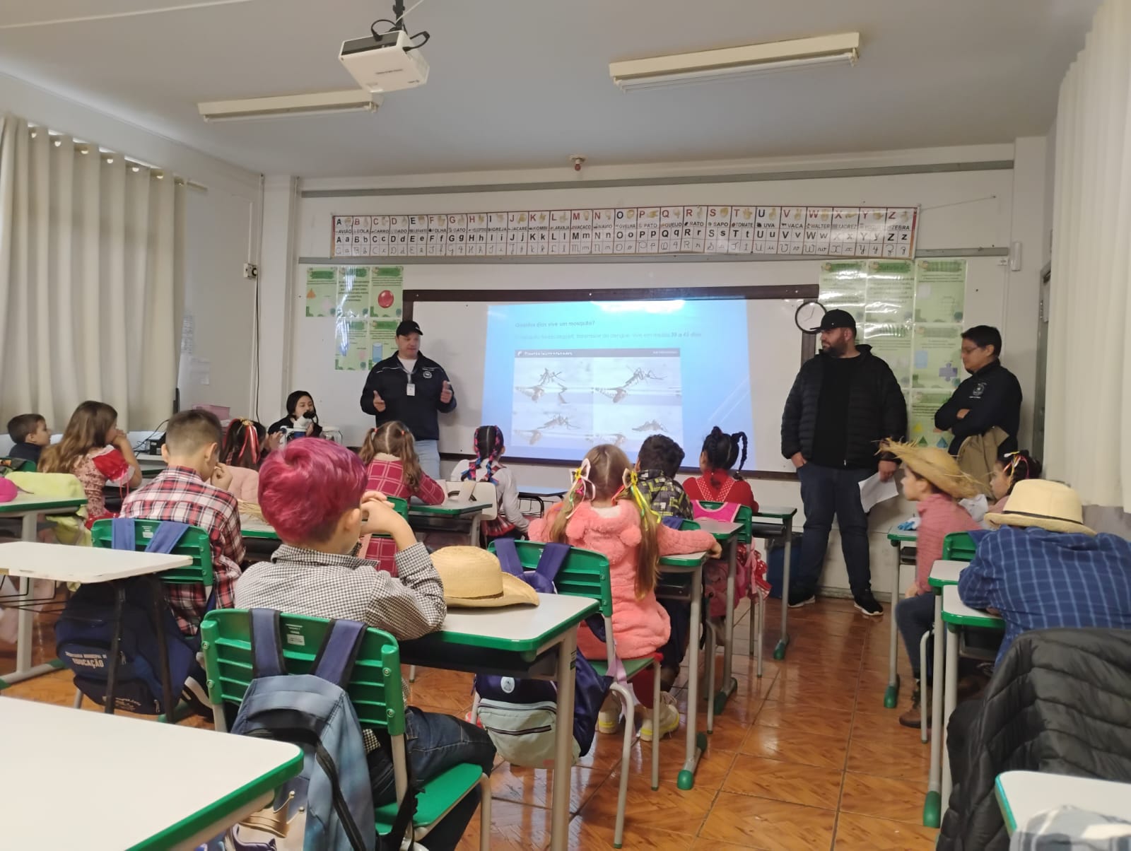 Na manhã desta sexta-feira (27), alunos do 3º ano B da Escola Municipal Carlos Gomes participaram do projeto piloto “Xô Dengue”, uma ação educativa promovida pela Vigilância Ambiental de Itaipulândia que contou com palestras e atividades lúdicas que abordaram os cuidados com a dengue e informações sobre o mosquito Aedes aegypti.