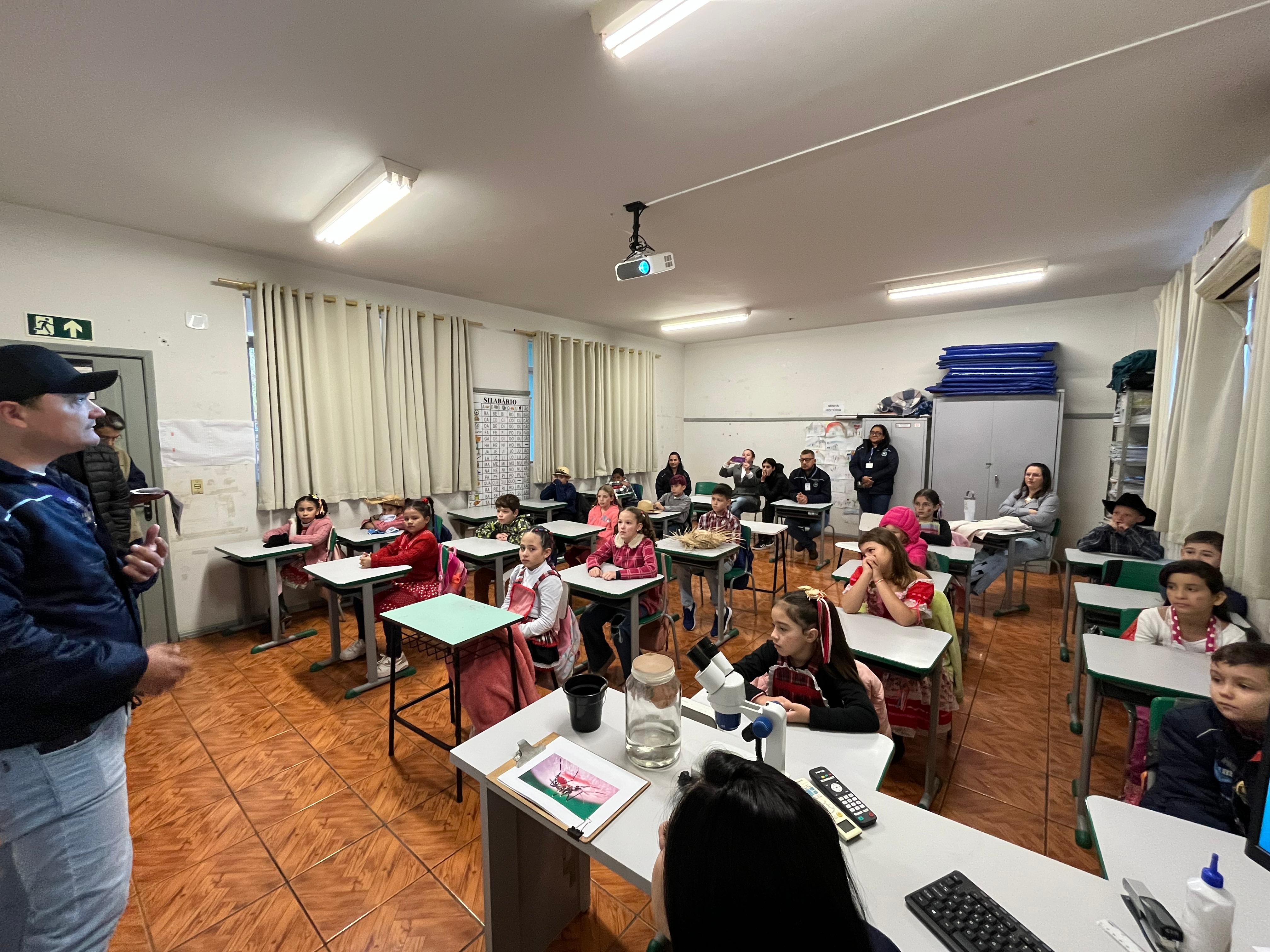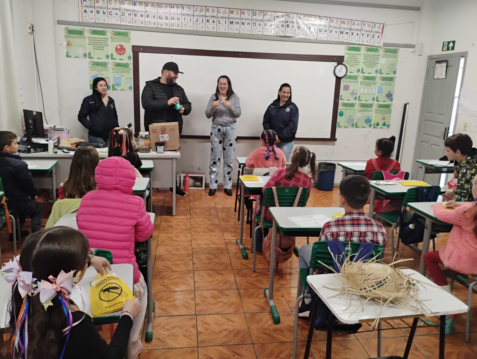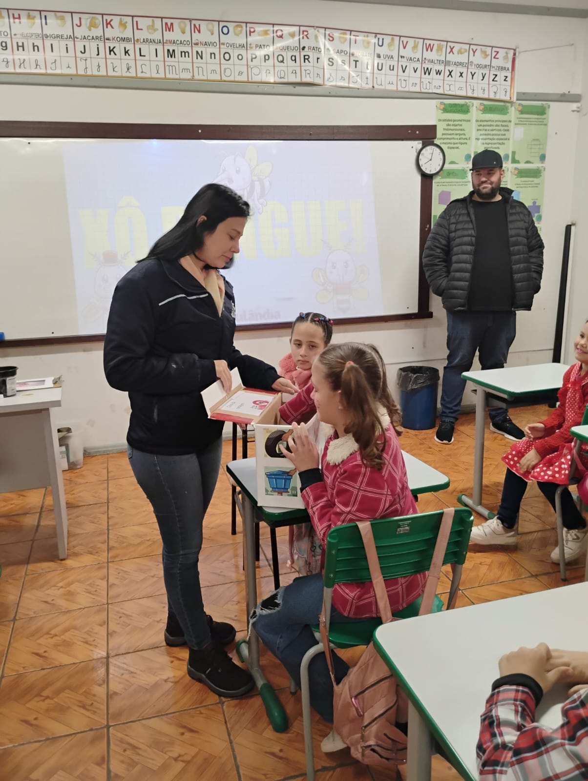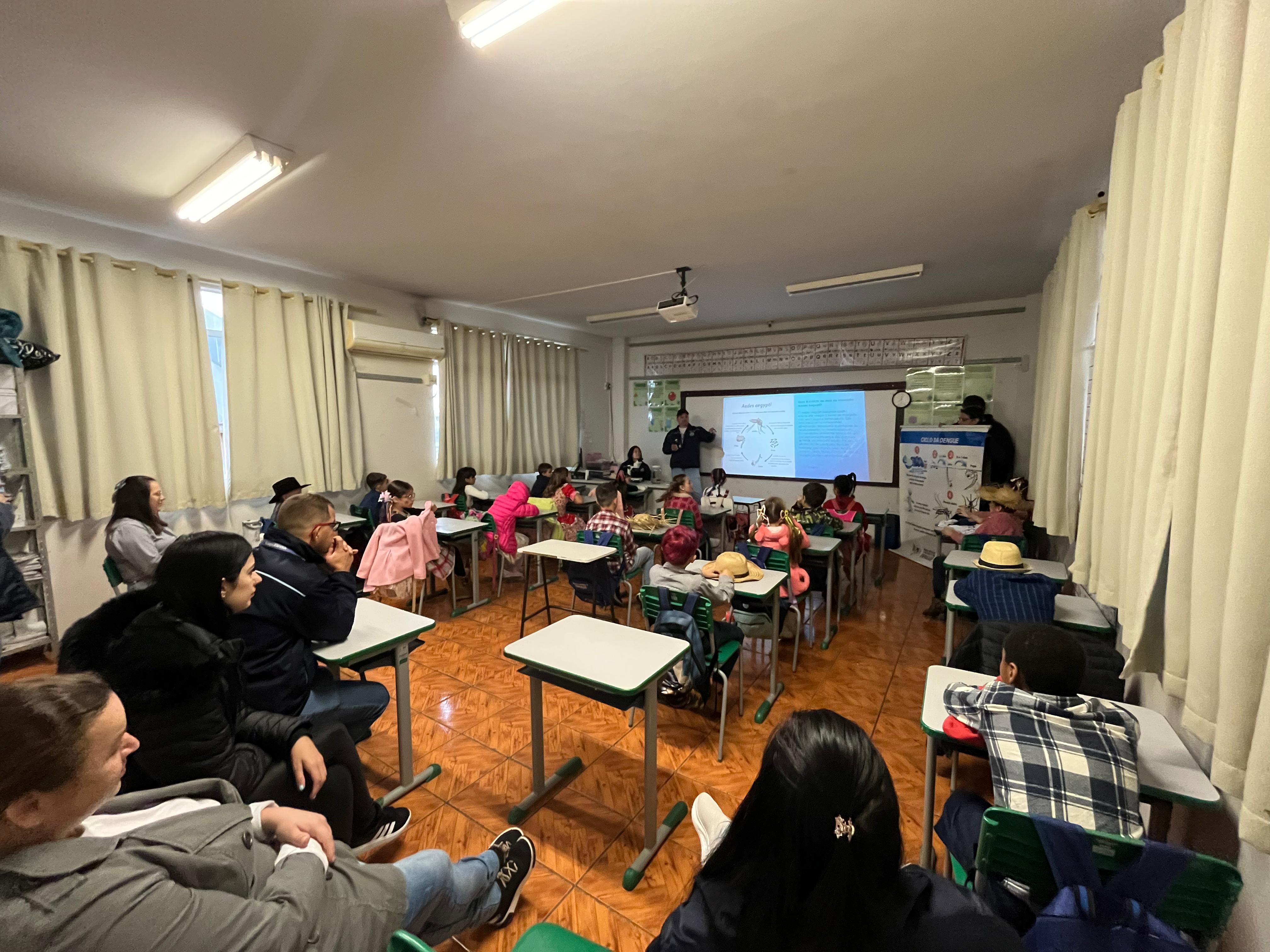 Na manhã desta sexta-feira (27), alunos do 3º ano B da Escola Municipal Carlos Gomes participaram do projeto piloto “Xô Dengue”, uma ação educativa promovida pela Vigilância Ambiental de Itaipulândia que contou com palestras e atividades lúdicas que abordaram os cuidados com a dengue e informações sobre o mosquito Aedes aegypti.