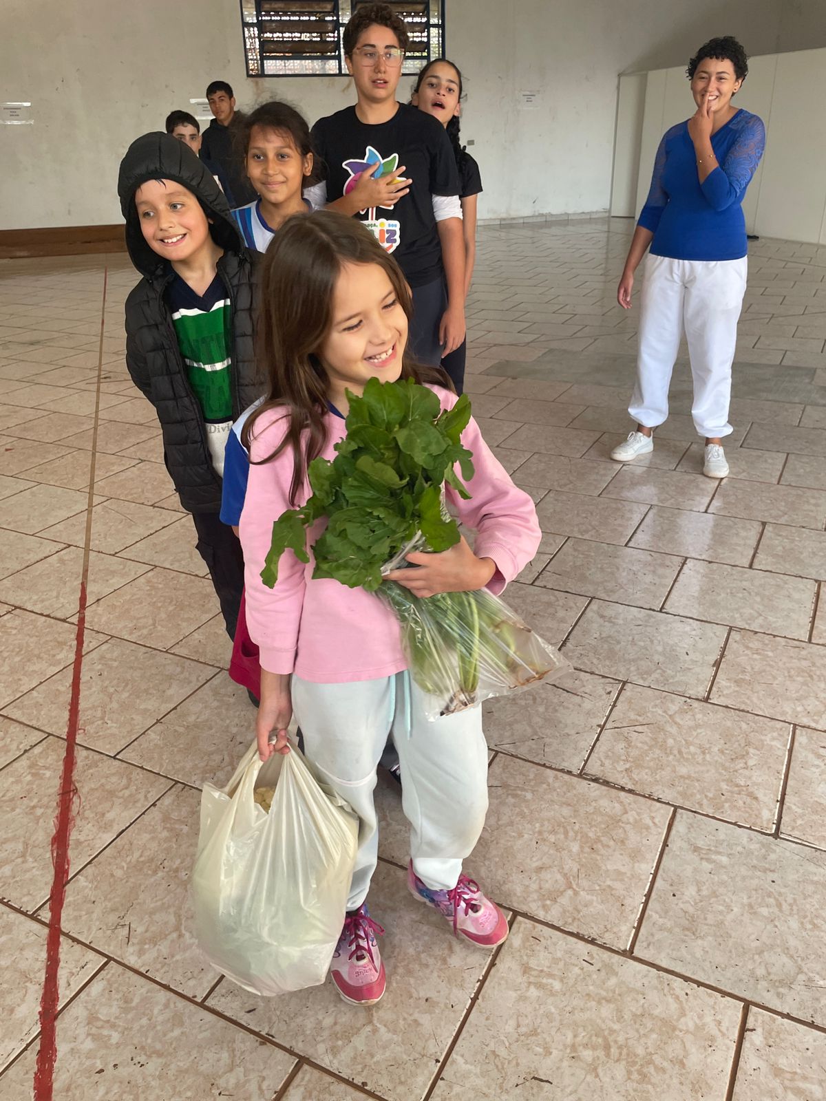 Crianças e adolescentes que frequentam o Serviço de Convivência e Fortalecimento de VÃnculos recebem semanalmente alimentos da Agricultura Familiar