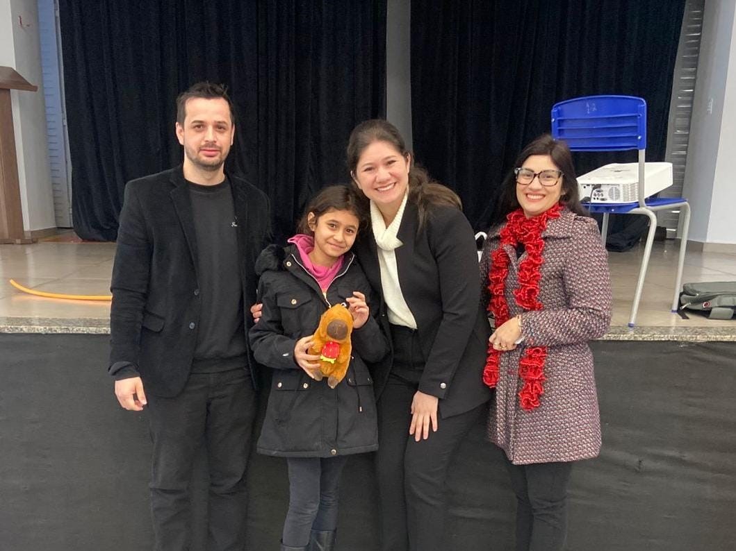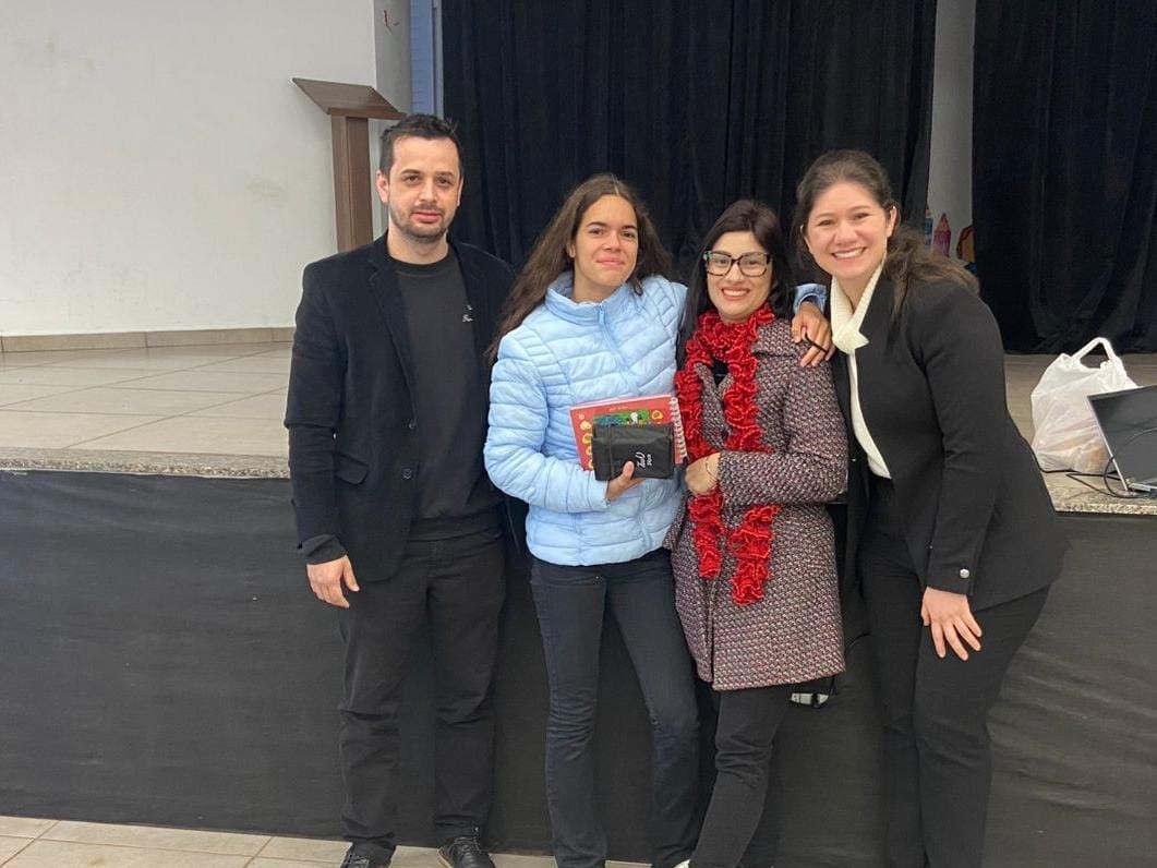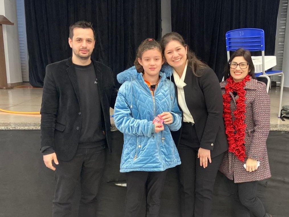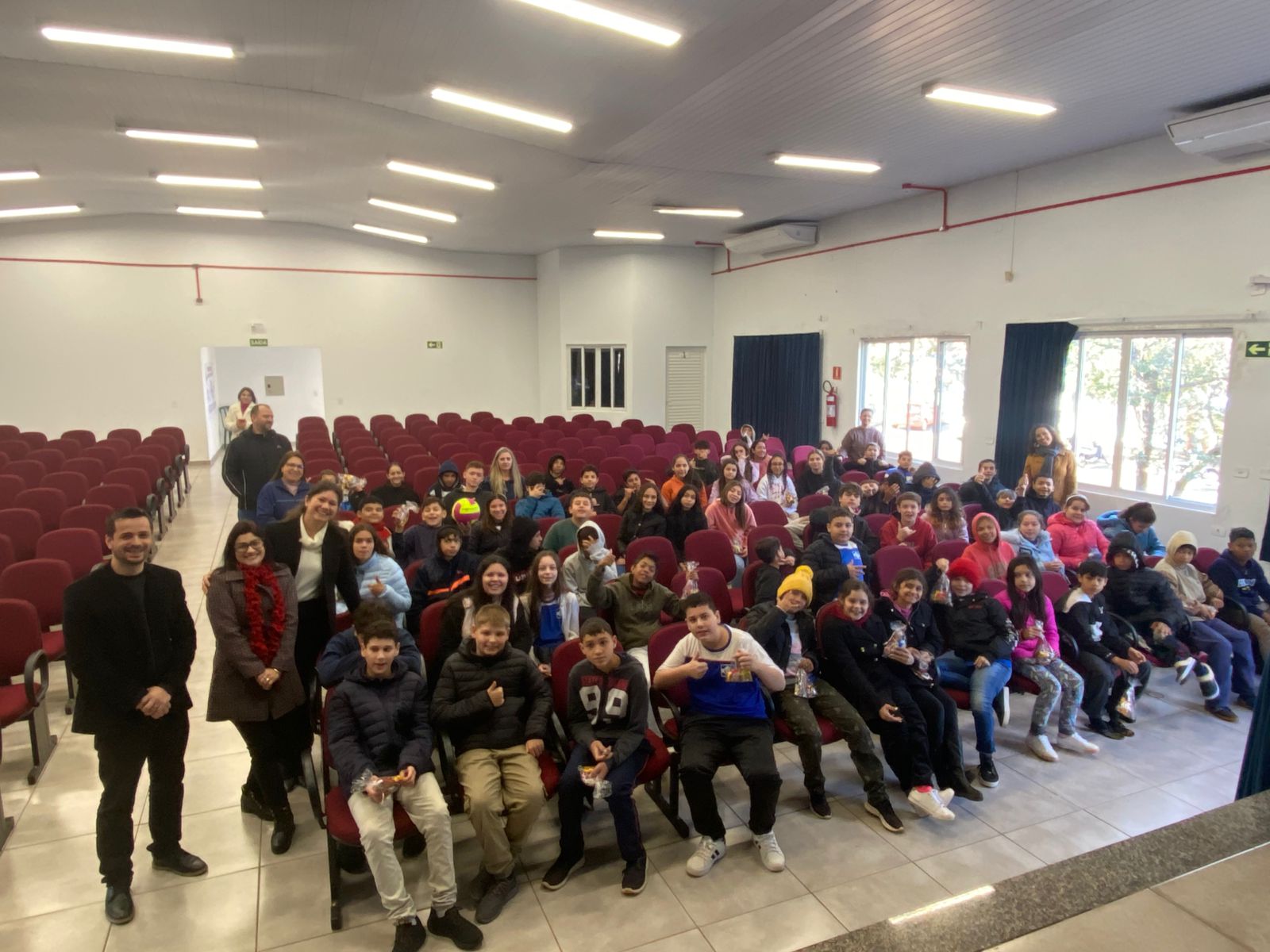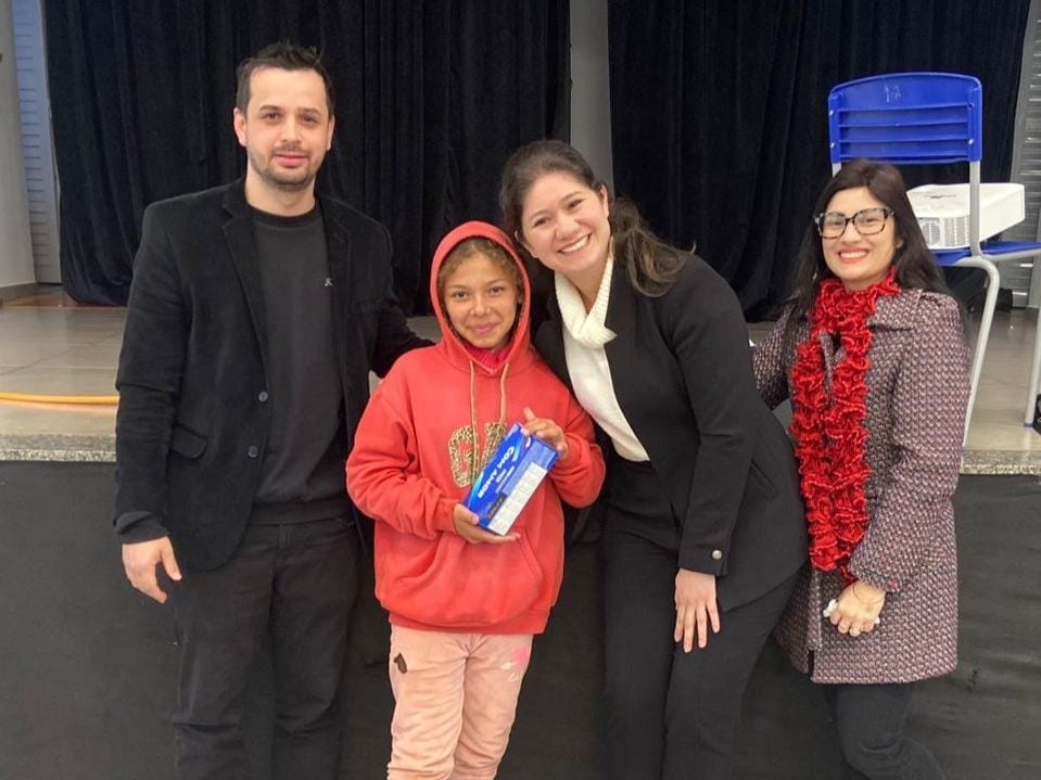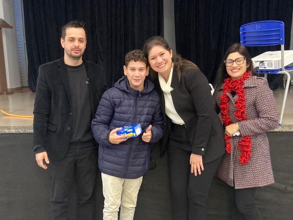 Além da palestra os alunos participaram de uma dinâmica com perguntas sobre os temas abordados ao longo do projeto, sendo premiados com brindes como camisetas, ursos, chocolates e outros itens doados por empresas parceiras. O encerramento também contou com homenagens feitas pela coordenadora Carina às profissionais da saúde e ao Secretário Fernando, em reconhecimento pelo trabalho desenvolvido. O momento foi marcado por emoção, falas de gratidão e a certeza de que a iniciativa causou efeito real na vida dos estudantes.