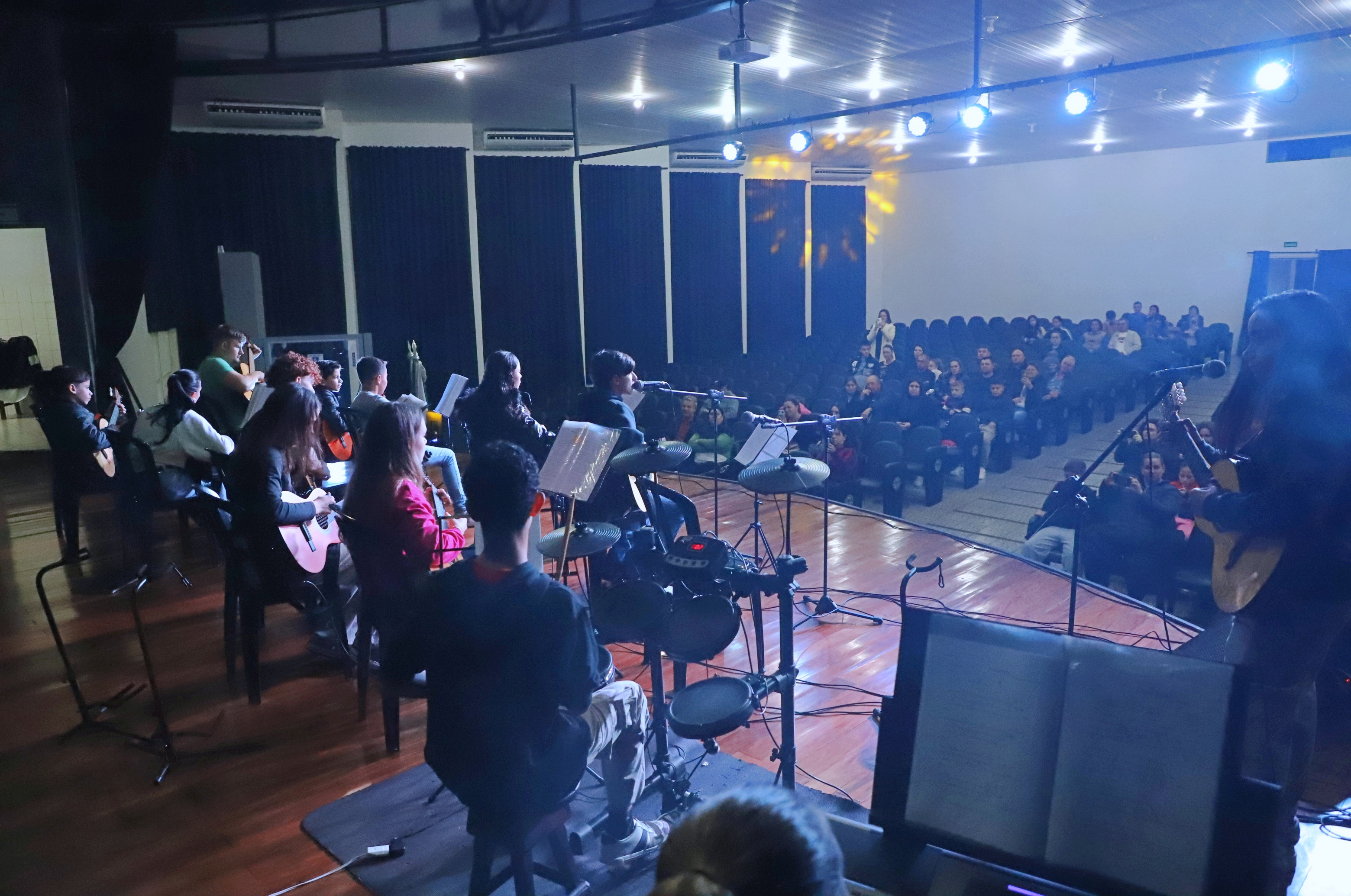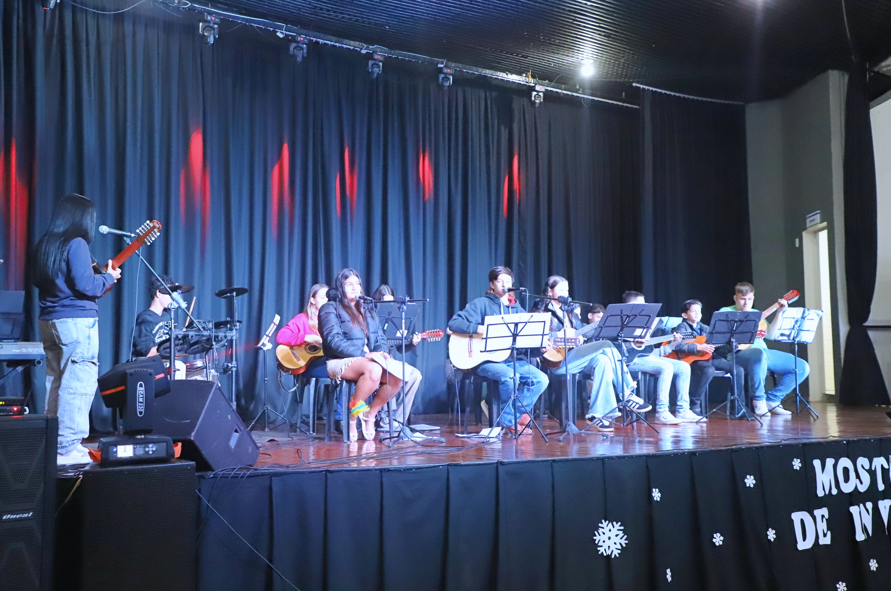 A 3ª noite da Mostra Cultural de Inverno foi um verdadeiro espetáculo, reunindo apresentações das oficinas de viola caipira, violão, bateria e vocal, além de uma performance especial que surpreendeu o público.