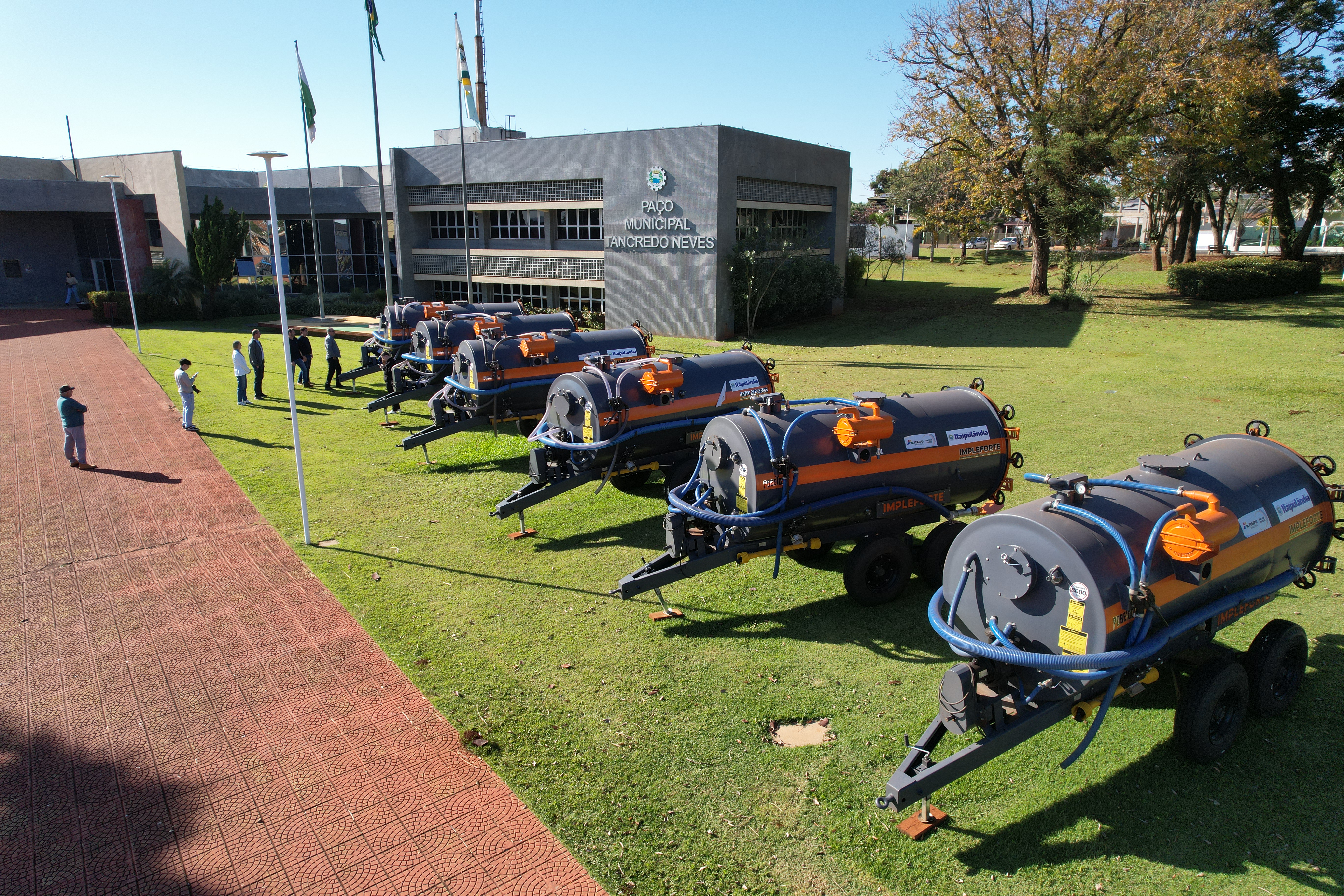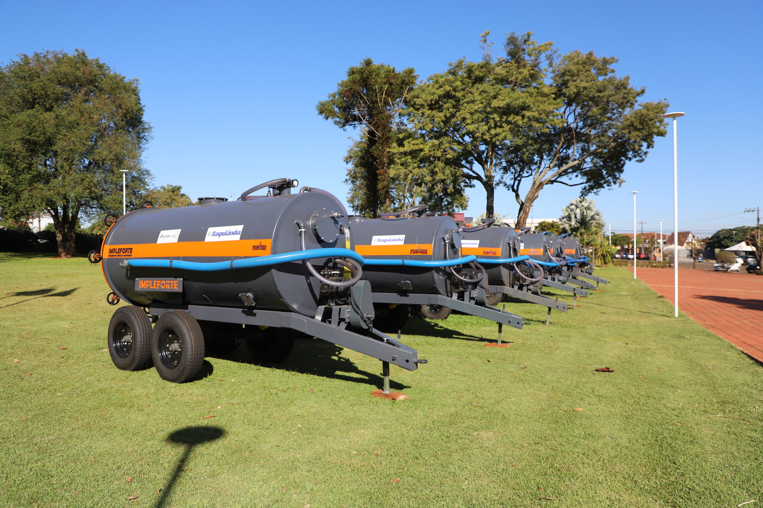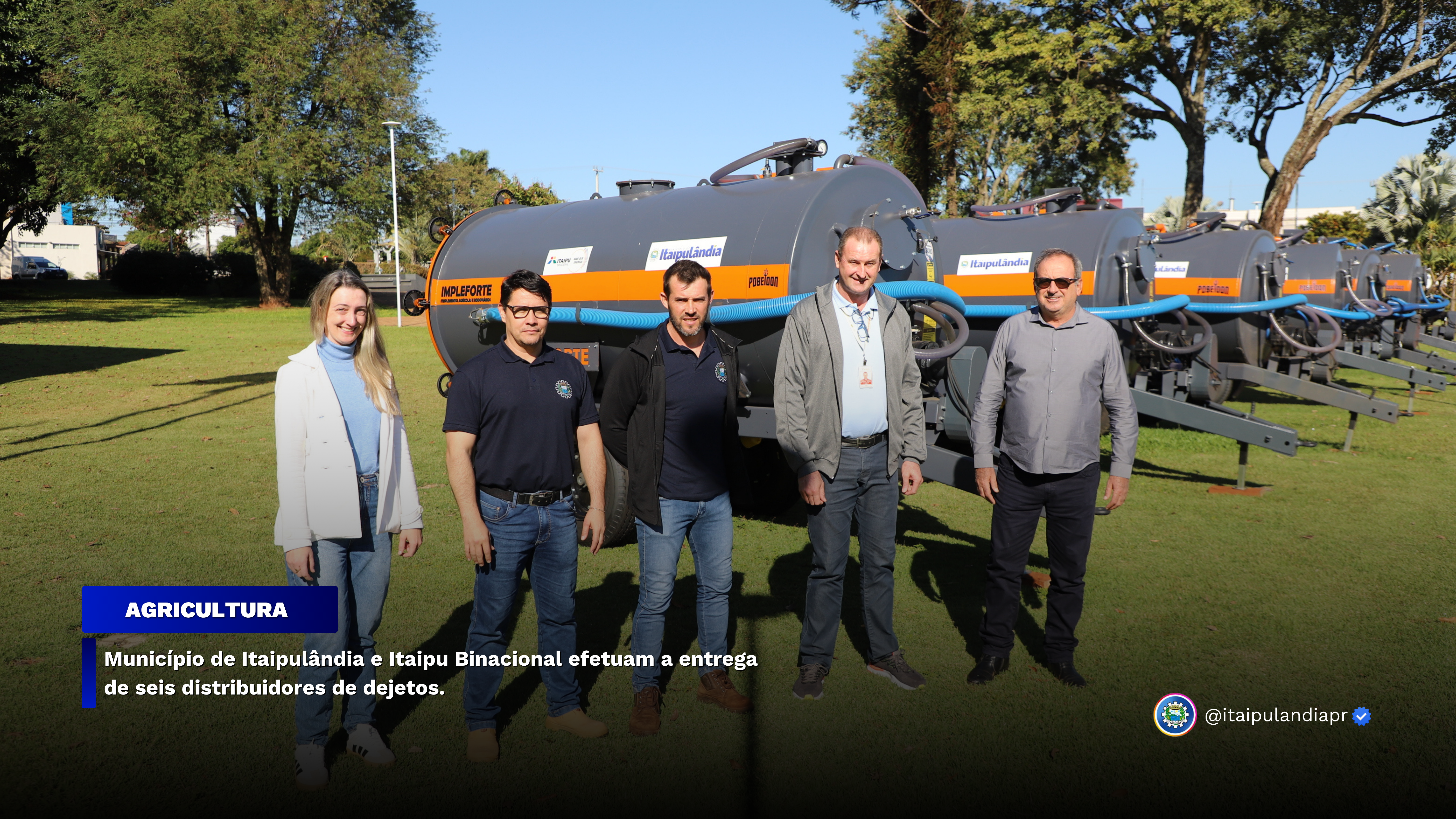 Na manhã desta segunda-feira (07), o município de Itaipulândia, juntamente com a Itaipu Binacional, realizou a entrega oficial de seis distribuidores de dejetos suínos que serão destinados à grupos de agricultores. A aquisição desses equipamentos foi viabilizada por meio do Convênio que existe entre a Itaipu Binacional e o município de Itaipulândia.