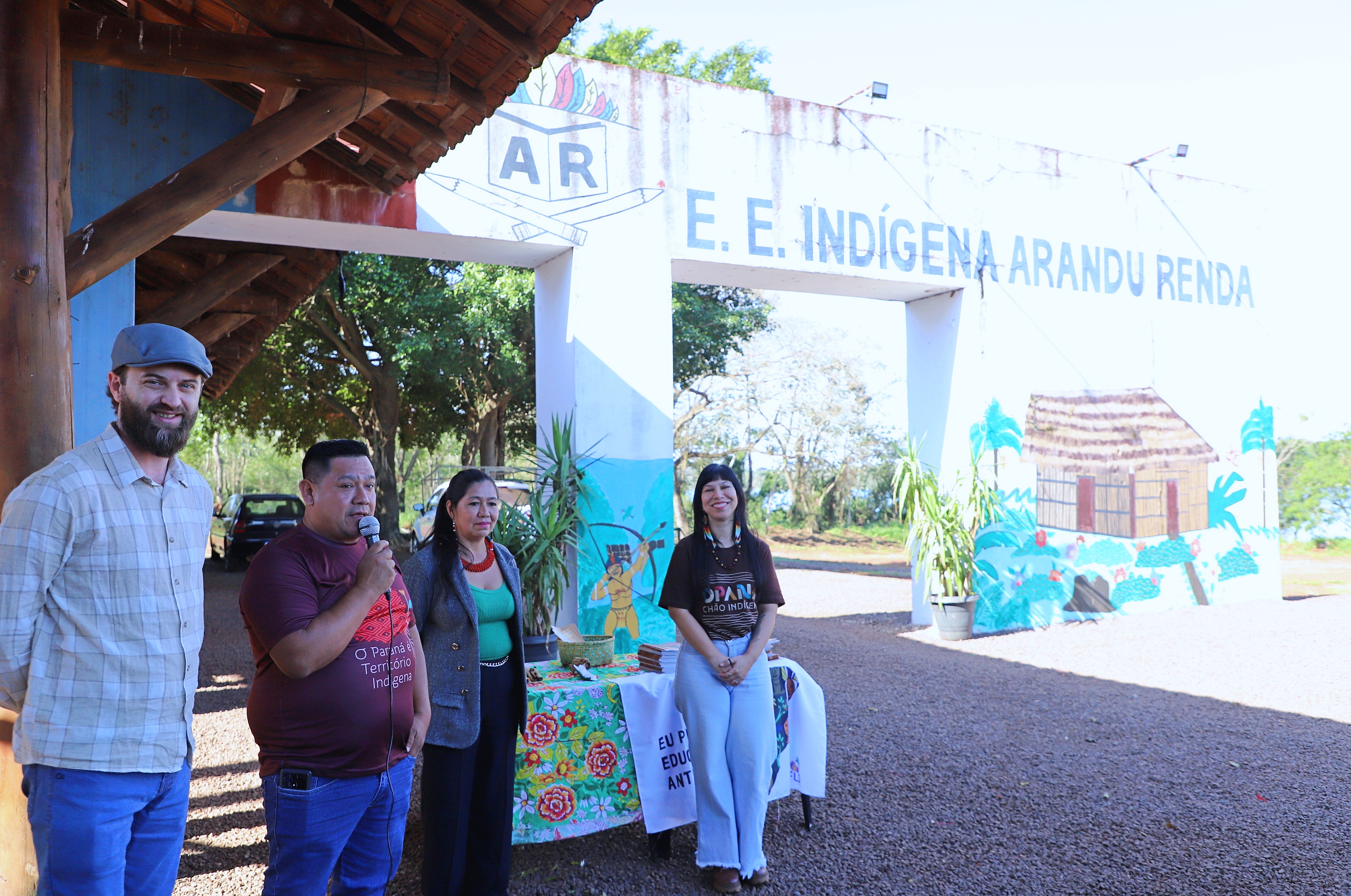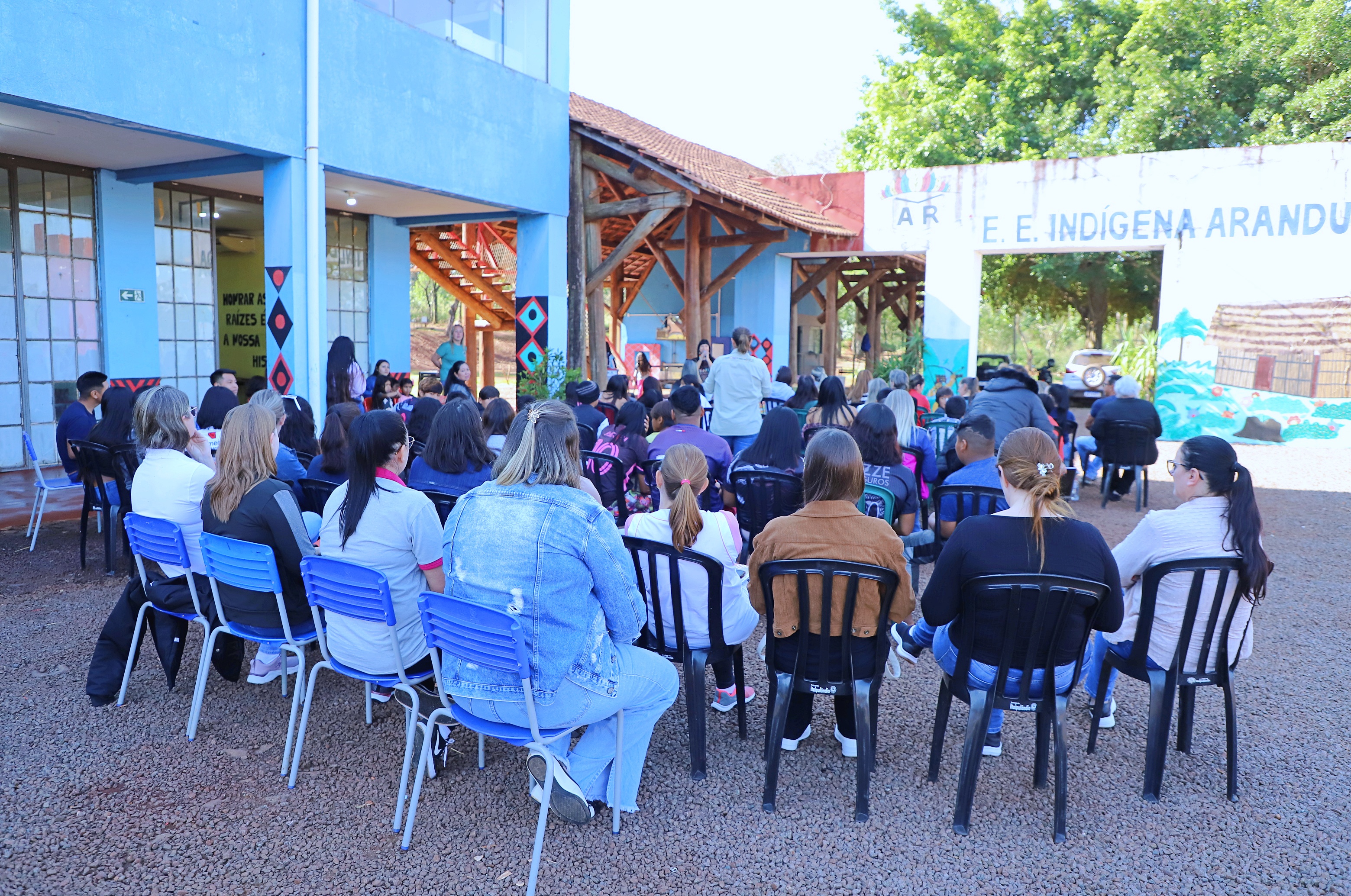 Na tarde de ontem (07), foi realizado o lançamento oficial do material de apoio elaborado pela equipe do Projeto Opaná, em um evento especial na Escola Arandu Renda, localizada na Tekoha Aty MirÄ«. O encontro reuniu diretores, coordenadores e a equipe da Secretaria Municipal de Educação, além de professores e alunos da comunidade escolar indígena.