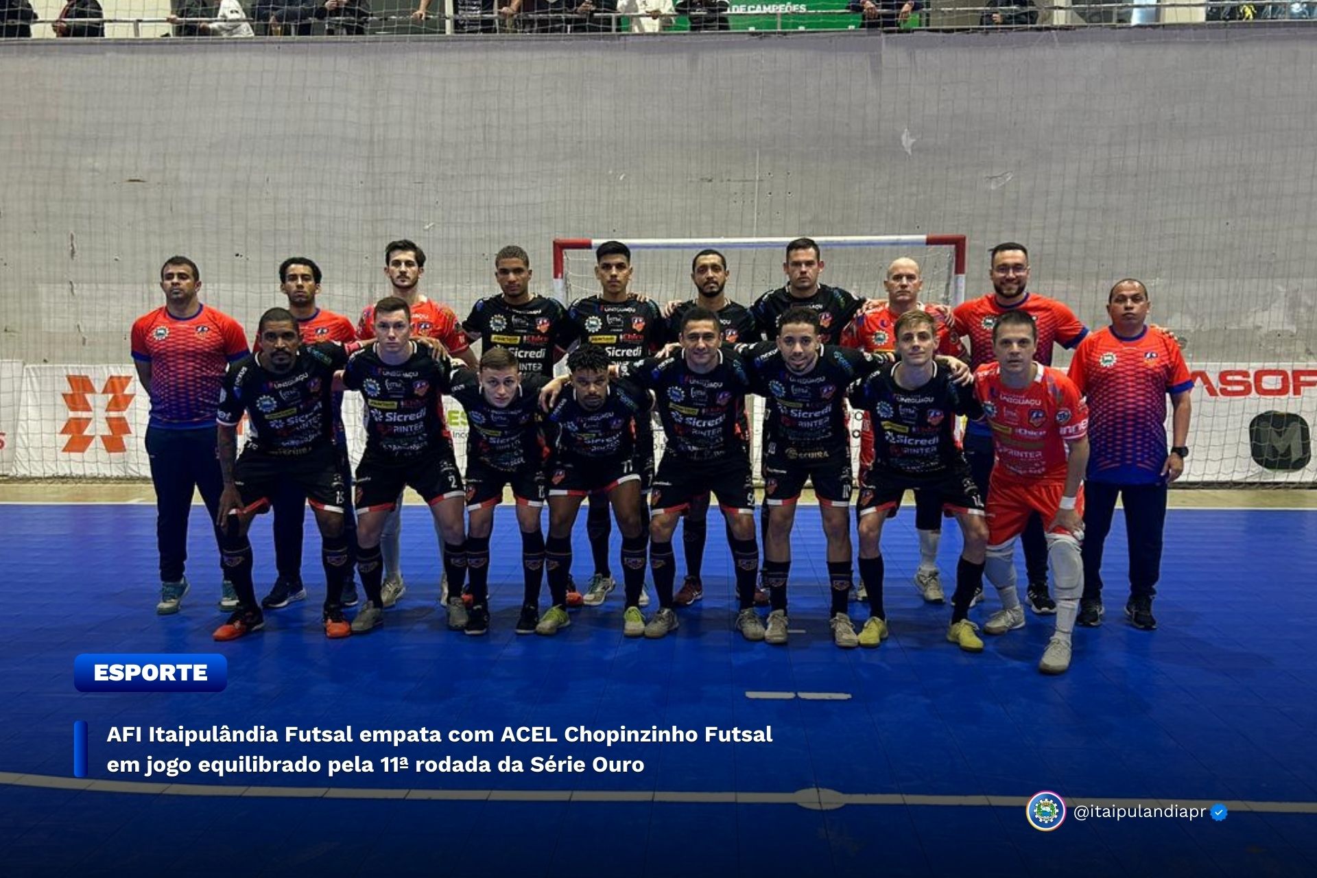 Na noite do último sábado (12), no Ginásio Dionísio de Bona, em Chopinzinho, a AFI Itaipulândia Futsal enfrentou a equipe da ACEL Chopinzinho Futsal pela 11ª rodada do Campeonato Paranaense de Futsal Série Ouro. A partida terminou empatada em 4 x 4, após um jogo marcado por intensidade e equilíbrio.