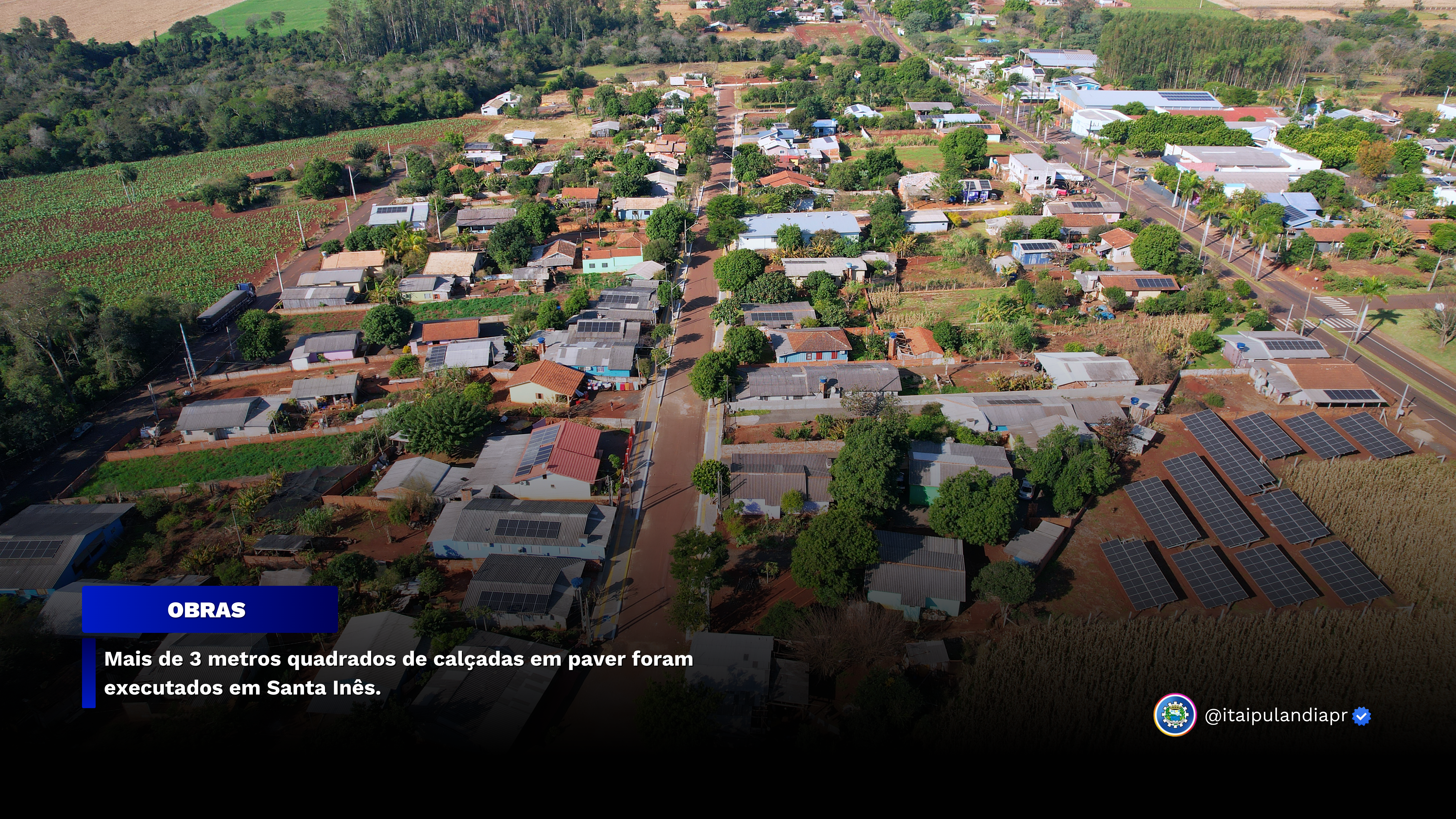 No mês de abril tiveram início as obras de implantação de calçadas em paver na comunidade de Santa Inês, atendendo as ruas Itacorá, Santa Rita de Cássia, Leopoldo Silvio Mensch, Santo Antonio, São Paulo e Santa Terezinha. Na última semana a empresa responsável pela execução concluiu os trabalhos.