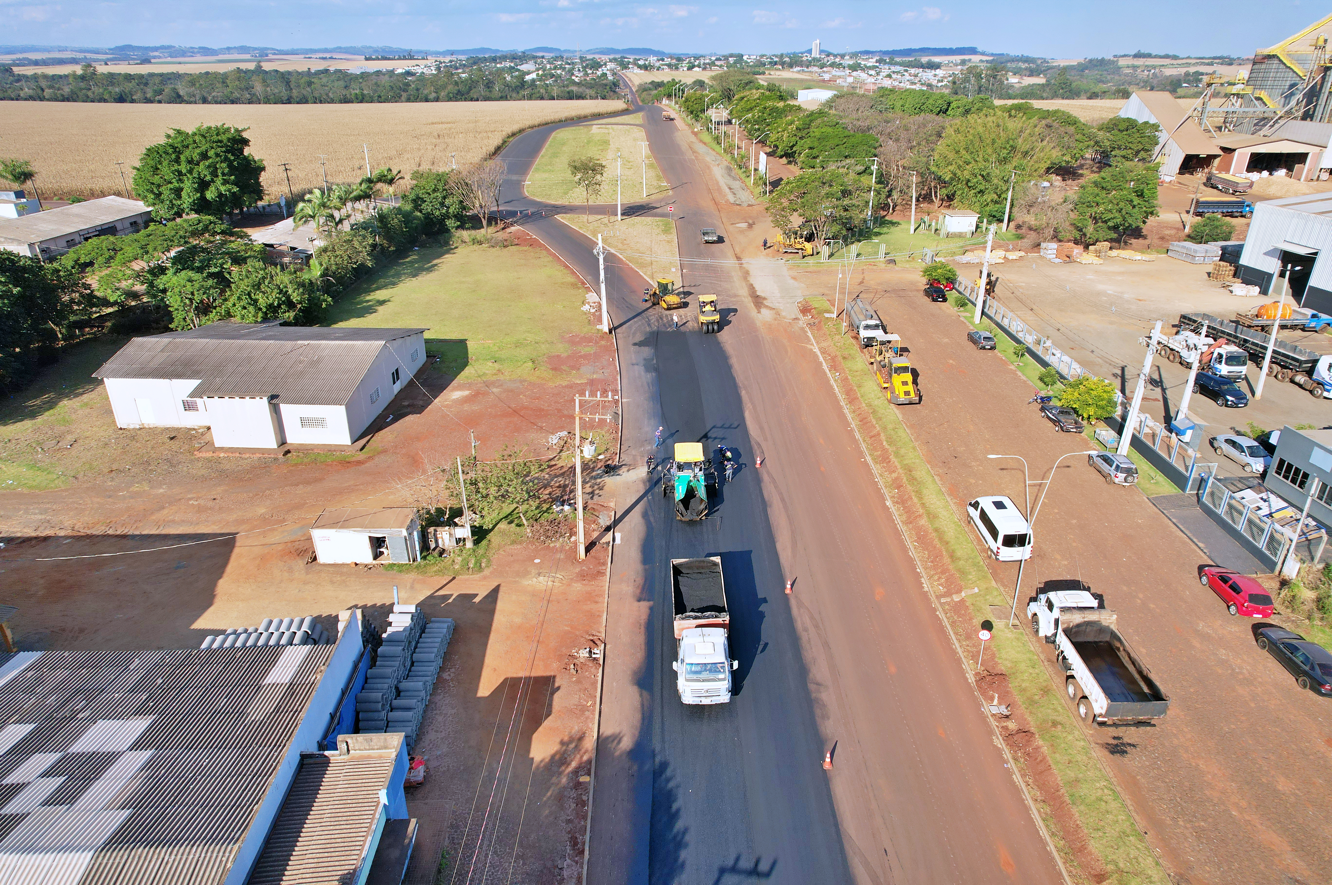 Nesta semana estão sendo desenvolvidos trabalhos com a aplicação de camada asfáltica que melhorará as condições de trafegabilidade no local. Nos próximos dias o trajeto duplicado irá receber a implantação de iluminação em LED em toda sua extensão e ciclofaixa da Área Industrial até Santa Inês.