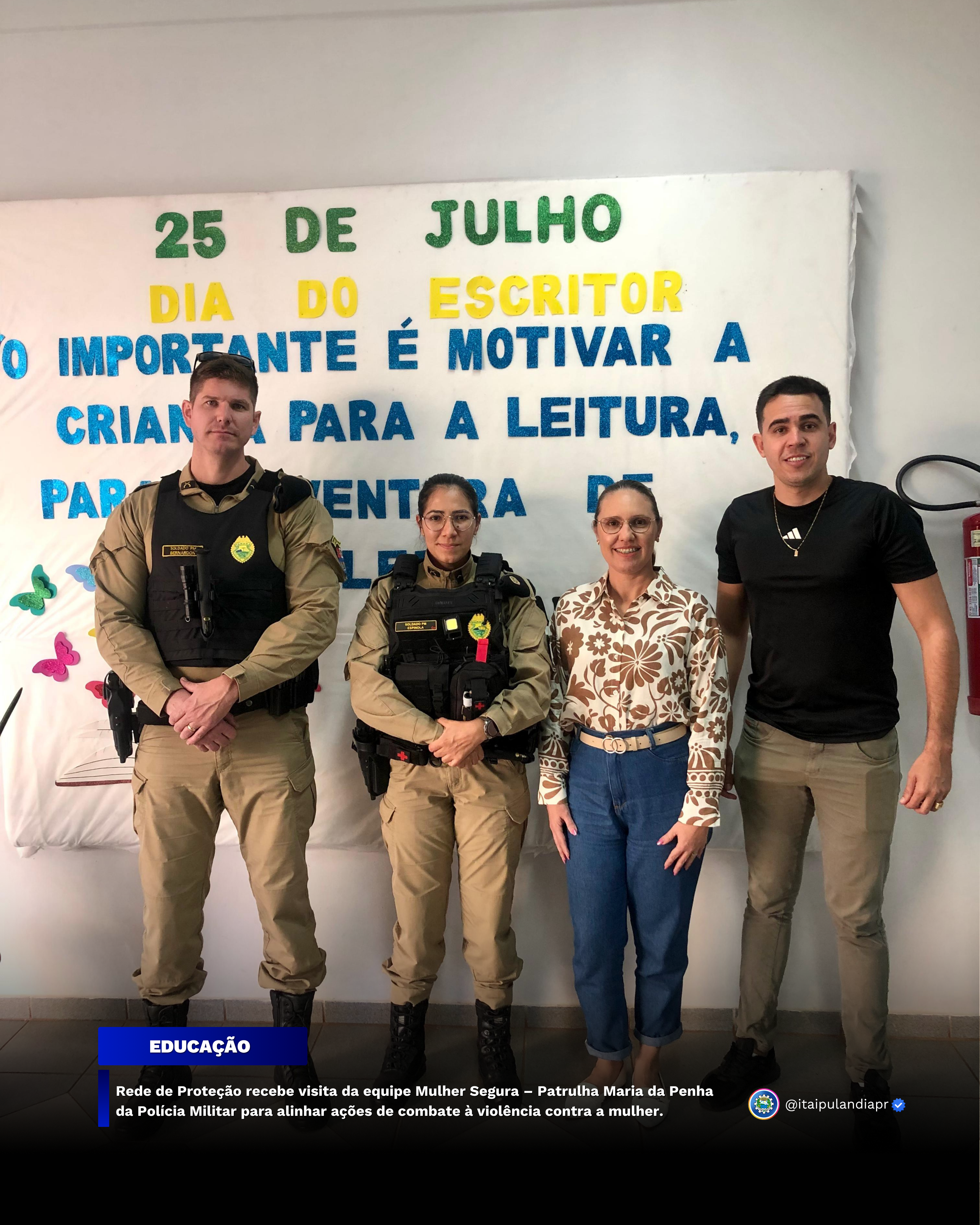 Na tarde desta segunda-feira (14), o município de Itaipulândia recebeu a visita da equipe Mulher Segura – Patrulha Maria da Penha da Polícia Militar, com o objetivo de fortalecer as ações de enfrentamento à violência contra a mulher.