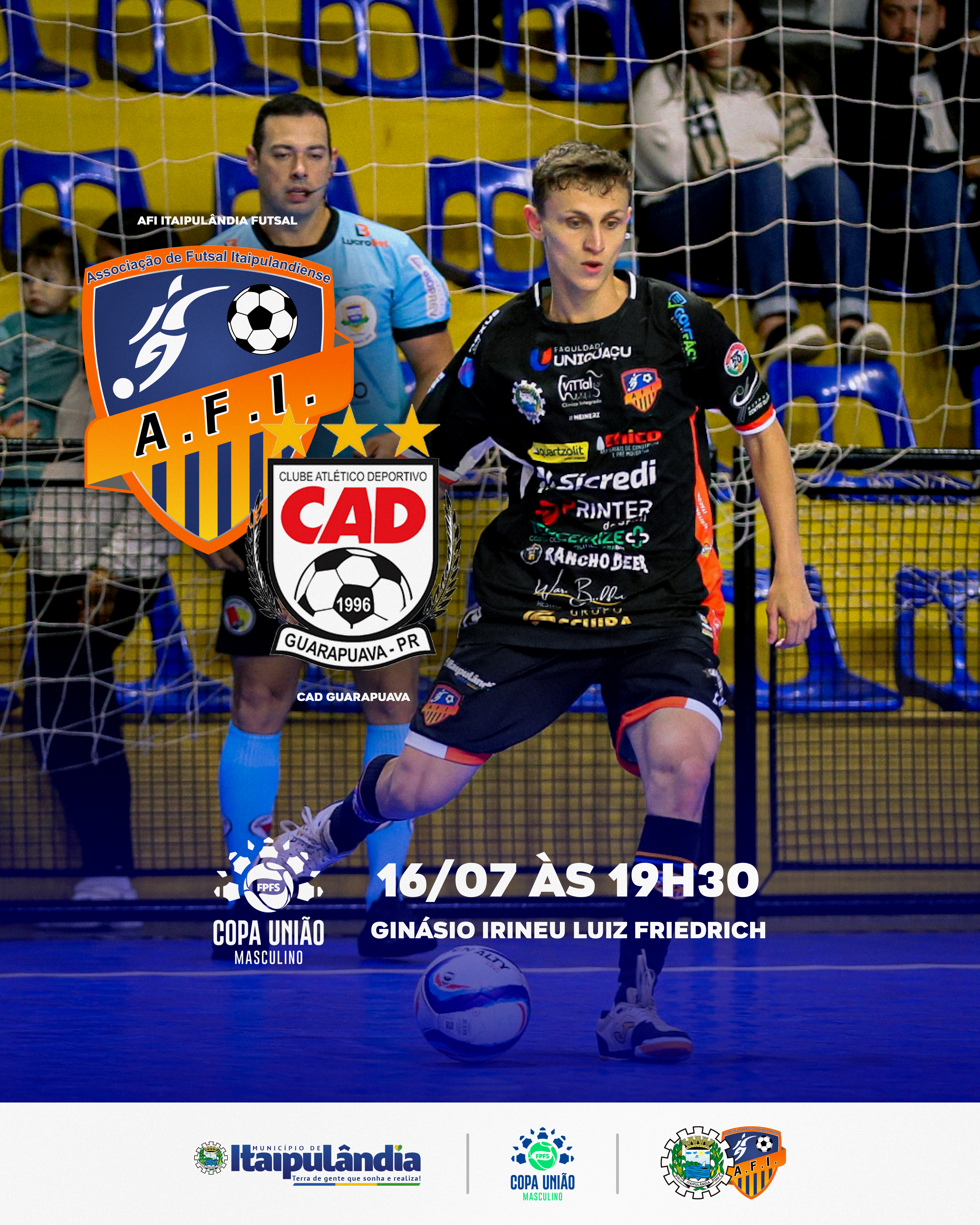 Amanhã é dia da AFI Itaipulândia Futsal enfrentar o CAD Guarapuava em mais uma rodada pela Copa União.