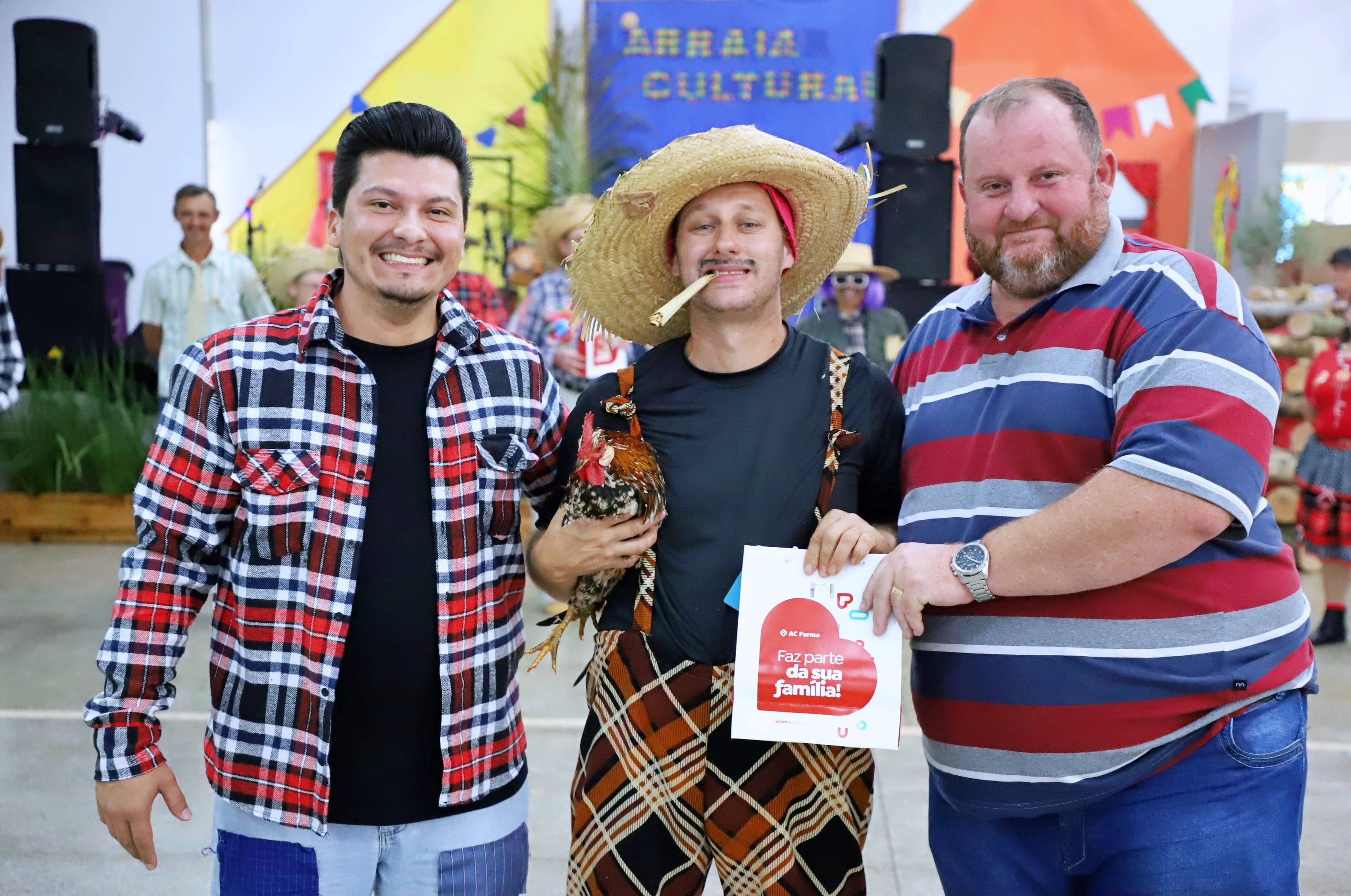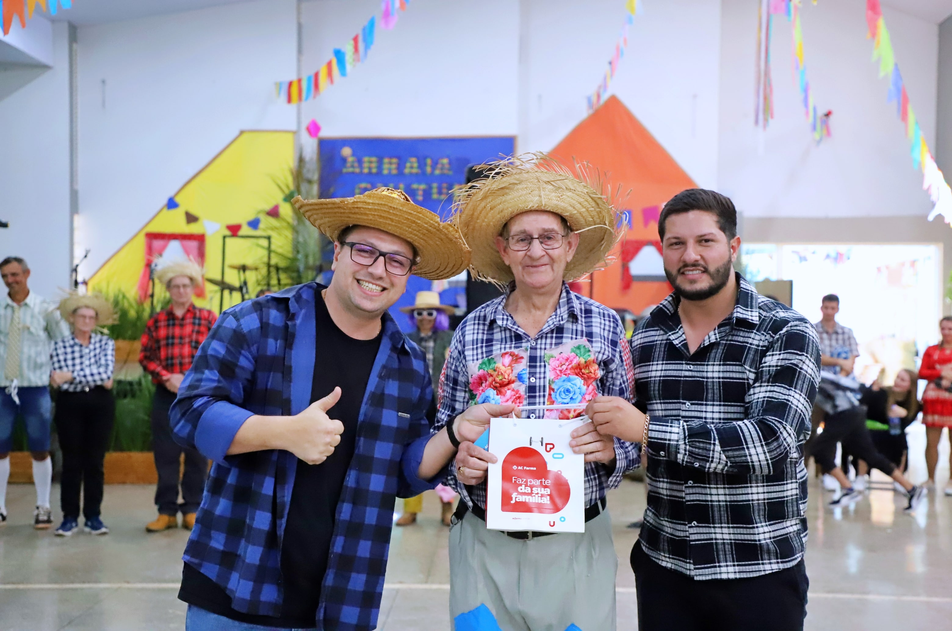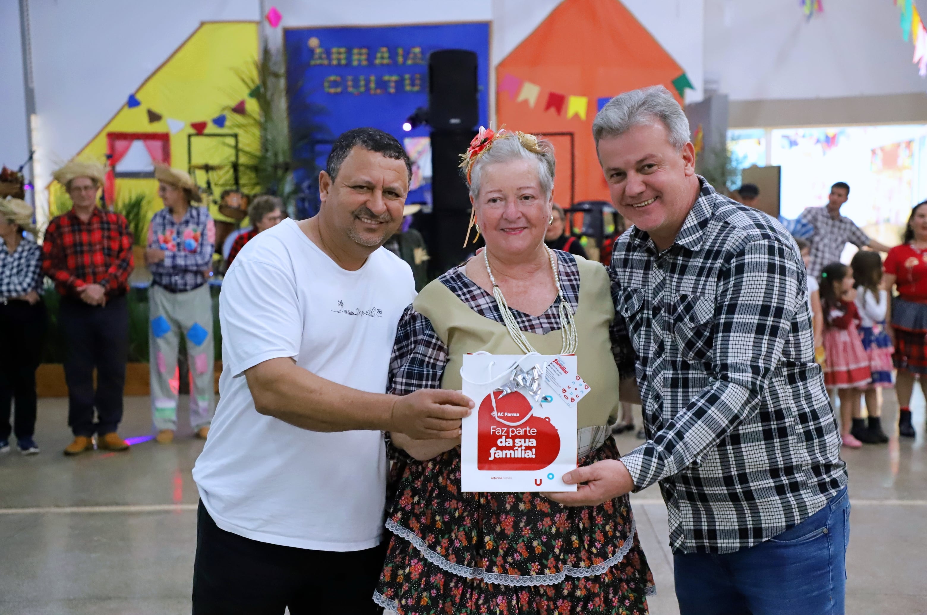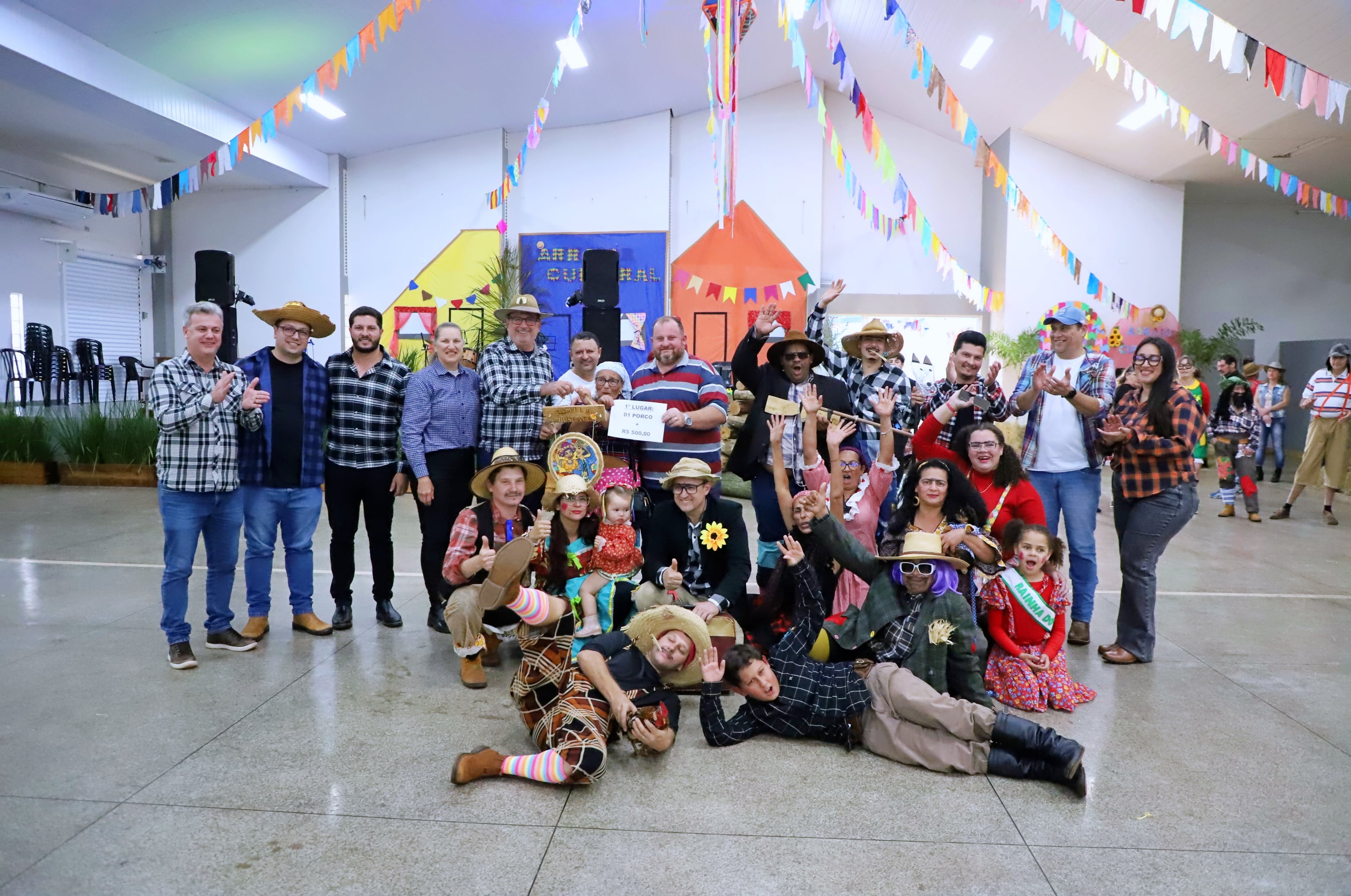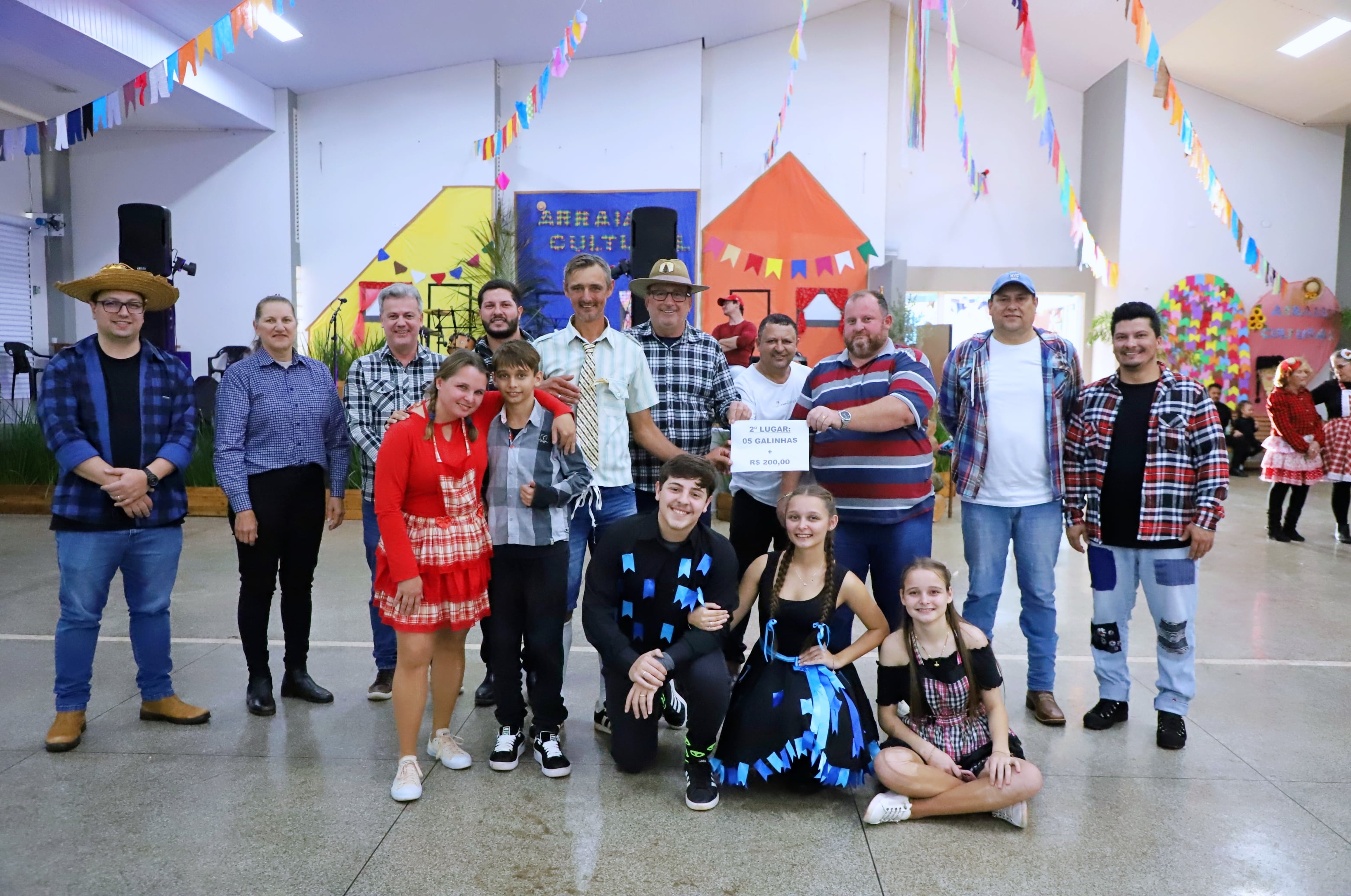 Também foram distribuídos brindes aos quatro participantes com os trajes típicos mais criativos dois masculinos e dois femininos.