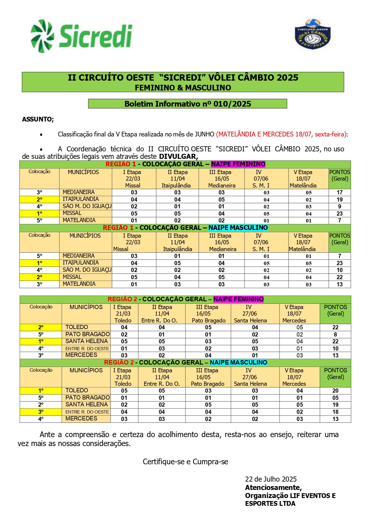 Na última sexta-feira (18), as equipes de Voleibol Adaptado de Itaipulândia participaram da 5ª etapa do II Circuito Sicredi de Vôlei Câmbio 2025, realizada na cidade de Matelândia.