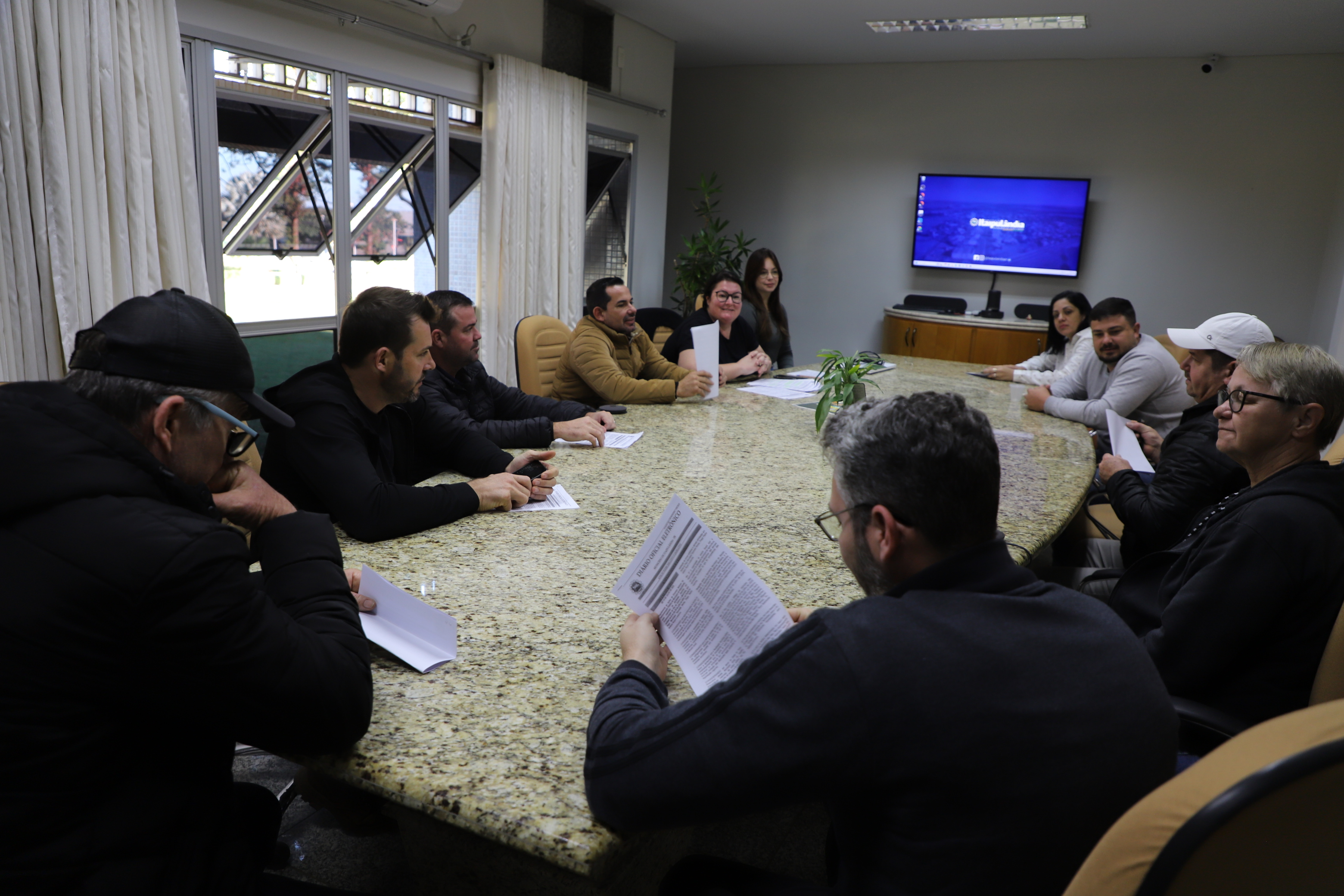 O objetivo da reunião foi a apresentação do Decreto nº 253, de 15 de julho de 2025, que regulamenta as ações da administração pública municipal para a organização das atividades alusivas ao evento “Show em Comemoração ao Colono e Motorista”, a ser realizado em 25 de julho de 2025, em frente ao Paço Municipal Tancredo Neves, Praça Padre Izidoro Royer e áreas adjacentes.