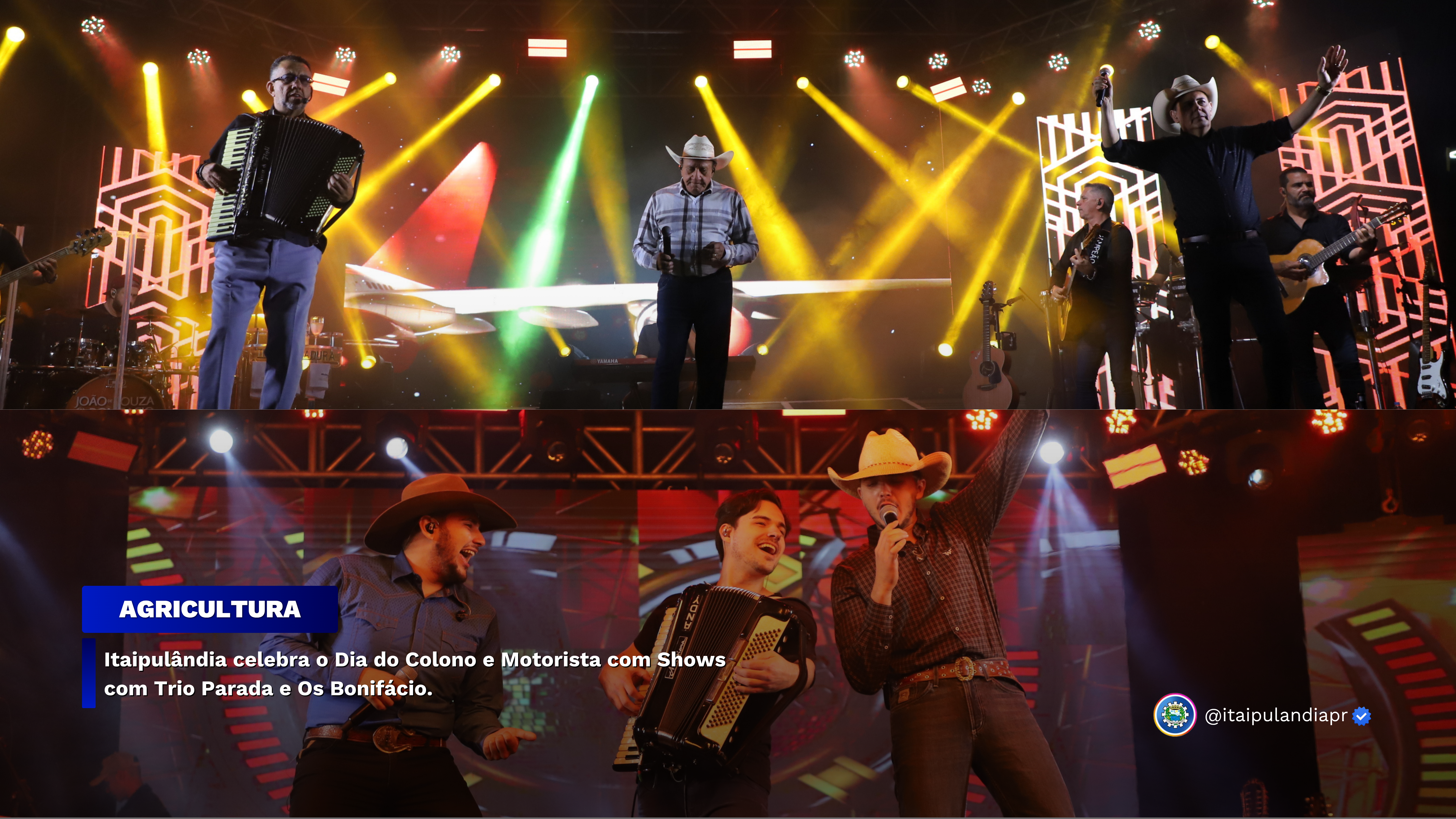 Itaipulândia celebra o Dia do Colono e Motorista com Shows com Trio Parada e Os Bonifácio