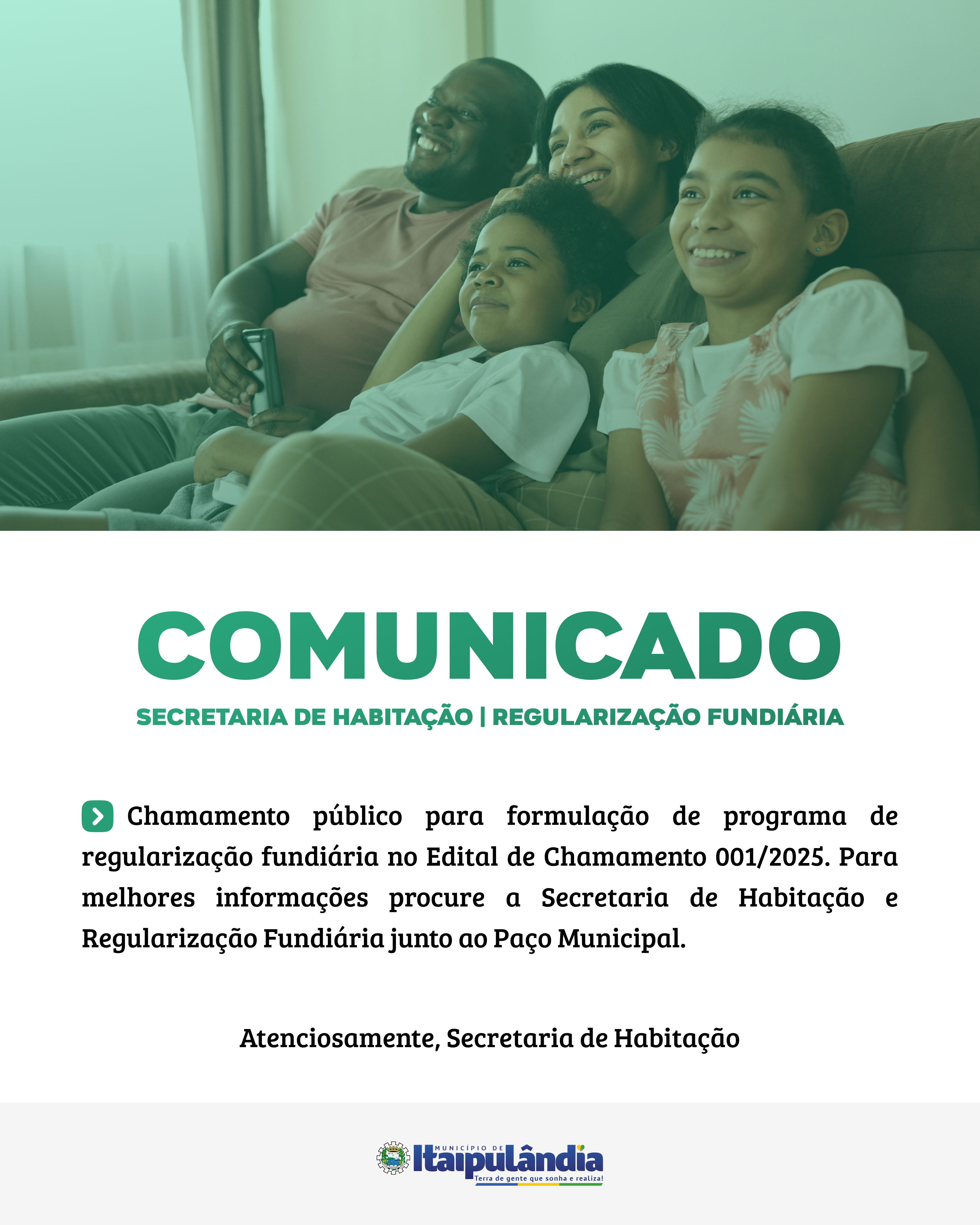 Com o objetivo de um levantamento de dados para a formulação de um programa de regularização fundiária, o Município de Itaipulândia, através da Secretaria de Habitação e Regularização Fundiária lançou o Edital de Chamamento 001/2025.