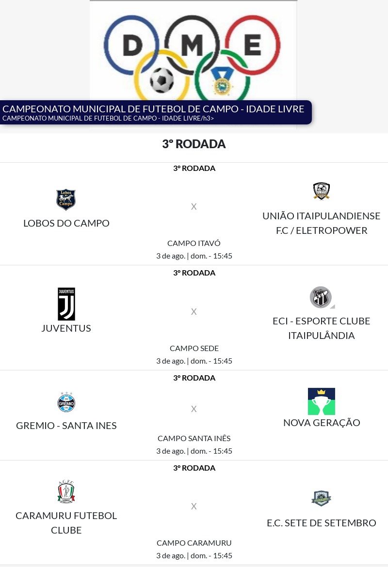 ESTÁDIO MUNICIPAL LEANDRO BARTH – 15h45 - Juventus X ECI-esporte Clube Itaipulândia
