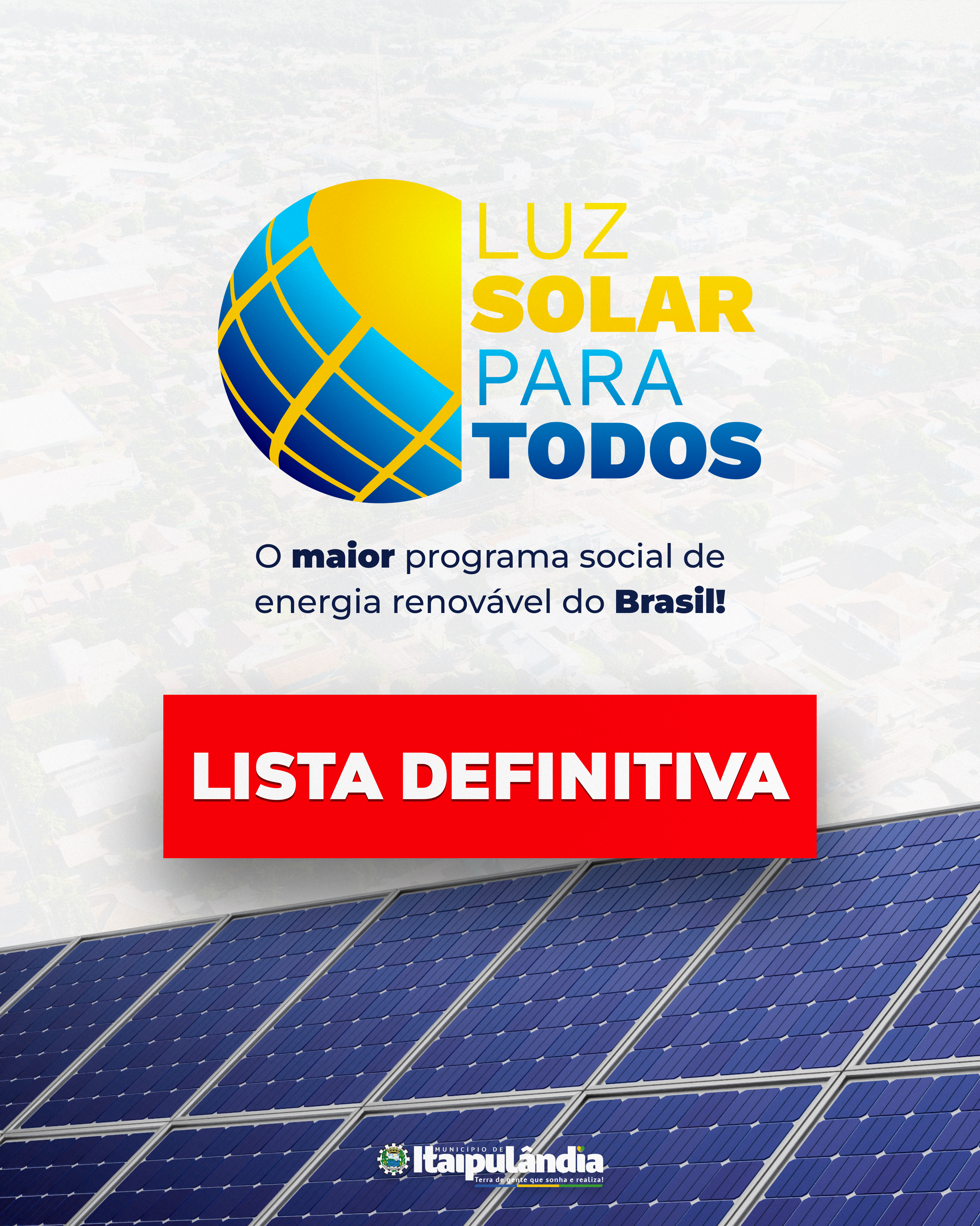 Definida classificação final do Programa Luz solar Para Todos 2025