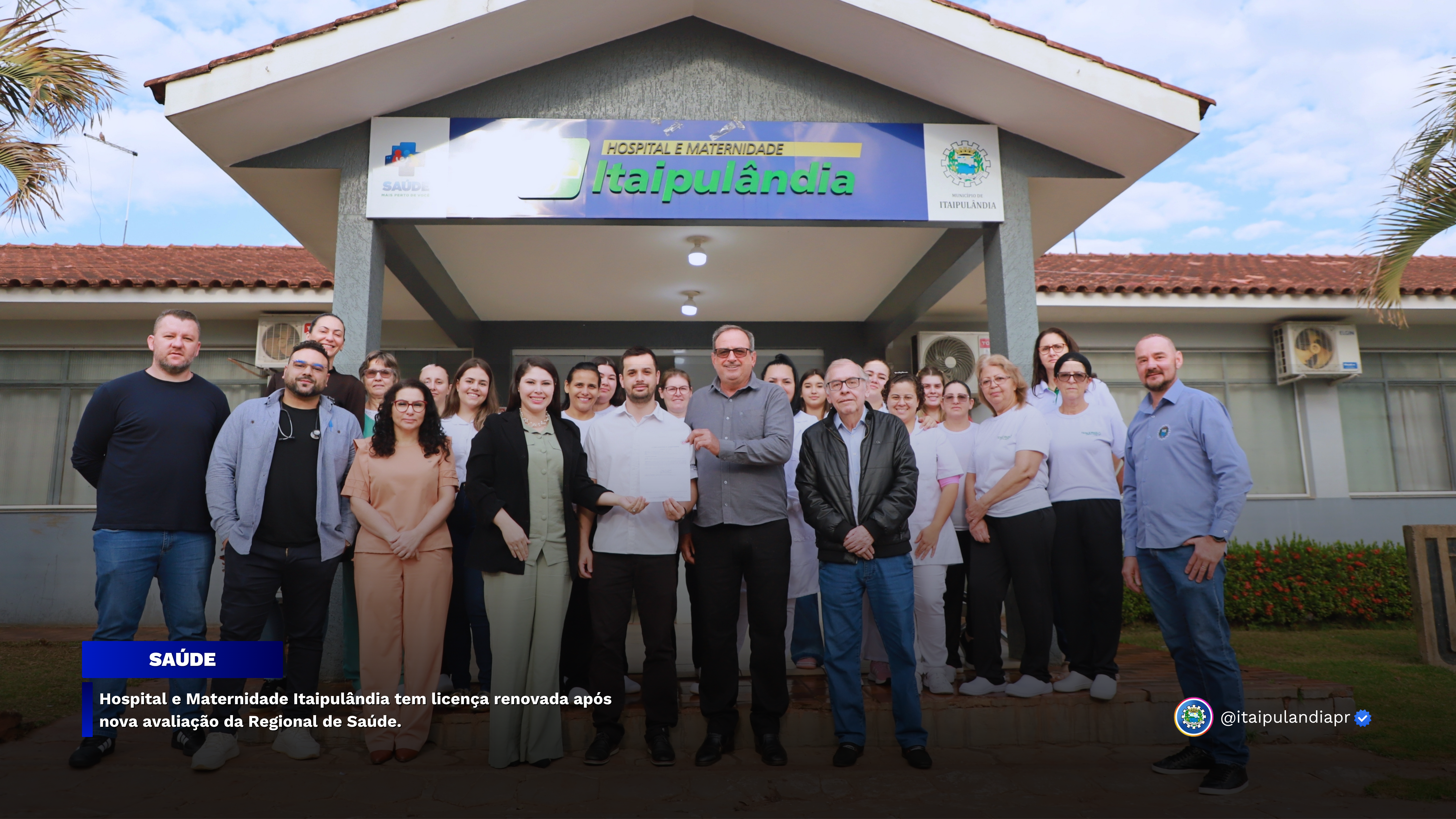 O Hospital e Maternidade Itaipulândia celebra mais uma importante conquista: a renovação de sua licença de funcionamento, concedida após rigorosa vistoria técnica realizada pela Regional de Saúde, vinculada à Secretaria de Estado da Saúde do Paraná.