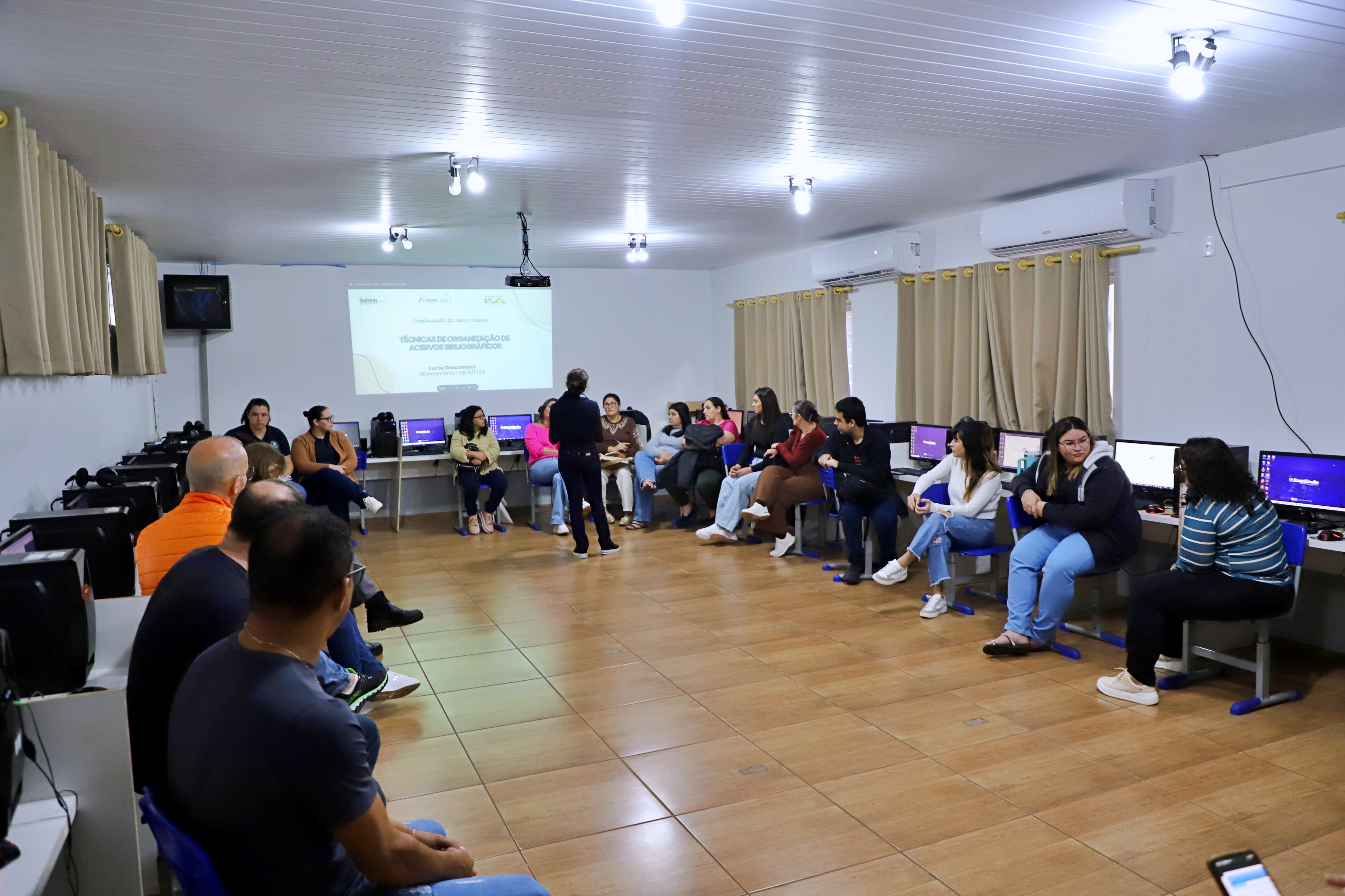 A programação teve início na Casa da Memória, com uma acolhida especial e contação de histórias. Na sequência, os participantes seguiram para a Escola Municipal Carlos Gomes, onde realizaram as atividades práticas no laboratório da instituição. A formação foi conduzida por Lúcia Giacomini, bibliotecária e servidora do Ecomuseu de Itaipu, cuja experiência contribuiu para aprofundar os conhecimentos técnicos dos participantes.