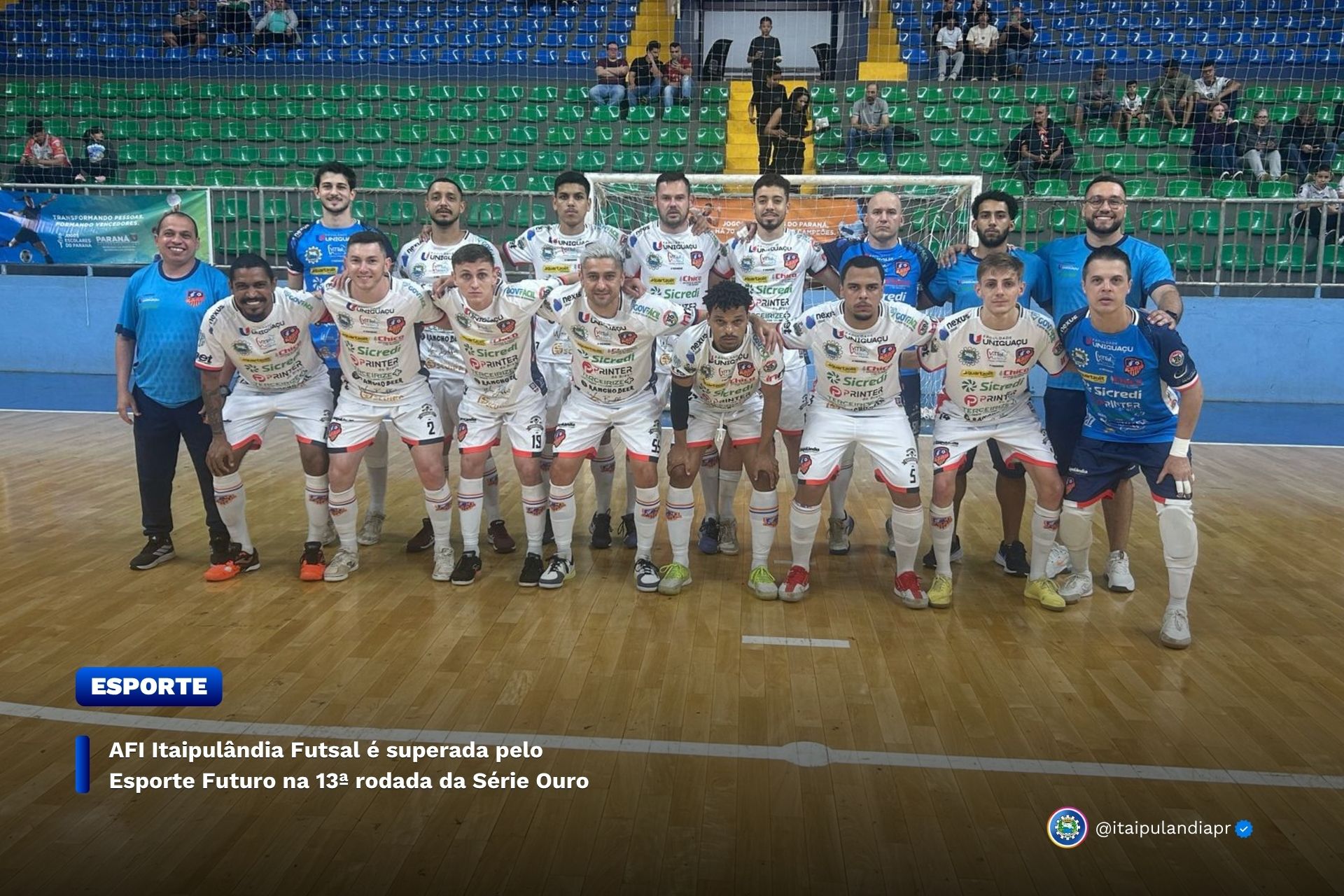 Pela 13ª rodada do Campeonato Paranaense de Futsal Série Ouro, a AFI Itaipulândia Futsal entrou em quadra na noite de ontem (07) para enfrentar o Esporte Futuro, da cidade de Toledo. O confronto disputado fora de casa terminou com vitória da equipe adversária por 5 a 1.